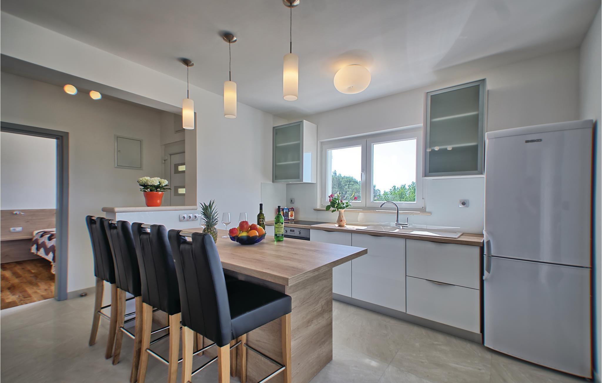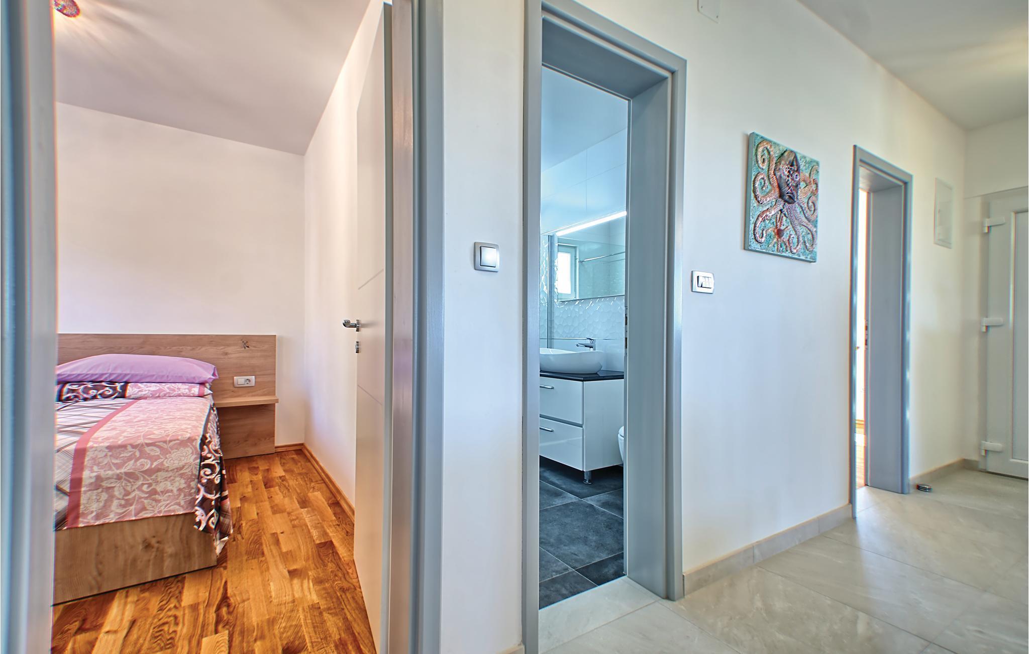 In der sonnigen Bucht Prižba, auf der Südseite der Insel, befindet sich dieses Ferienhaus mit Pool. Es erstreckt sich auf zwei Etagen mit Außentreppe und ist ideal für einen gemeinsamen Urlaub von zwei Familien oder einer Gruppe von Freunden. Das Haus ist stilvoll eingerichtet und bietet alles Nötige für einen angenehmen Urlaub. Von beiden Balkonen haben Sie einen tollen Panoramablick auf das Meer. Erfrischung und Badespaß finden Sie im Pool. Nur wenige Fußminuten trennen Sie vom kinderfreundlichen Kiesstrand und von mehreren kleinen Restaurants in der Gegend. Besuchen Sie auch den gleichnamigen Ort Korcula mit vielen Kulturveranstaltungen und unternehmen Sie Bootsausflüge zu den Inseln des Archipels.