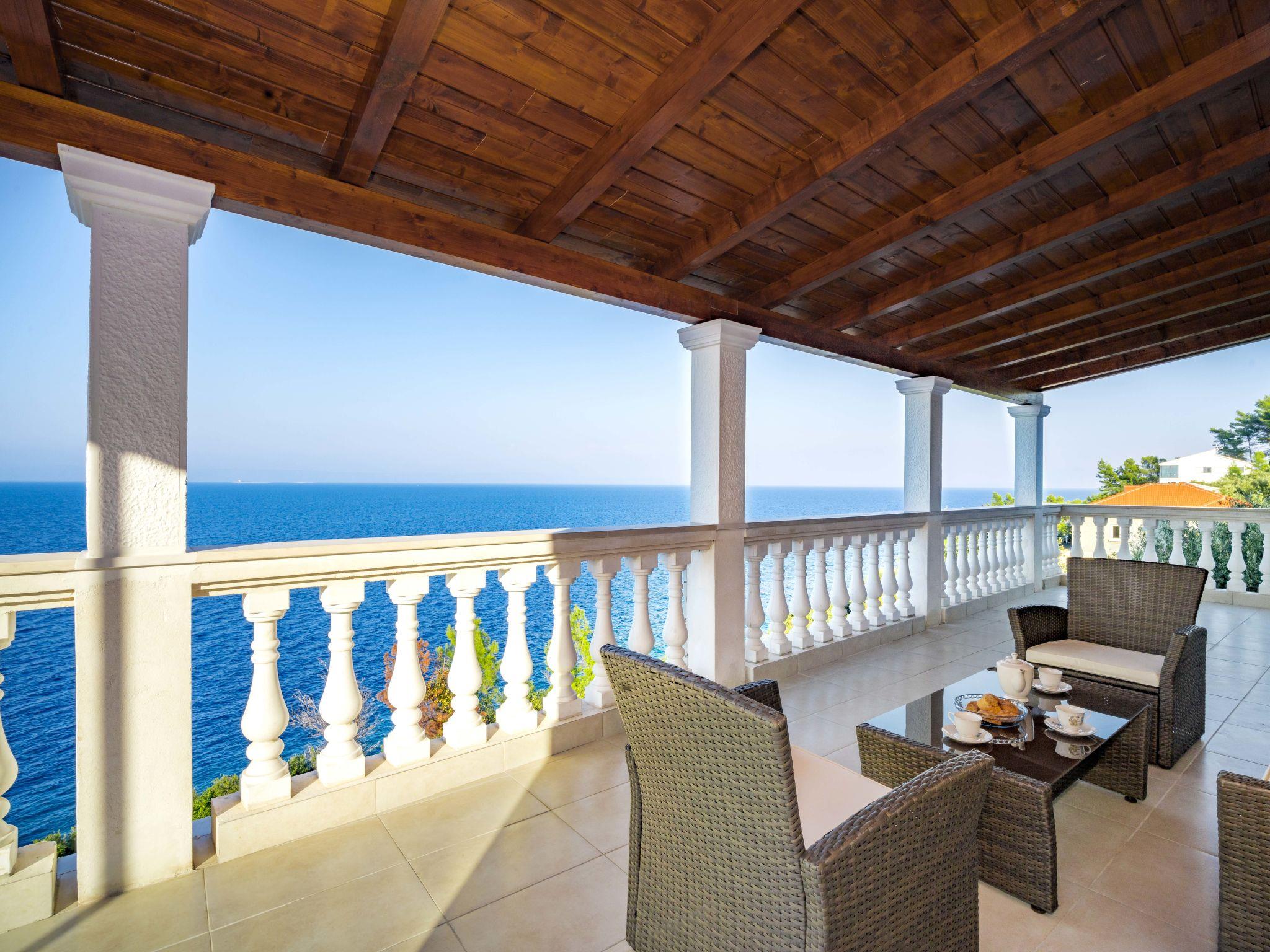 5-Zimmer-Haus 150 m2 auf 2 Stockwerken, Nordlage. 1 Zimmer mit 1 Doppelbett (2 x 90 cm, Länge 200 cm), Klimaanlage. 1 Zimmer mit 1 franz. Bett (180 cm, Länge 200 cm), Klimaanlage. 1 Zimmer mit 1 Doppelbett (2 x 90 cm, Länge 200 cm). 1 Zimmer mit 2 Betten (90 cm, Länge 200 cm), Klimaanlage. Esszimmer mit Küchenblock. Ausgang zur Terrasse. Küche (4 Kochplatten, Backofen, Geschirrspüler, Tiefkühler) mit Esstisch. Ausgang zur Terrasse. 2 Duschen/WC. Obergeschoss: (Aussentreppe) Wohn-/Esszimmer mit 1 Diwanbett (130 cm, Länge 200 cm), Sat-TV (Flachbildschirm), Klimaanlage. Ausgang zur Terrasse. Dusche/WC. Terrasse 36 m2, überdacht, Terrasse 36 m2. Terrassenmöbel, Liegestühle. Herrliche Sicht auf das Meer. Zur Verfügung: Haartrockner. Internet (Wireless LAN, gratis). Im Erdgeschoss, separater Eingang: Esszimmer, offene Küche, 1 Zimmer mit 1 Doppelbett, 1 Zimmer mit 2 franz. Bett, Dusche/WC. Im Erdgeschoss, separater Eingang: Küche, 1 Zimmer mit 1 Doppelbett, 1 Zimmer mit 2 Betten, Dusche/WC.