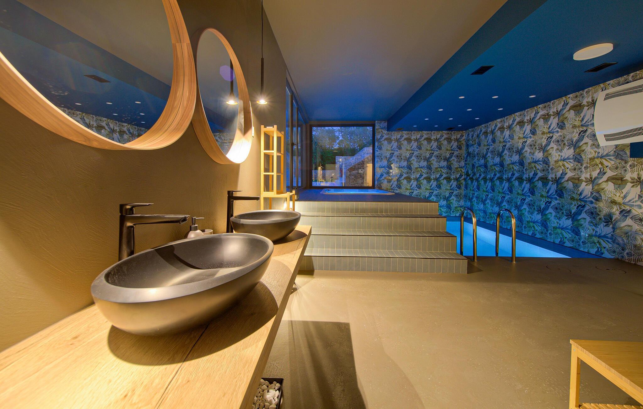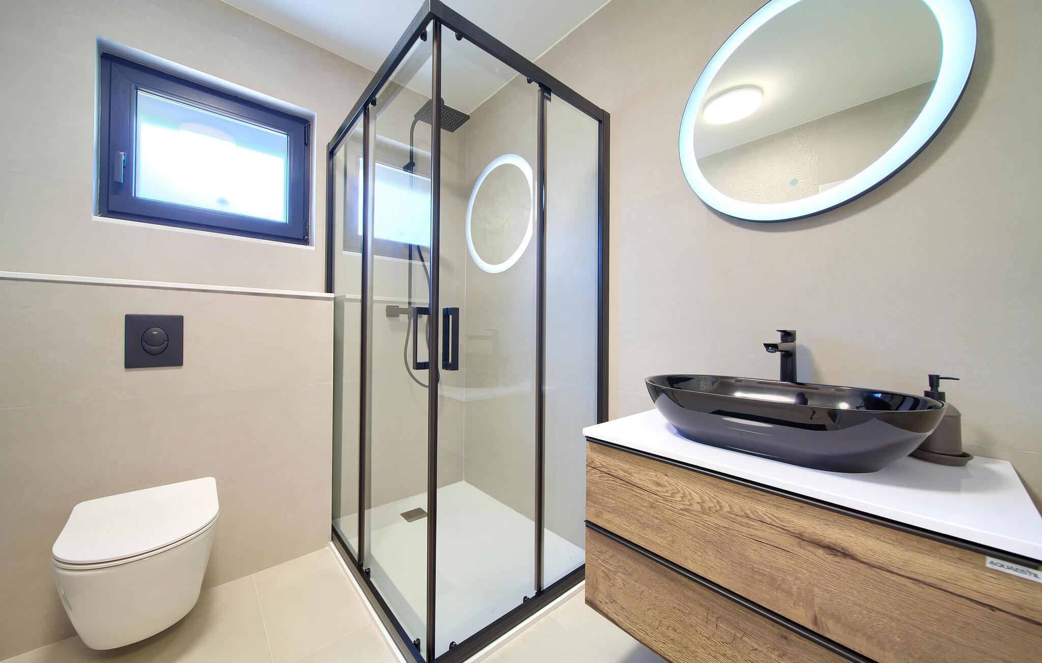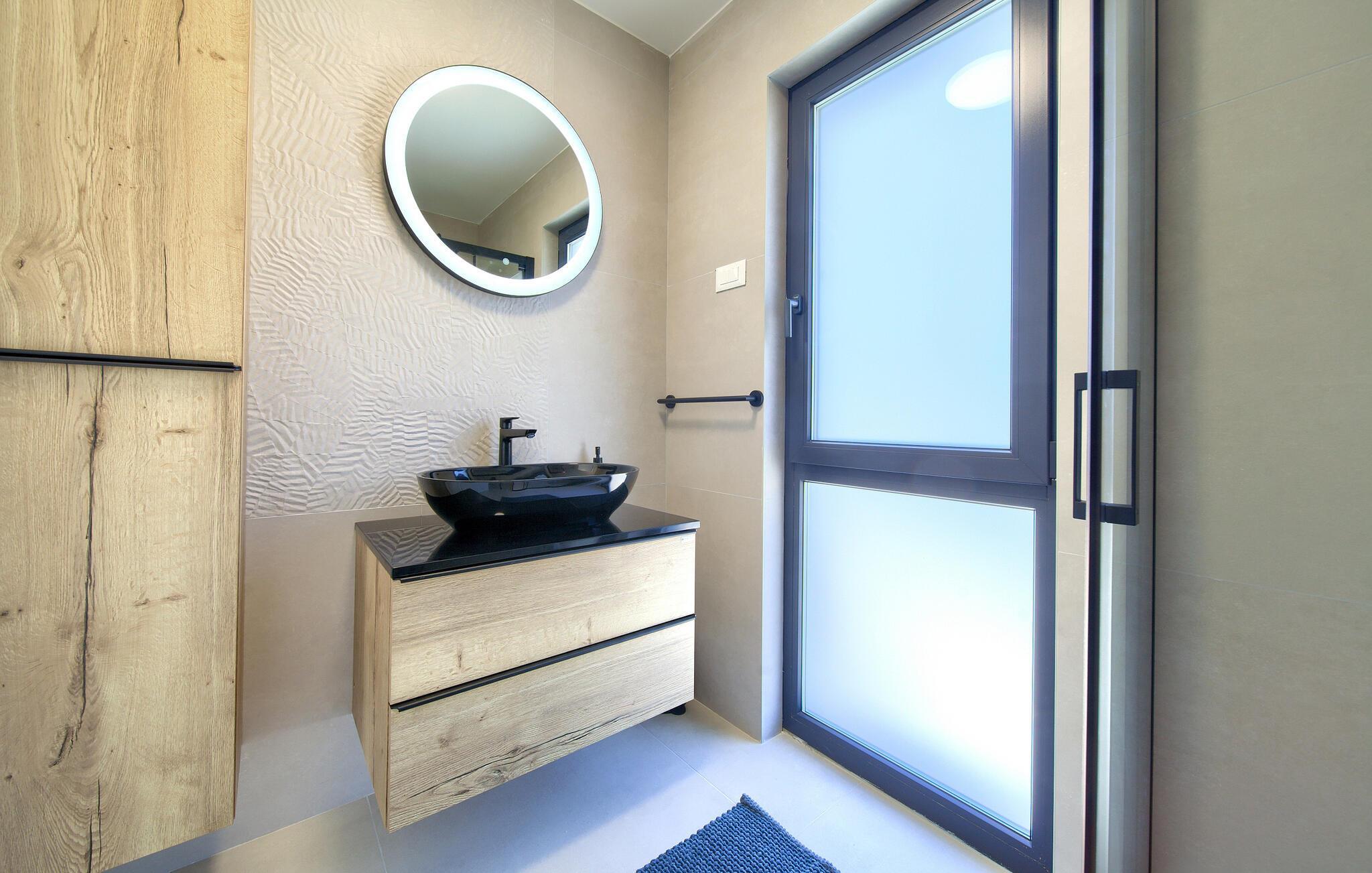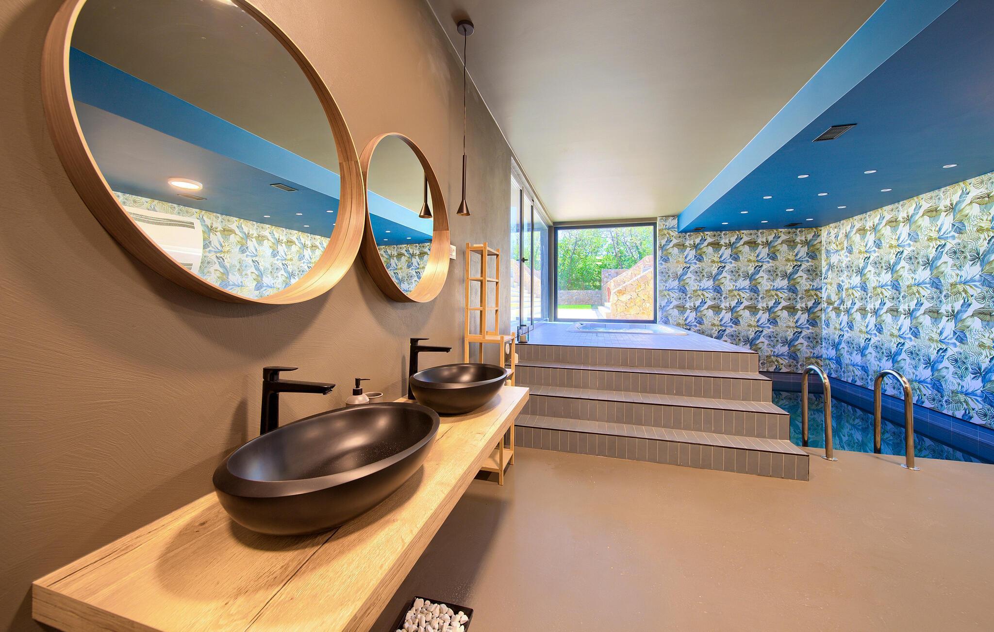 Erleben Sie diese exklusive Oase und lassen Sie den Alltag hinter sich. Ihre stilvolle Unterkunft bietet alles, was Sie für erholsame Tage in Ihrem Urlaubsort Vrh brauchen. Es erwarten Sie hier schöne Innen- und Außenbereiche, die mit modernem Design und hochwertiger Ausstattung bestechen. Starten Sie Ihren Tag mit einem entspannenden Bad im beheizten Innenpool oder verwöhnen Sie sich im Whirlpool. Nutzen Sie die Sauna, um Körper und Geist zu revitalisieren, und bleiben Sie aktiv im gut ausgestatteten Fitnessraum. Lassen Sie sich von der modernen, großzügigen Küche inspirieren und bereiten Sie Ihre Mahlzeiten in einem stilvollen Ambiente zu. Genießen Sie anschließend Ihre Speisen im geräumigen Essbereich, von dem aus Sie durch große Fenster den Blick in die grüne Umgebung schweifen lassen können.