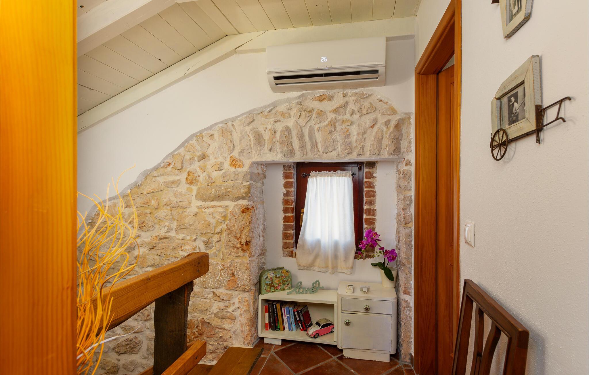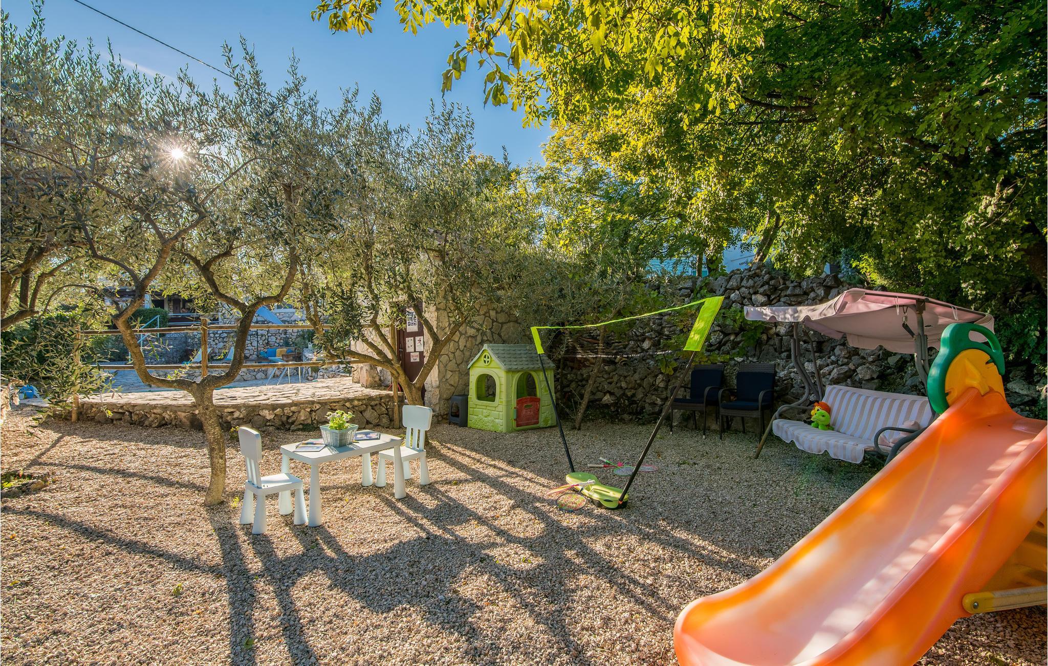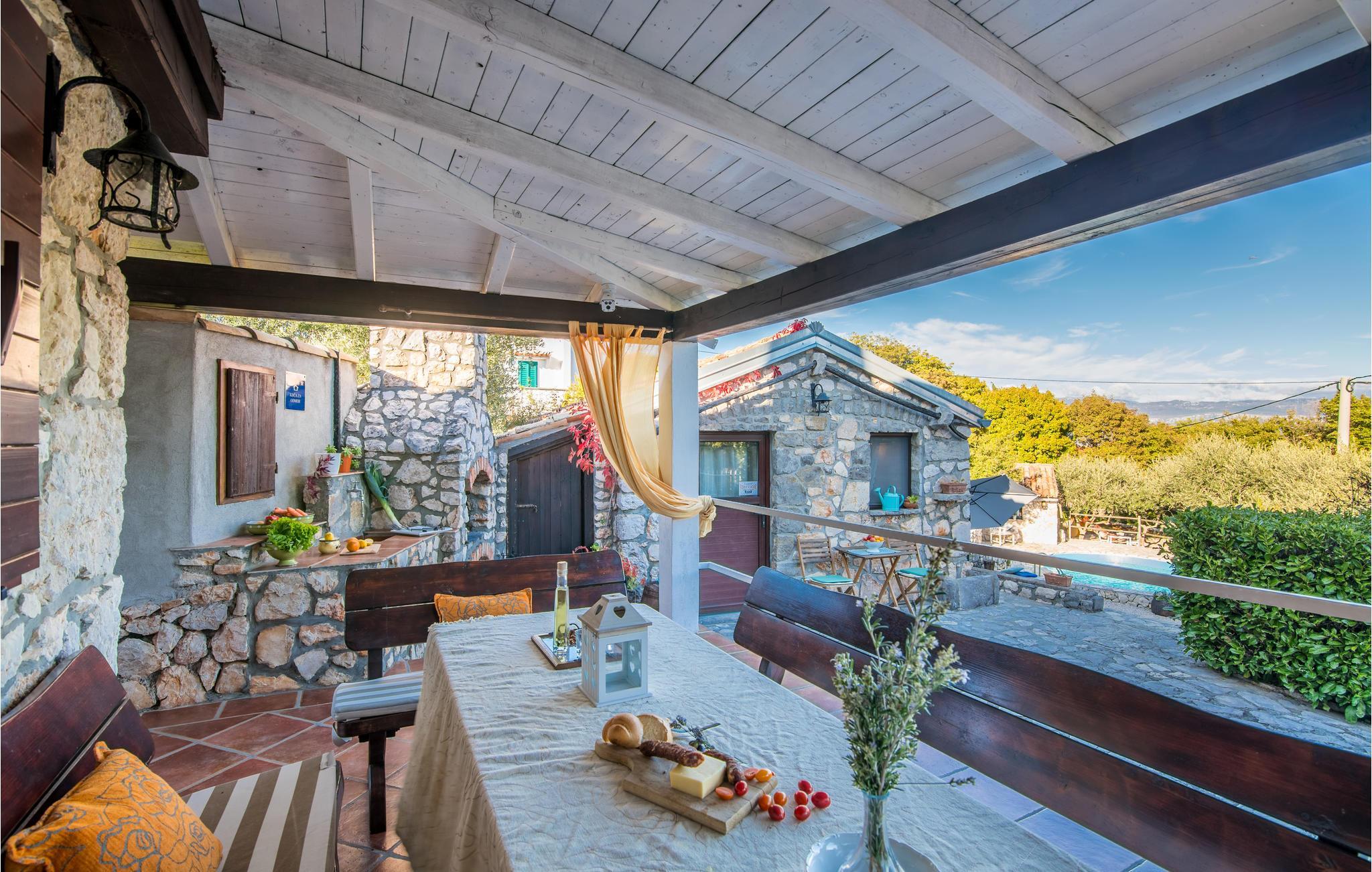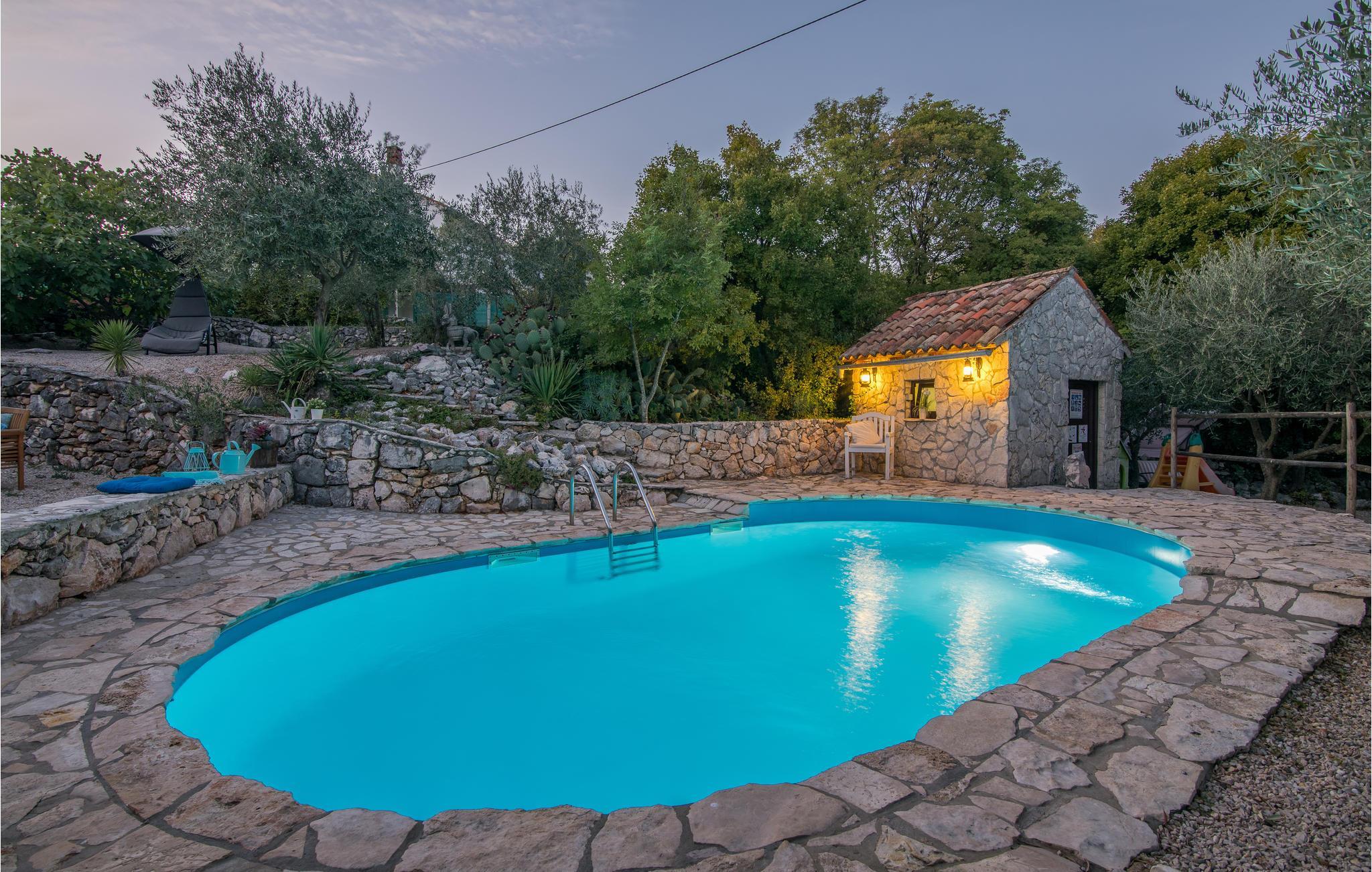 Dieses schöne und traditionell eingerichtete Ferienhaus befindet sich in der Mitte der Insel Krk. Auf der überdachten Terrasse stehen gemütliche Holzmöbel, hier können Sie den Kindern beim Spielen zuschauen und die ruhige Umgebung des Hauses genießen. Entspannen Sie sich mit Ihrer Familie auch neben dem schönen Pool. In einem kleinen Häuschen nebenan befinden sich ein Schlafzimmer für zwei Personen und ein Badezimmer. Das Grundstück ist umzäunt. Mit dem Auto sind die nahe gelegenen Strände, der Heilschlamm von Kimno, versteckte Buchten, die Orte Silo, Vrbnik und Malinska sowie das Städtchen Krk mit seinem während der Hochsaison lebendigen Nachtleben schnell zu erreichen. Besuchen Sie die zahlreichen Strände, die diese Insel anbietet.