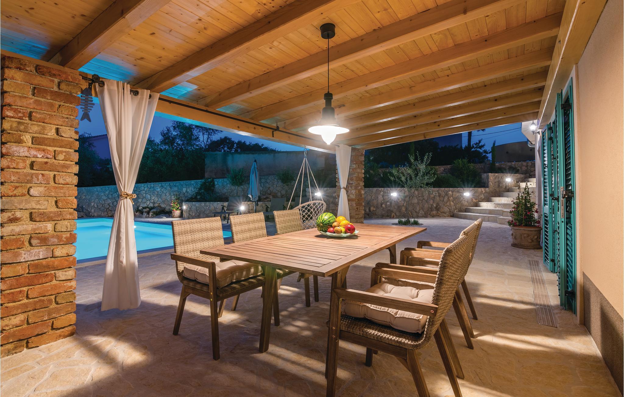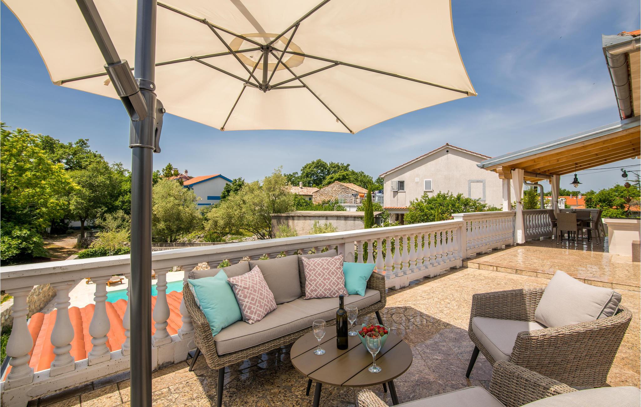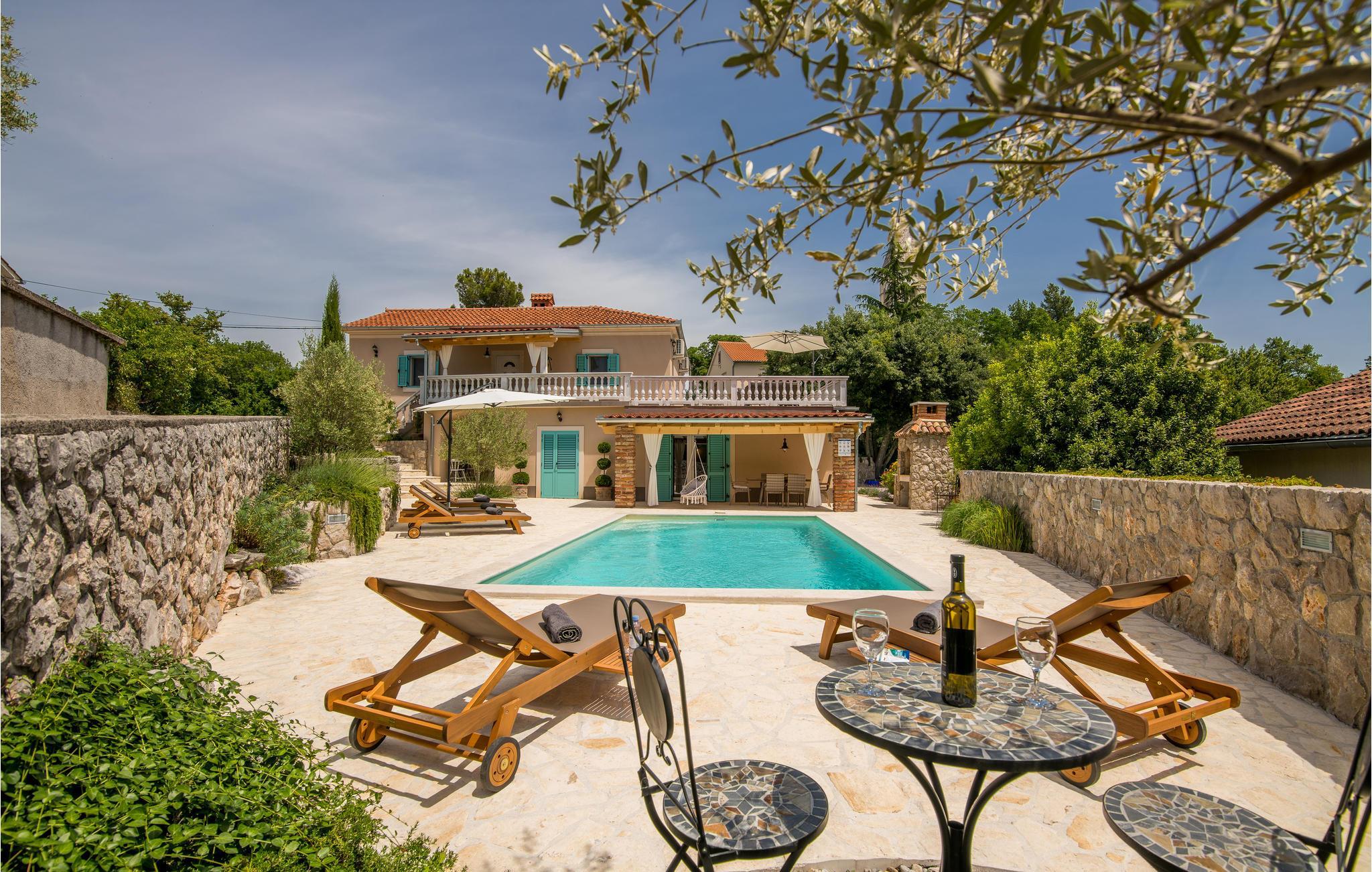 Dieses schöne traditionelle Steinhaus liegt im kleinen Dorf Polje auf der Insel Krk. Dieses komplett eingezäunte Grundstück, mit viel Grün, wird Ihre Familie und Haustier bestimmt genießen. Im Pool vor dem Haus können Sie sich an heißen Sommertagen erfrischen. Das Haus besteht aus zwei Wohneinheiten im Erdgeschoss und dem ersten Stock, die mit Außentreppen verbunden sind. Mit dem Auto erreichen Sie schnell die Strände in Šilo, Cižici, sowie den Strand mit Heilschlamm in Klimno. Besuchen Sie auch die Ortschaft Vrbnik, mit vielen Weinkellern, da diese Region für Qualitätsweine und insbesondere für die Weinsorte Vrbnicka Žlahtina bekannt ist.