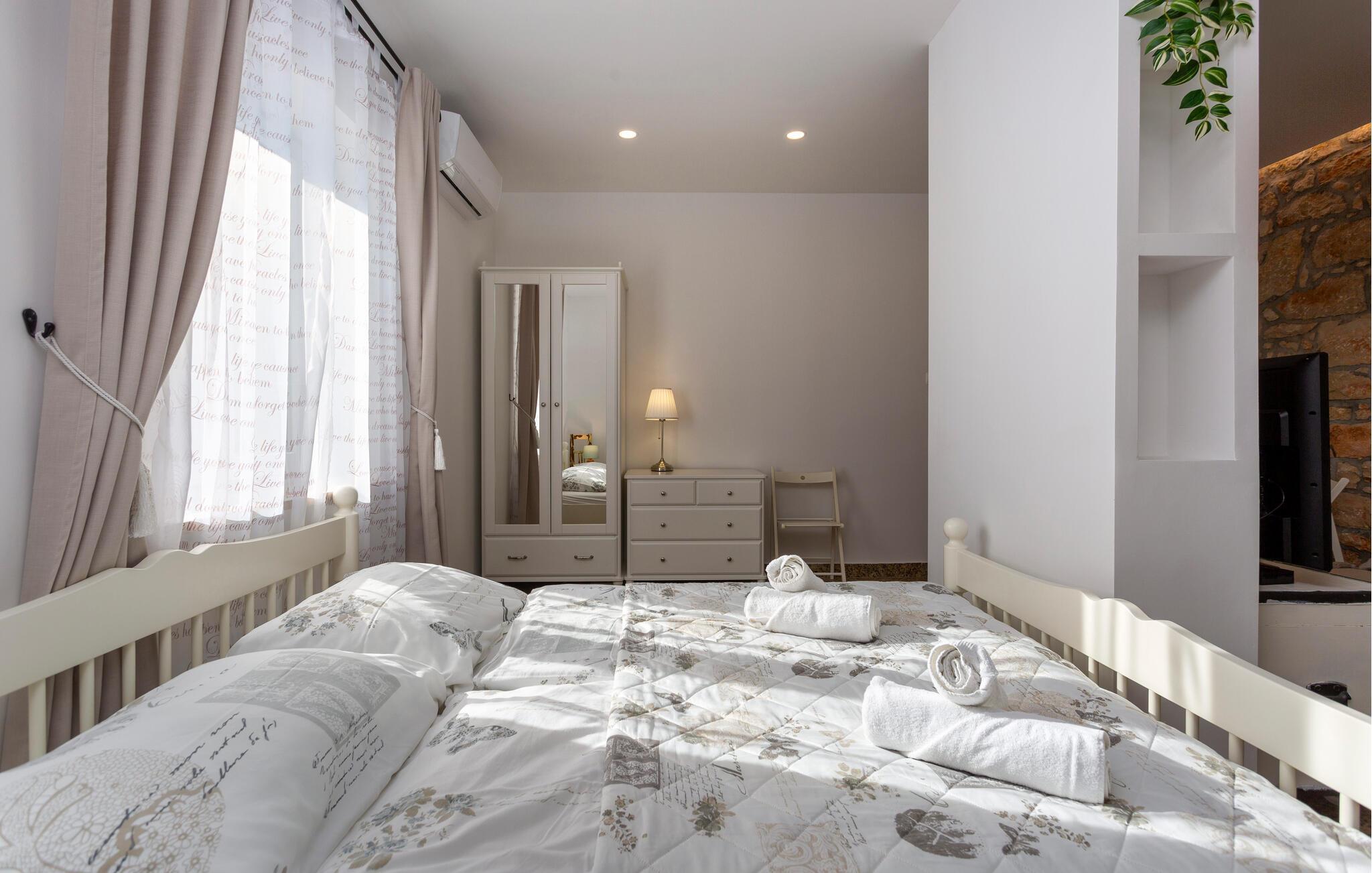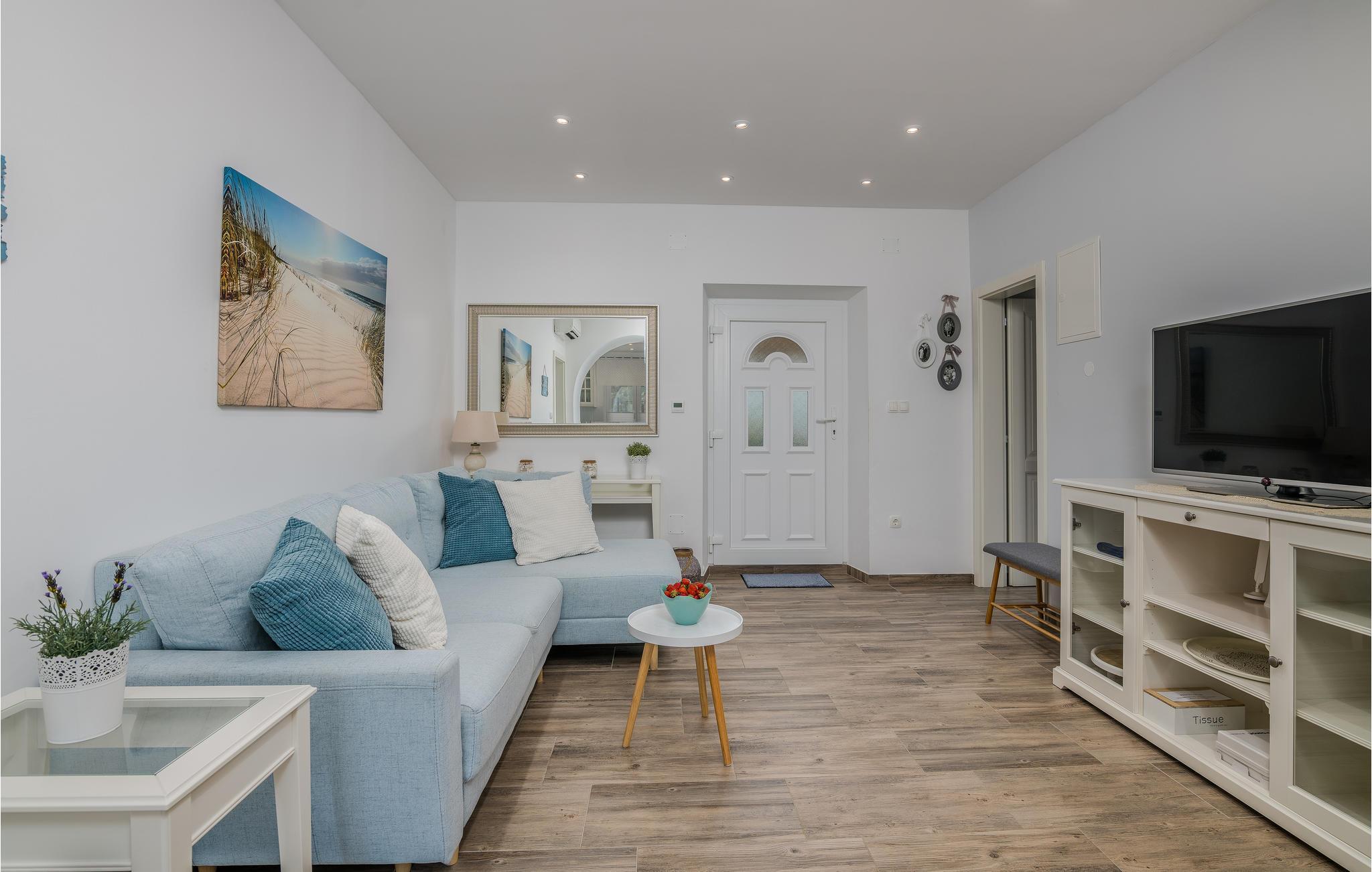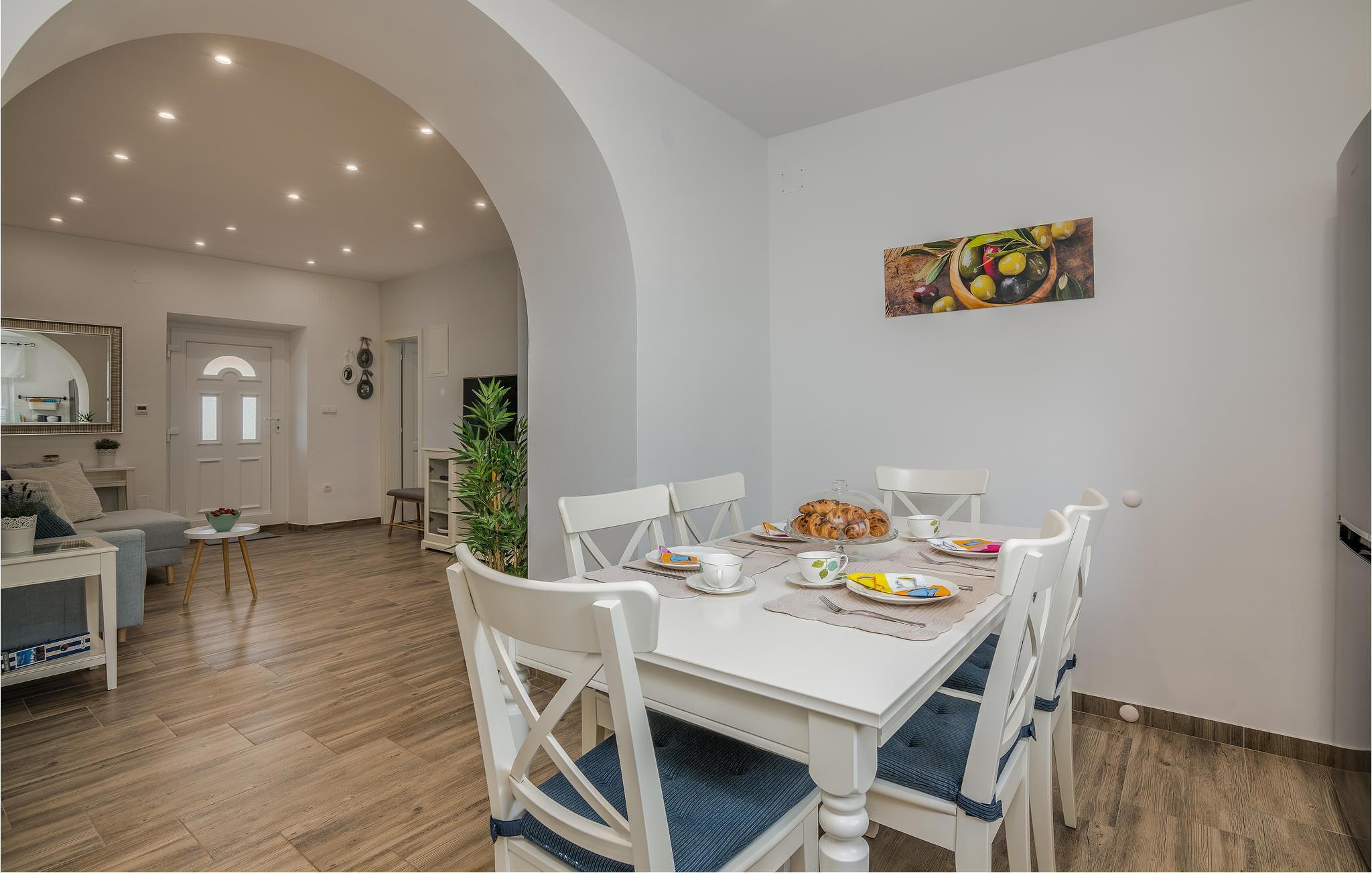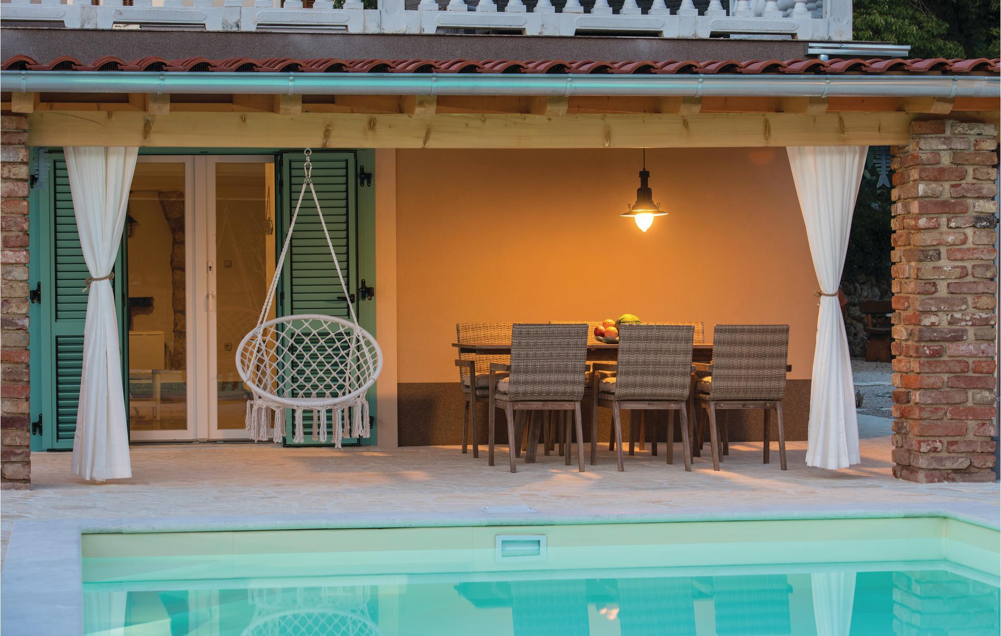 Dieses schöne traditionelle Steinhaus liegt im kleinen Dorf Polje auf der Insel Krk. Dieses komplett eingezäunte Grundstück, mit viel Grün, wird Ihre Familie und Haustier bestimmt genießen. Im Pool vor dem Haus können Sie sich an heißen Sommertagen erfrischen. Das Haus besteht aus zwei Wohneinheiten im Erdgeschoss und dem ersten Stock, die mit Außentreppen verbunden sind. Mit dem Auto erreichen Sie schnell die Strände in Šilo, Cižici, sowie den Strand mit Heilschlamm in Klimno. Besuchen Sie auch die Ortschaft Vrbnik, mit vielen Weinkellern, da diese Region für Qualitätsweine und insbesondere für die Weinsorte Vrbnicka Žlahtina bekannt ist.