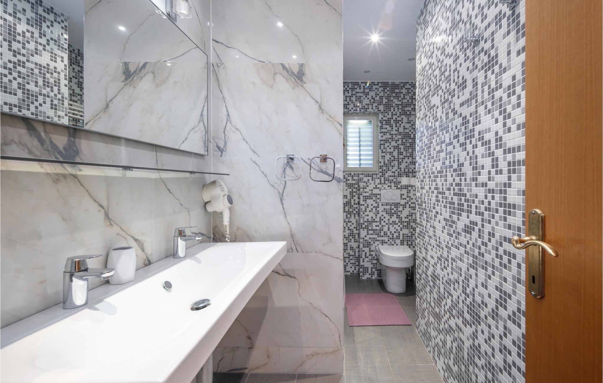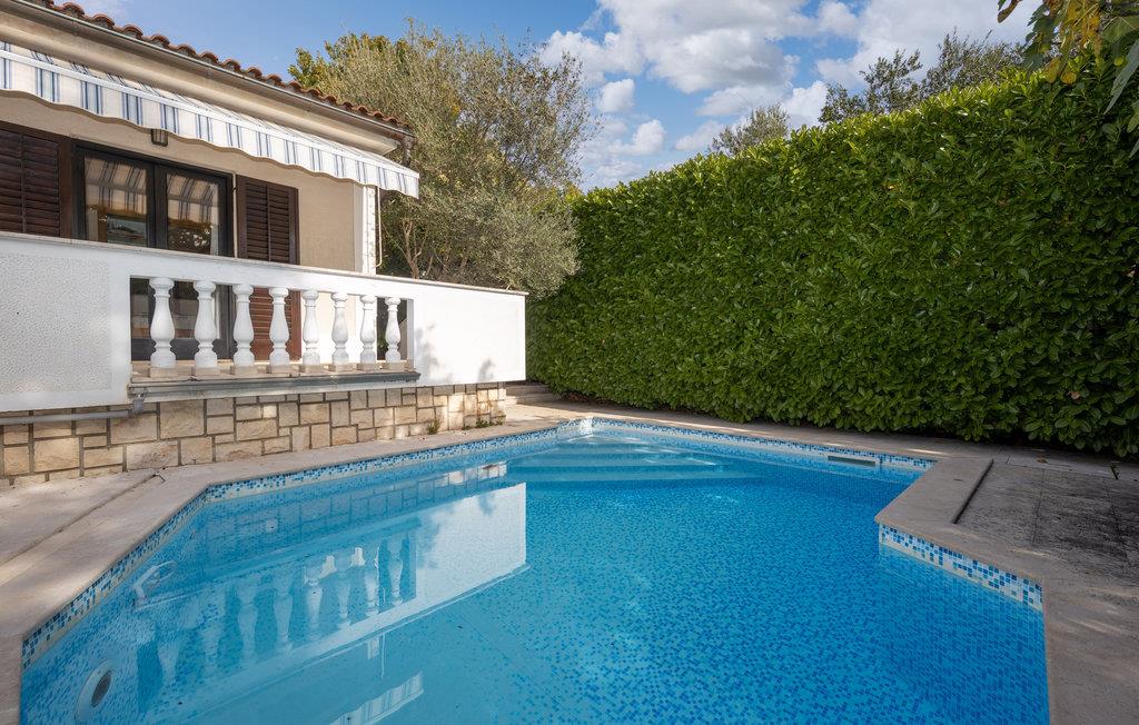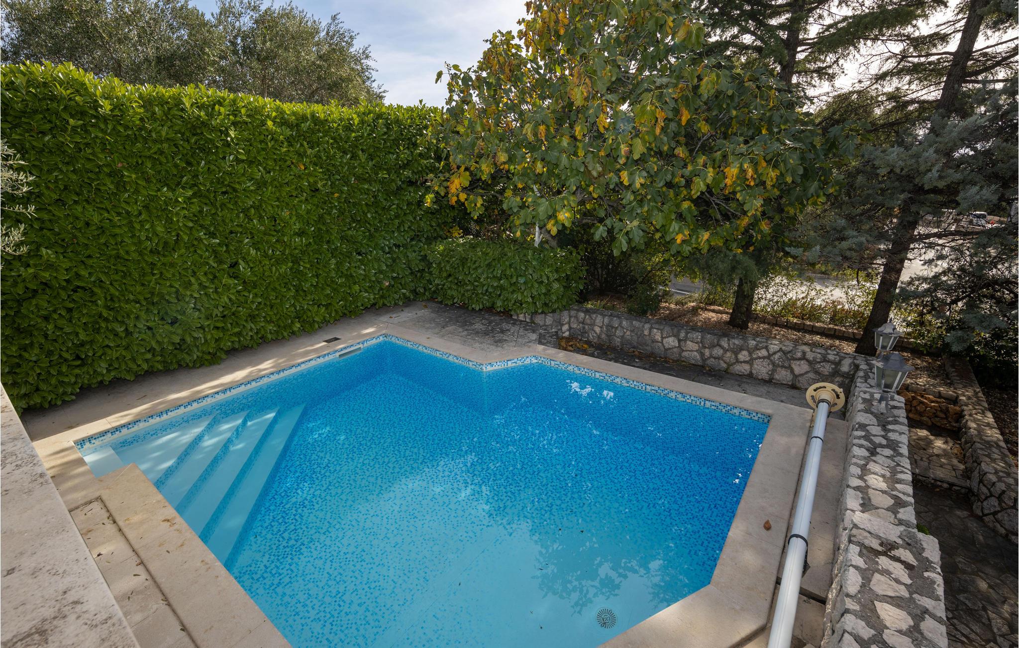 Dieses charmante Ferienhaus mit Pool ist umgeben von mediterranen Pflanzen und liegt in einem schönen Viertel der Stadt Krk. Hier werden Sie einen entspannten Urlaub mit Privatsphäre und abgeschirmt von fremden Blicken verbringen. Auf den Terrassen können Sie Ihren Morgenkaffee genießen oder gesellige Stunden erleben. Das Haus liegt auf einem kaskadenartigen Terrain und erstreckt sich im Erdgeschoss und dem ersten Stock, die über Außentreppen miteinander verbunden sind. Das Schlafzimmer Nr. 3 (auf dem Grundriss) und ein Bad sind in einem separaten Gebäude mit eigenem Eingang untergebracht. Erforschen Sie die interessante Insel Krk mit mediterraner Vegetation, kleinen versteckten Stränden und malerischen Orten. Besuchen Sie hervorragende Restaurants. Für aktiven Urlaub sorgen verschiedene Freizeitmöglichkeiten wie Wake Boarding, Ski Lift, Reiten, Radfahren und Wandern.