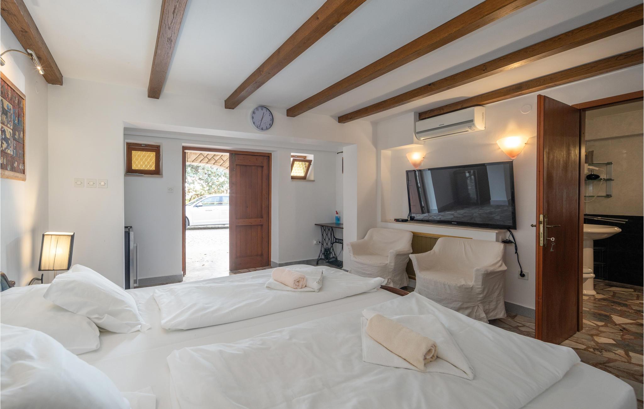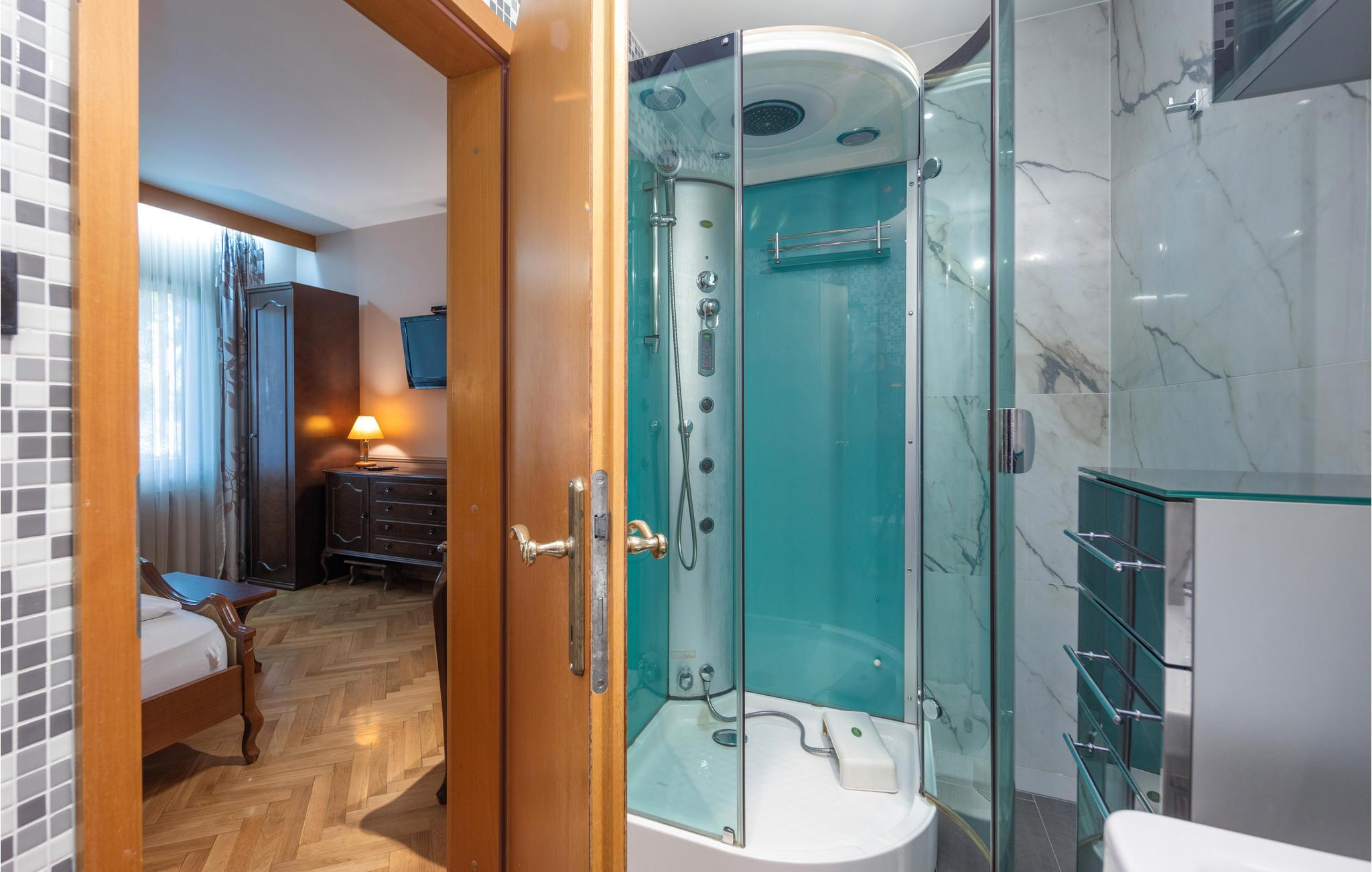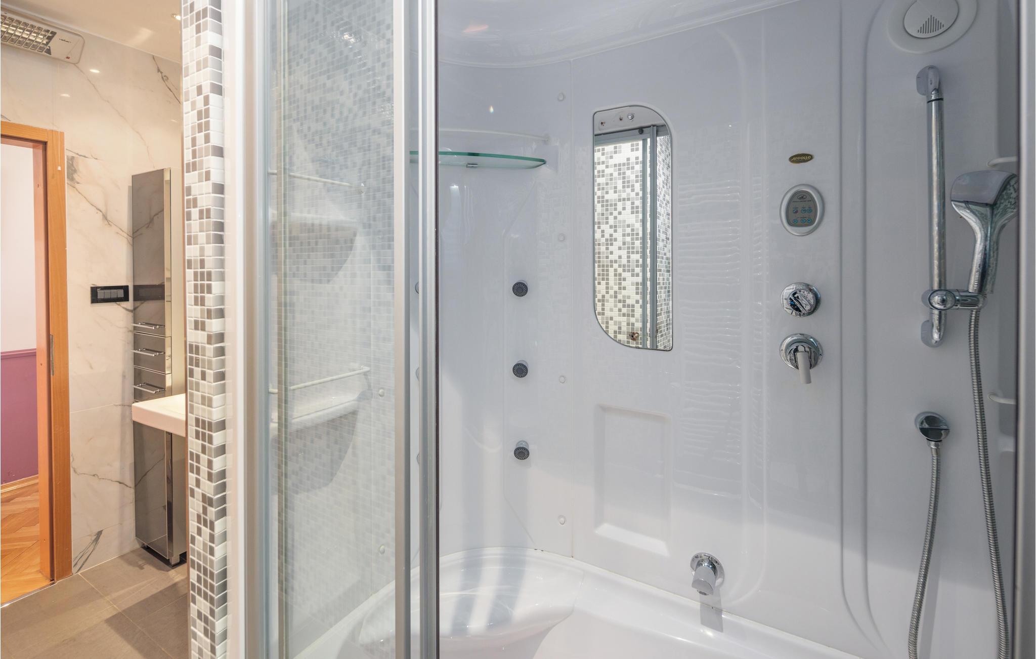 Dieses charmante Ferienhaus mit Pool ist umgeben von mediterranen Pflanzen und liegt in einem schönen Viertel der Stadt Krk. Hier werden Sie einen entspannten Urlaub mit Privatsphäre und abgeschirmt von fremden Blicken verbringen. Auf den Terrassen können Sie Ihren Morgenkaffee genießen oder gesellige Stunden erleben. Das Haus liegt auf einem kaskadenartigen Terrain und erstreckt sich im Erdgeschoss und dem ersten Stock, die über Außentreppen miteinander verbunden sind. Das Schlafzimmer Nr. 3 (auf dem Grundriss) und ein Bad sind in einem separaten Gebäude mit eigenem Eingang untergebracht. Erforschen Sie die interessante Insel Krk mit mediterraner Vegetation, kleinen versteckten Stränden und malerischen Orten. Besuchen Sie hervorragende Restaurants. Für aktiven Urlaub sorgen verschiedene Freizeitmöglichkeiten wie Wake Boarding, Ski Lift, Reiten, Radfahren und Wandern.