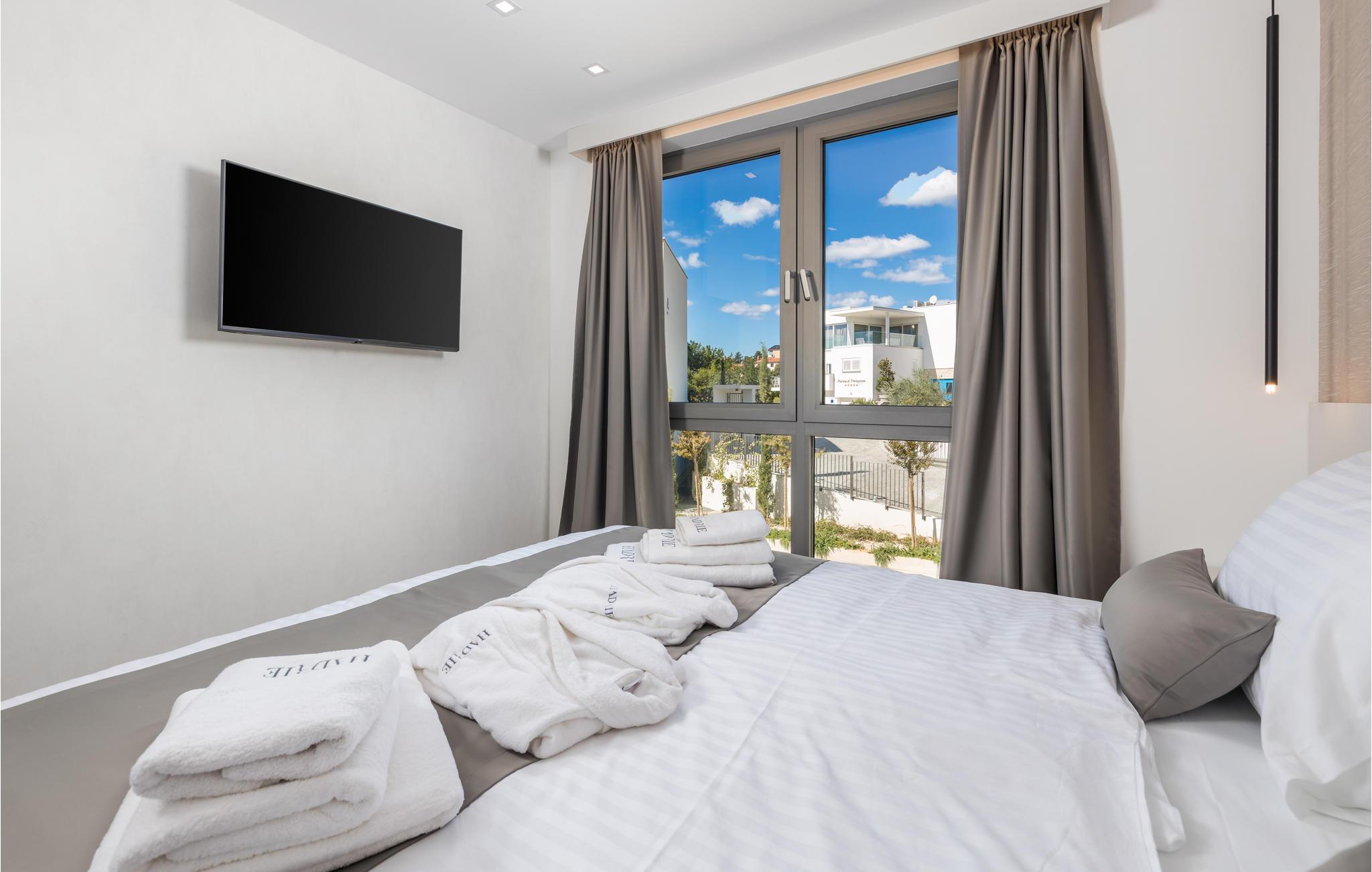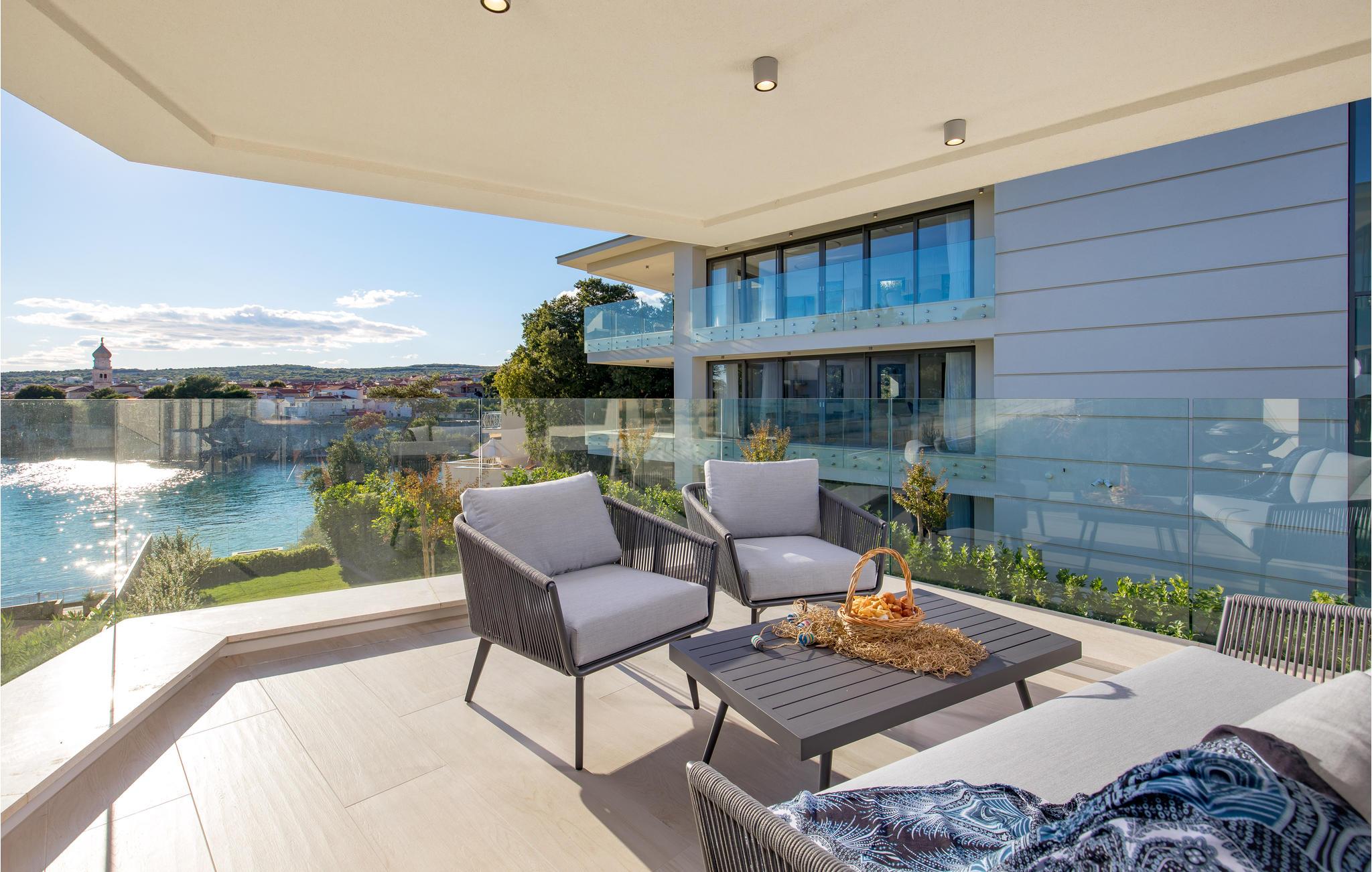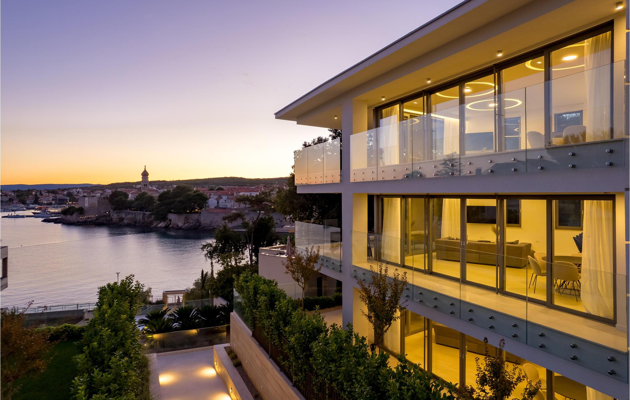 Verbringen Sie einen magischen Urlaub in dieser luxuriösen Ferienwohnung mit Außenpool und einem reizenden Blick auf das Meer und die Altstadt von Krk.