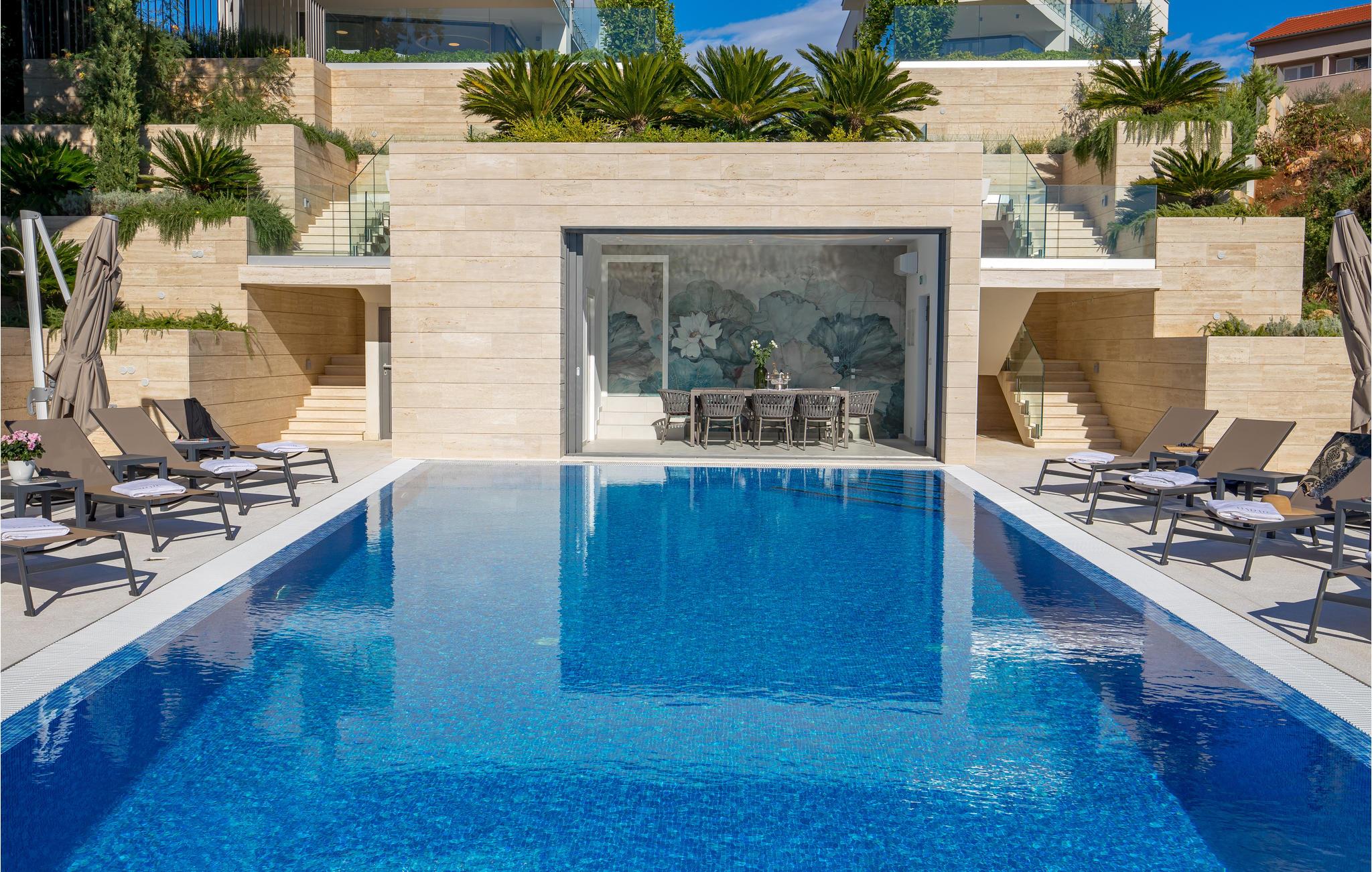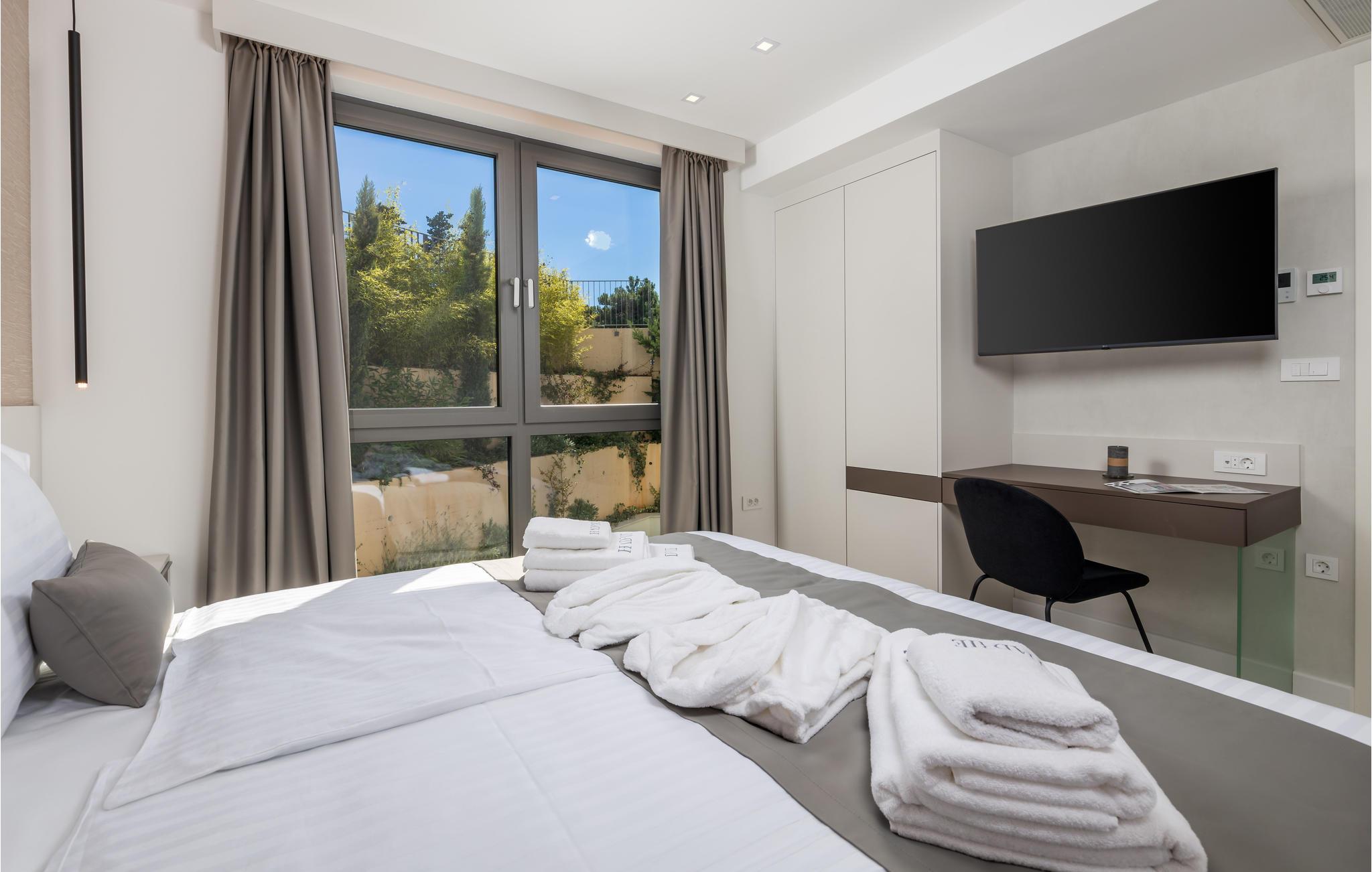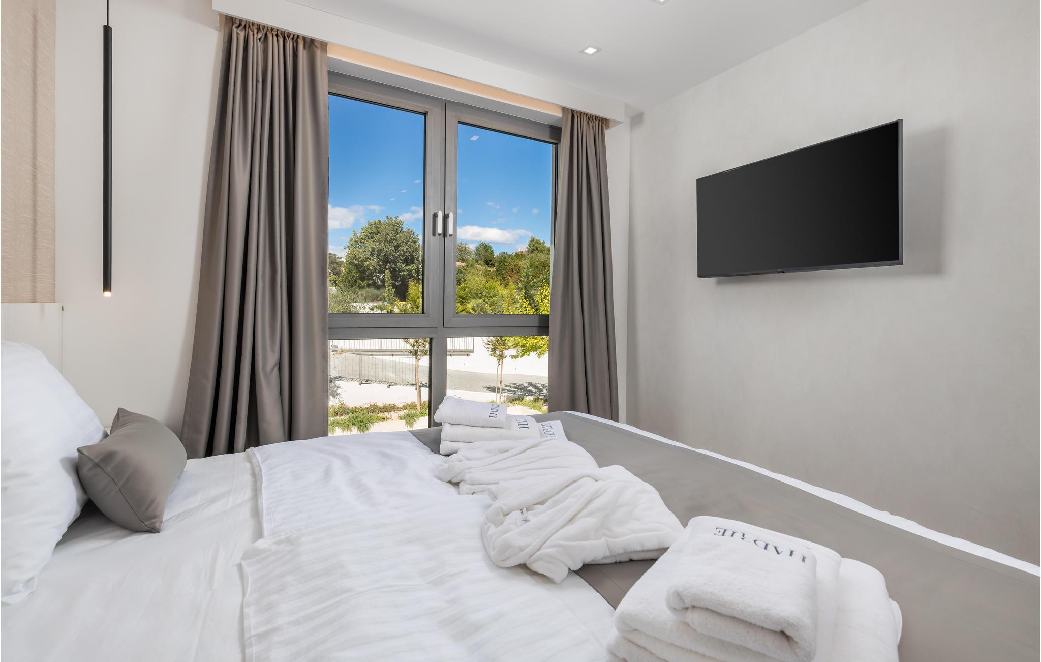 Verbringen Sie einen magischen Urlaub in dieser luxuriösen Ferienwohnung mit Außenpool und einem reizenden Blick auf das Meer und die Altstadt von Krk.