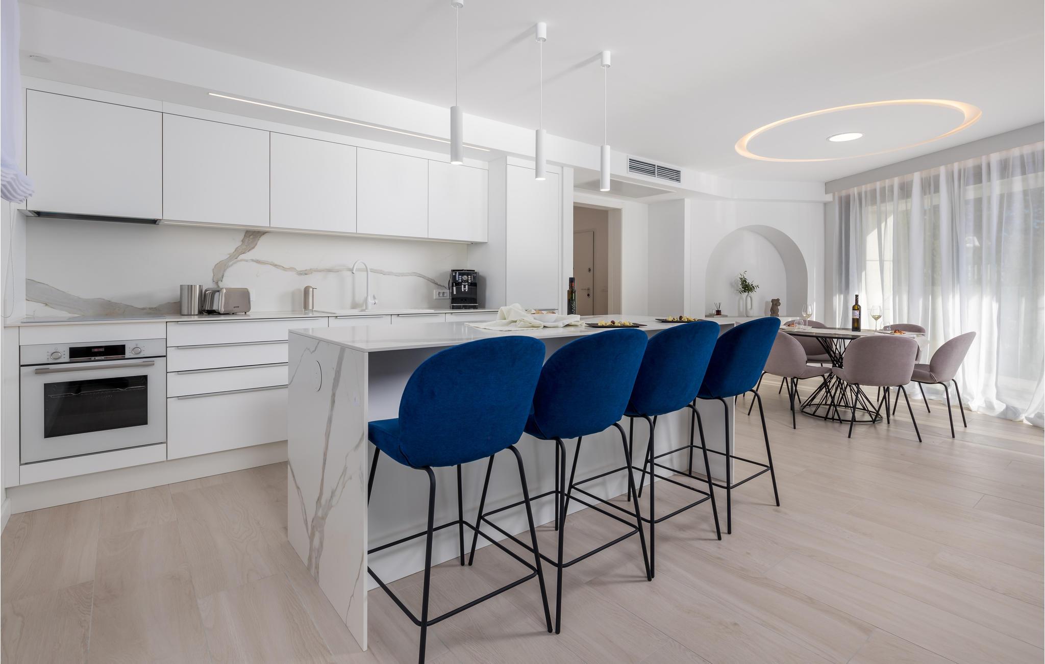 An der Küstenpromenade von Krk und nur 60 m vom Strand von Portopisana entfernt begrüßt Sie diese wunderschöne Ferienwohnung. Die Wohnung befindet sich in einer von zwei Villen mit insgesamt sechs Appartments (CKI470-475). Ihre Wohnung erstreckt sich über die gesamte Etage und bietet einen verzaubernden Blick auf das Wasser und den Glockenturm der Stadt Krk. Die komfortabel und hochwertig ausgestatteten Zimmer sind stilvoll eingerichtet und bieten den idealen Rahmen für einen erholsamen Urlaub.