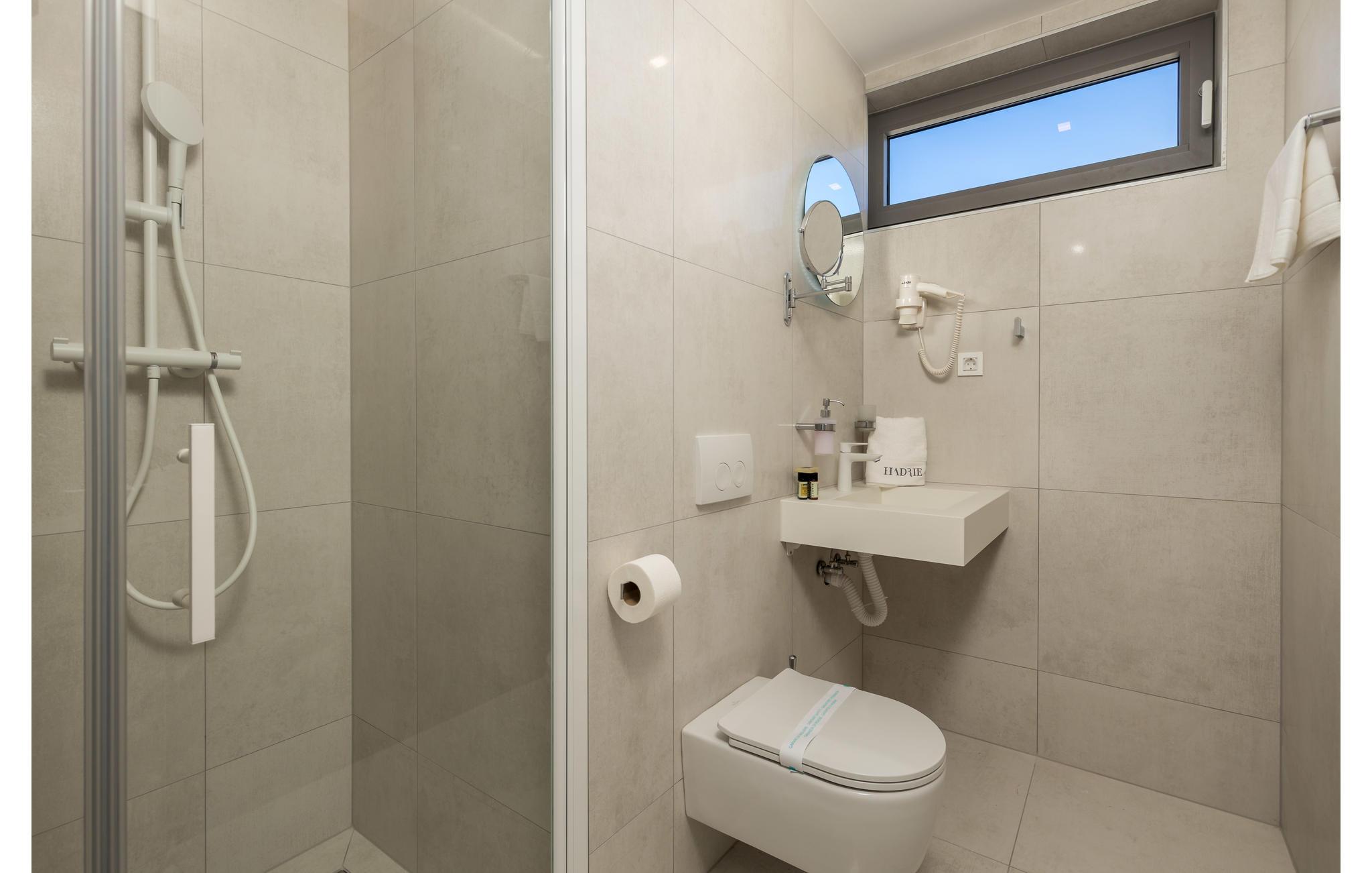 - WC mit warmem und kaltem Wasser, Dusche