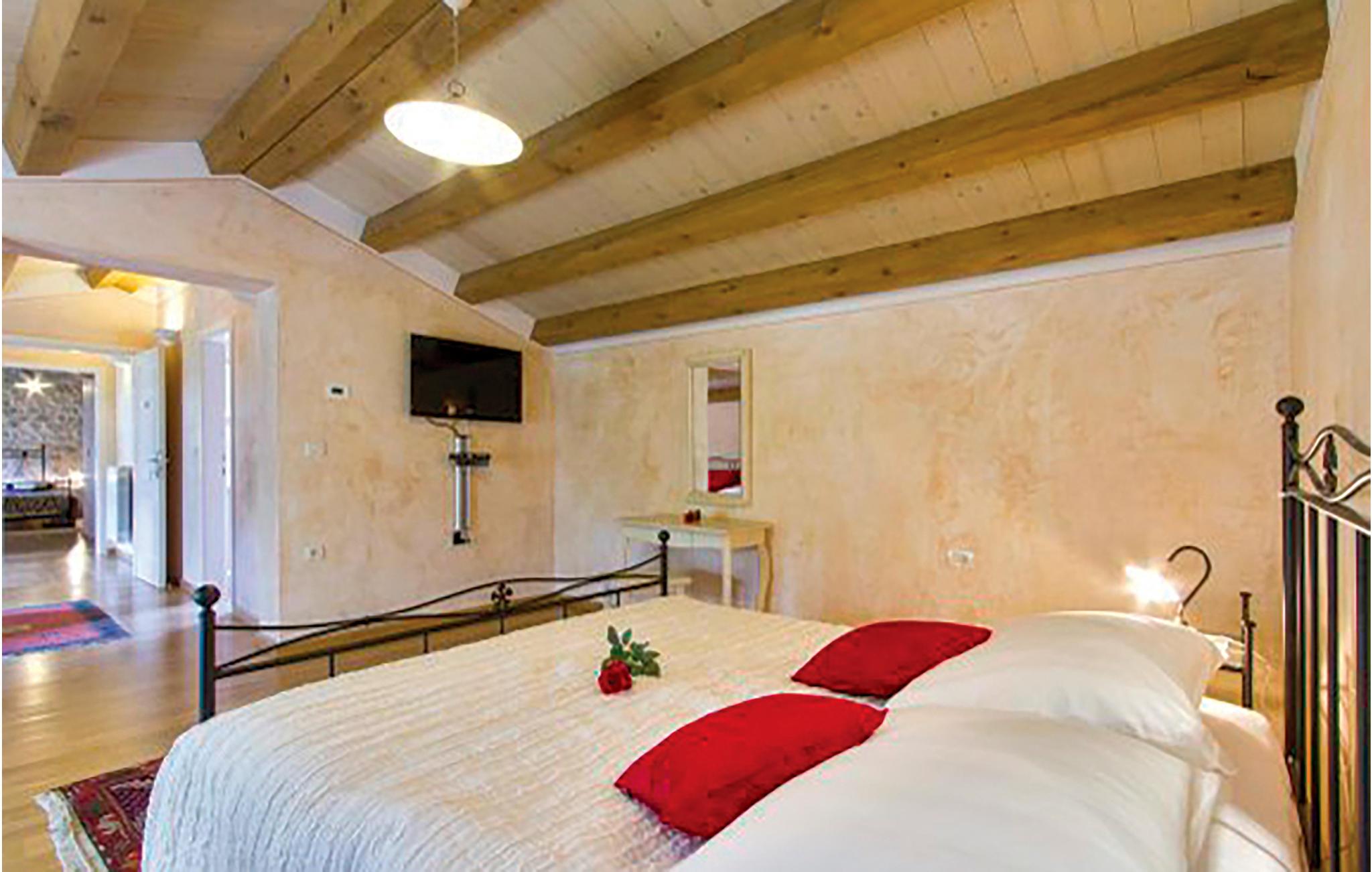 Dieses historische Anwesen befindet sich auf einem großen Grundstück mit Eichen und 700 Olivenbäumen und bietet viel Privatsphäre. Das Objekt besteht aus insgesamt 4 Gebäuden, die durch Außentreppen miteinander verbunden sind. Im ersten Stock des Hauptgebäudes befindet sich der Schlafbereich. Die moderne Küche und ein geräumiges Esszimmer sind im Erdgeschoss. Den Gästen steht ein beeindruckender Wellnessbereich mit eingelassenem Hydromassagepool, Relax-Zone, Fitness, Dampfbad und finnischer Sauna zur Verfügung. Im Erdgeschoss des zweiten Gebäudes sind ein Wohnzimmer und eine Weinbar untergebracht. Im ersten Stock liegen zwei Schlafzimmer. Ein Raum für die Verkostung von Wein und Olivenöl ist im Erdgeschoss des dritten Gebäudes. Im ersten Stock befindet sich ein Aktivitätsraum mit Billardtisch und Darts. Den großen Pool sowie Spielgeräte für Ihre Kinder finden Sie im Hof. Zusätzlich gibt es kleine Fußballtore sowie eine Rasenfläche für Volleyball und Badminton. Ein Fahrradabstellraum ist ebenso vorhanden. In der Nähe finden Sie einen 14 km langen Radweg, er führt Sie durch die einzigartige Natur dieser Region. Nach Absprache mit dem Eigentümer werden gegen Gebühr eine Reihe von Dienstleistungen, wie Catering, Massagen oder Ausflüge, organisiert. Genießen Sie den schönen Ausblick auf die grüne Landschaft. Besuchen Sie die Künstlerstadt Labin, mit stolzen Renaissance- und Barockpalästen, steilen Gassen und vielen idyllischen Winkeln, die die Altstadt zum Paradebeispiel einer istrianischen Burgenstadt machen. Erleben Sie historische Denkmäler und zahlreiche Ateliers verschiedener moderner Künstler. Lassen Sie sich auch vom alten, malerischen Fischerdorf Rabac verzaubern, das sich im Laufe der Zeit zu einem der beliebtesten Urlaubsorte der Region entwickelt hat. Die traumhaften weißen Kieselstrände fallen flach in das kristallklare Meer ab.