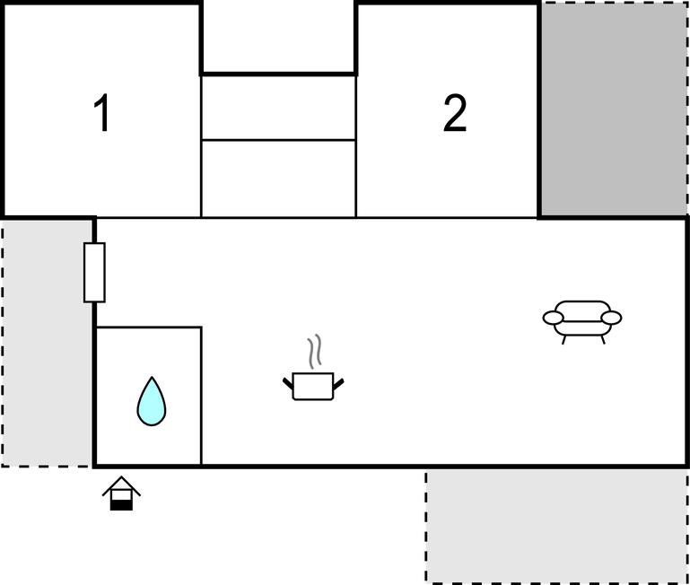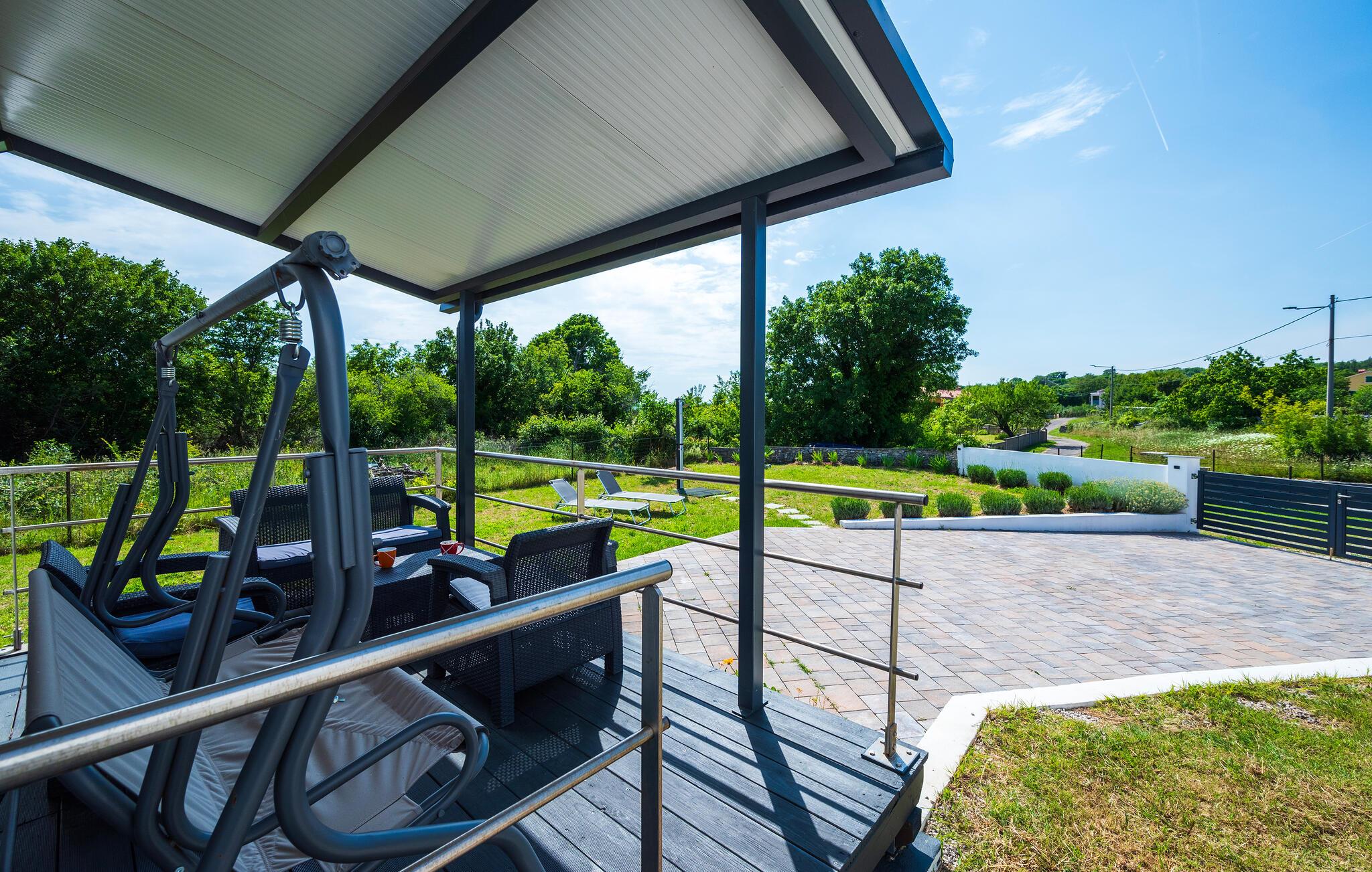 Vom Wohnzimmer gelangen Sie von einer Seite auf eine überdachte Terrasse und auf der anderen Seite auf eine offene Terrasse, auf der Sie sich mit Ihrem Lieblingsbuch oder einem Glas Wein entspannen können.