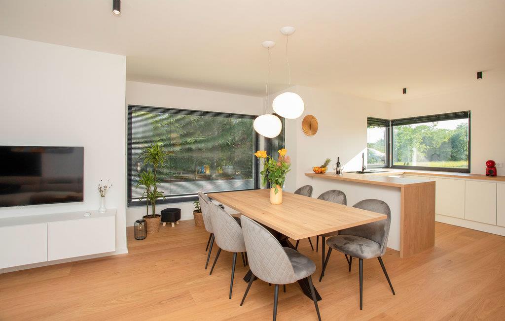 Freuen Sie sich auf einen erholsamen und luxuriösen Urlaub in diesem tollen Haus. Gemeinsam mit Ihrer Familie können Sie es sich hier gemütlich machen und die Räume mit moderner Dekoration genießen. Schnell werden Sie sich mit Ihren Lieben hier wie zuhause fühlen und beim gemeinsamen Koch-, Spiele- und Filmabenden den Komfort des Hauses genießen. Vom Wohnzimmer können Sie den freien Blick auf den Pool erleben, das für Familien mit Kindern geeignet ist. Denn der schöne Außenpool sorgt in den Sommermonaten für Erfrischung und lässt Sie sich gerne im Freien aufhalten.