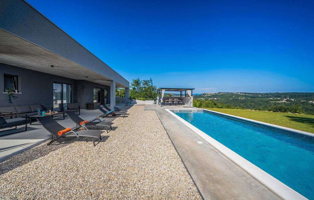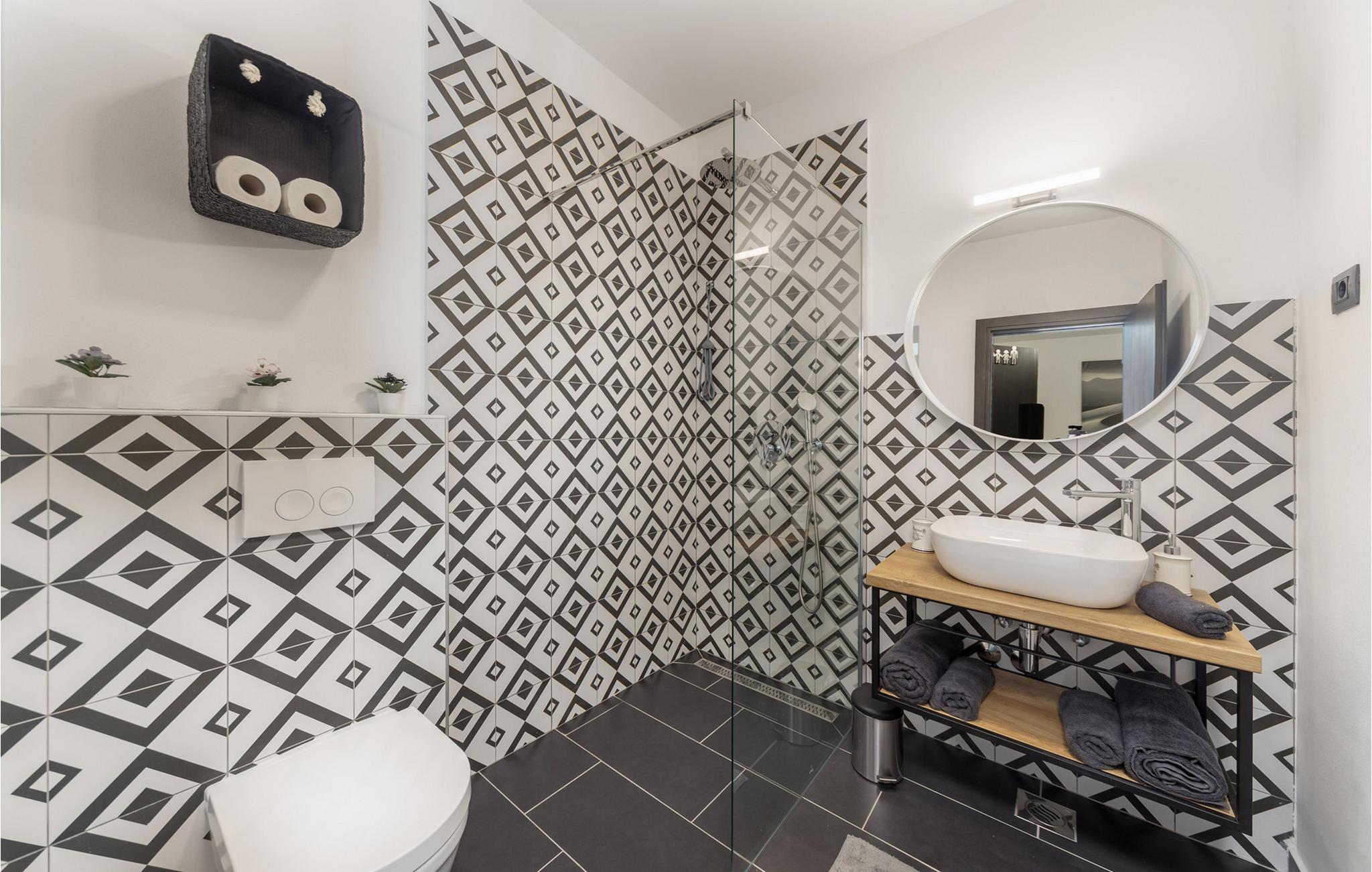 Villa Bartolo liegt in der „Perle der Kvarner“ – der Stadt Labin. Die Stadt Labin ist mit dem touristischen Teil von Rabac verbunden, das an der Ostküste Istriens liegt. Seinen touristischen Erfolg verdankt es seinen weißen Kiesstränden, der mediterranen Vegetation und dem kristallklaren Meer. 2 km von Labin entfernt liegt der kleine Vorort Vinež, der eine Oase der Ruhe und Stille bietet. In der Villa Barolo können Sie ein einzigartiges Kvarner-Erlebnis erleben, das Ihnen ermöglicht, dem stressigen Alltag zu entfliehen und einen idealen Urlaub für die Familie zu verbringen. Die Villa (145 m2) verfügt über drei neu renovierte Schlafzimmer, von denen zwei mit Doppelbetten und ein Schlafzimmer mit einem Etagenbett ausgestattet sind. Die Zimmer verfügen über zwei Badezimmer mit Dusche und alle notwendigen Einrichtungen für einen ungestörten Urlaub. Die minimalistische Küche verfügt über alle notwendigen Geräte, die ein einfaches und schnelles Kochen ermöglichen: Backofen, Kaffeemaschine, Mikrowelle, Geschirrspüler und Toaster. Die Küche ist mit dem Wohnzimmer verbunden, wo Sie in einem bequemen Sessel und Sofa entspannen und mit der Familie abhängen können. Die Villa ist so gebaut, dass Sie von jedem Zimmer aus direkt und einfach einen großen Garten (2000 m2) erreichen können, in dem sich ein Pool mit Liegestühlen und ein Bereich befinden, in dem Sie das umliegende Grün genießen können. Von allen Zimmern der Villa aus können Sie auch den Blick auf die wunderschöne Altstadt von Labin genießen. Im äußeren Teil der Villa gibt es einen Sitzbereich, wo Sie einen Kaffee am frühen Morgen oder Ihre eigenen, auf einem Holzkohlegrill zubereiteten Köstlichkeiten genießen können. Im Außenpool (35 m2) können Sie sich an heißen Sommertagen erfrischen und sich den gewünschten sommerlichen Teint holen. Villa Bartolo wird Sie mit ihrer Schlichtheit und Eleganz begeistern und Ihnen ein Gefühl von Frieden und Ruhe vermitteln. Sie werden sich wie in Ihrem eigenen Paradies fühlen, umgeben von endlosem mediterranen Grün. Die mittelalterliche Stadt Labin bietet viele Touristenattraktionen, die die Geschichte und Kultur des mittelalterlichen Istriens widerspiegeln. Nehmen Sie an den zahlreichen Spazierwegen von Rabac teil, die durch die duftende mediterrane Natur führen, und überzeugen Sie sich selbst, warum Rabac die „Perle der Kvarner-Bucht“ genannt wird. Haustiere sind in dieser Unterkunft nach Ermessen des Eigentümers oder gegen eine Gebühr gestattet.