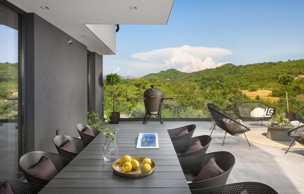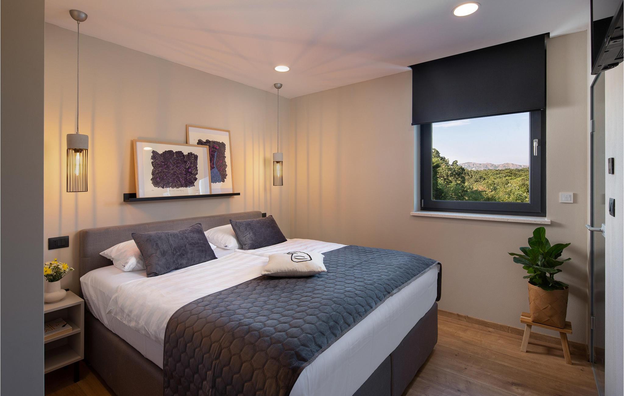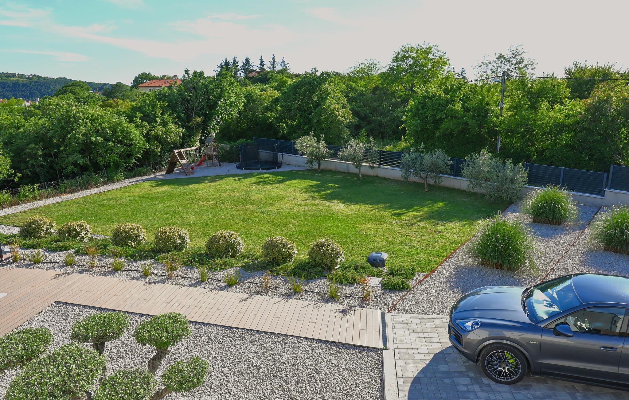 Die Villa wurde 2022 in einem modernen Stil erbaut, der jeden Gast begeistern wird. Ihnen stehen 375 m2 zur Verfügung, während die Gesamtfläche des Grundstücks 2000 m2 beträgt. Die Villa bietet Platz für maximal 10 Personen. Die Villa besteht aus Erdgeschoss, Obergeschoss und Keller. Im Keller befindet sich eine Man Cave-Garage mit einem Weinkeller, einem Spielzimmer (Playstation, Tischfußball, Tischtennis, Darts), einem Fitnessraum, einer Garage für ein Auto, einem Badezimmer mit Dusche und einem Schlafzimmer. Das Erdgeschoss begeistert mit einem Wohnzimmer mit Ecksofa, Couchtisch, Klavier und Fernseher. Es gibt außerdem eine modern ausgestattete Küche und ein Esszimmer mit einem Esstisch für 10 Personen. Sie wohnen komfortabel in fünf Schlafzimmern, zwei davon mit Doppelbetten und eigenem Bad mit Badewanne, und drei Zimmern mit sechs Einzelbetten und eigenem Bad mit Dusche.