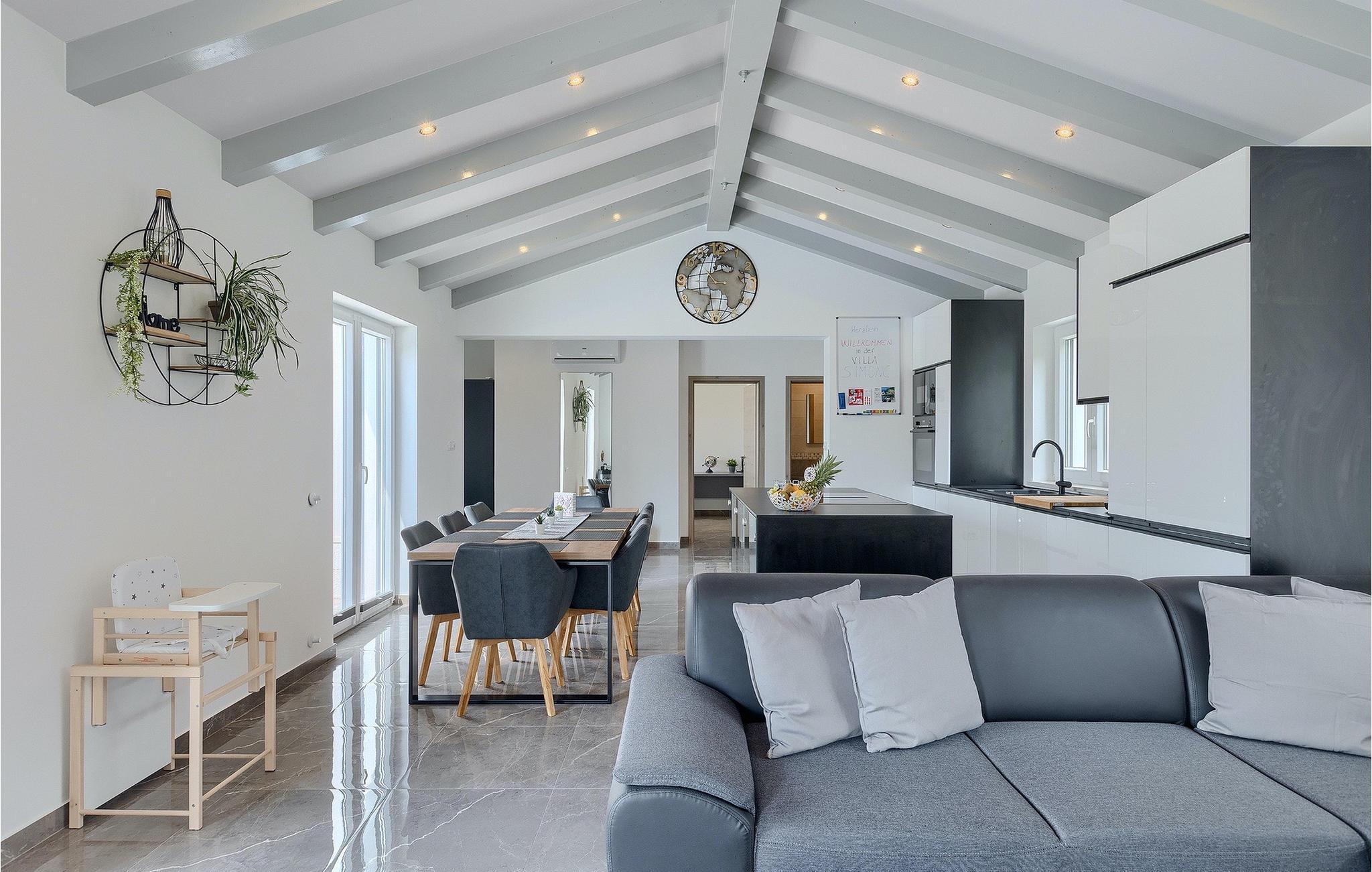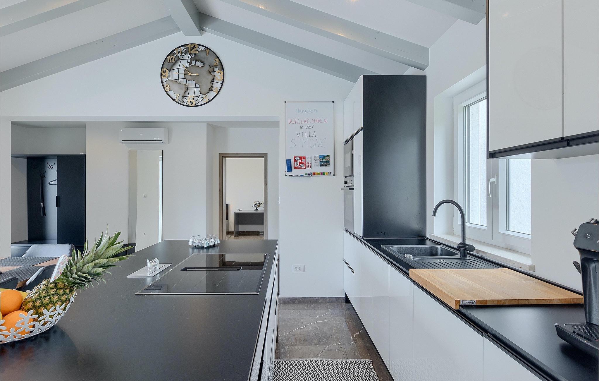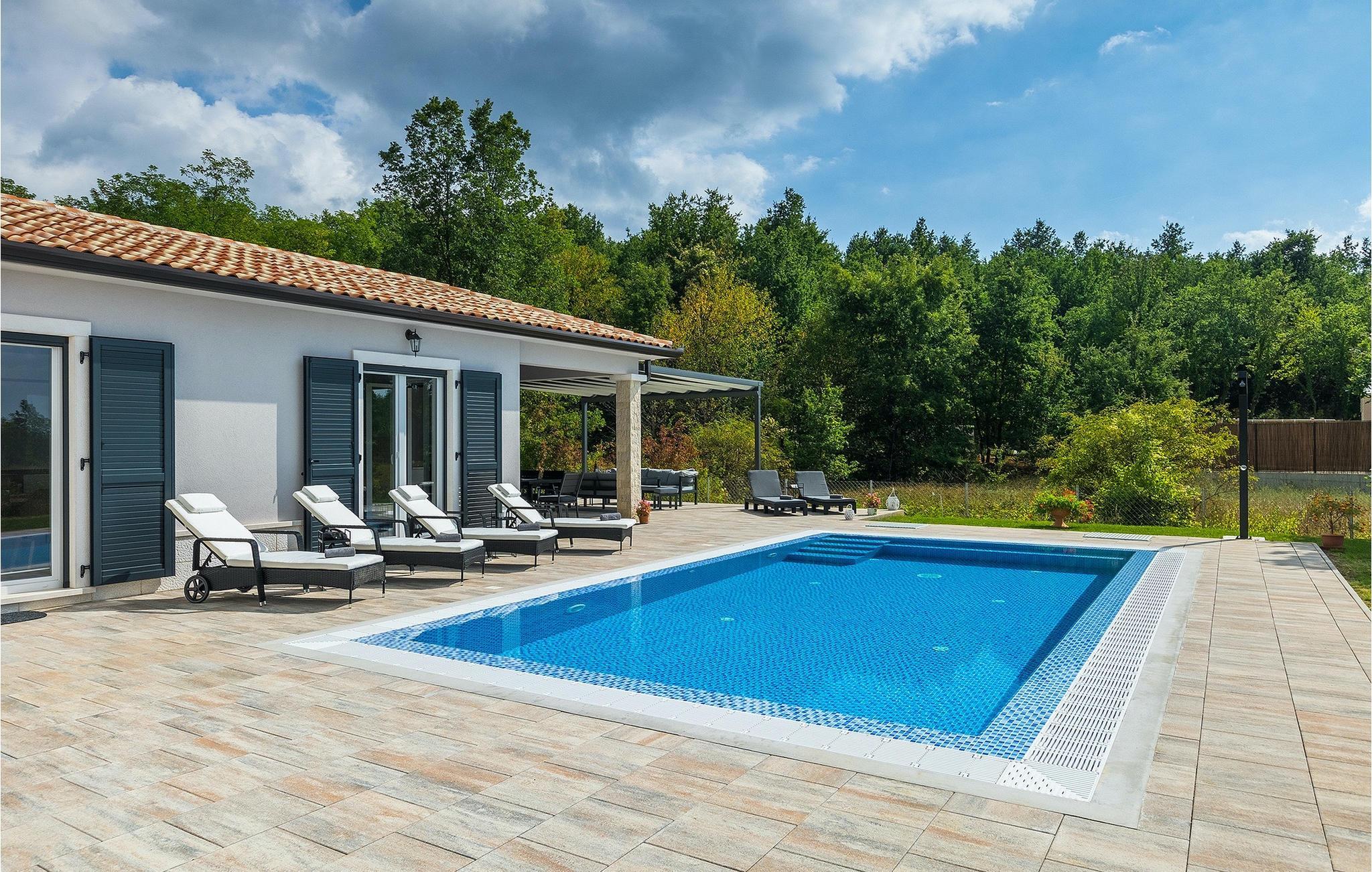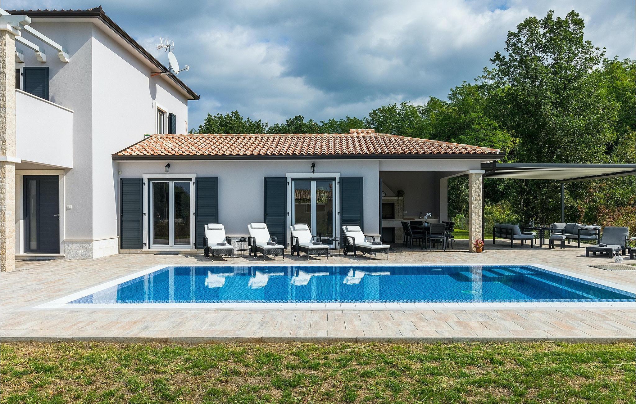 Die Villa Simone Paradiso befindet sich in hervorragender Lage nahe der Küstenstadt Rabac. Der Außenbereich der Villa verfügt über einen einen privaten “zero edge“ Pool sowie eine Außendusche. Nutzen Sie die Sonnenliegen, die sich rund u den Pool befinden, um sich zu entspannen. Ein überdachter Grillplatz steht Ihnen zur Verfügung um köstliche Mahlzeiten vorzubereiten. Ebenso befindet sich auf der Terrasse auch ein Essbereich im Freien. Verschiedene Sportaktivitäten sind auf dem Grundstück vorhanden. Die Villa kann insgesamt 8 Personen beherbergen. Der Innenbereich der Villa wurde stilvoll eingerichtet, wobei viel Aufmerksamkeit den Details geschenkt wurde. Im Erdgeschoss befindet sich eine komplett ausgestattete Küche, die mit dem Wohnzimmer verbunden ist. Aus dem Wohnbereich gelangen Sie zur Terrasse die mit Gartenmöbel ausgestattet ist. Dies ist der perfekte Platz um Ihren Morgenkaffee zu genießen. Hier befindet sich noch ein Schlafzimmer mit eigenem Badezimmer sowie eine Gäste Toilette. Auf der ersten Etage befinden sich zwei weitere komfortable Schlafzimmer jeweils mit eigenem Badezimmer. Das eine Schlafzimmer bietet Zugang zum Balkon. Die Villa ist komplett klimatisiert, bietet Internetzugang sowie einen privaten Parkplatz für bis zu 6 Autos. Die Villa Simone Paradiso bietet alles was man sich für einen erholsamen und entspannten Urlaub wünscht.Die Villa Simone Paradiso befindet sich nur 9 km vom Strand in Rabac entfernt. Die Umgebung bietet eine Vielzahl an traumhaften Kiesstränden und versteckten Buchten mit kristallklarem Wasser. Eine kurze Autofahrt entfernt befindet sich die Küstenstadt Rabac. Hier ist das Angebot an Wasser-Sportaktivitäten groß. Wir empfehlen einen romantischen Spaziergang entlang der Promenade zu machen. Hinsichtlich der Lage ist die Villa Simone Paradiso ein ausgezeichneter Ausgangspunkt für Ausflüge. Besuchen Sie die historische Stadt Pula in welcher sich das bezaubernde römische Amphitheater befindet. Hier werden viele Filmveranstaltungen aber auch kulturelle Veranstaltungen und Konzerte organisiert. Ebenfalls empfehlen wir Ihnen die malerische Stadt Rovinj zu besuchen. Besonders an der Stadt ist, dass die Altstadt sich auf einer kleinen Halbinsel befindet. Erkunden Sie die schmalen Gassen der Stadt und genießen Sie ihre ersten Tasse Kaffee in einem der zahlreichen Cafes. Die Restaurants bieten ein ausgezeichnetes Angebot an Landestypischen Spezialitäten welche Sie unbedingt kosten sollten. Begeben Sie sich nach Istrien und erkunden Sie die Schönheiten dieser Region.