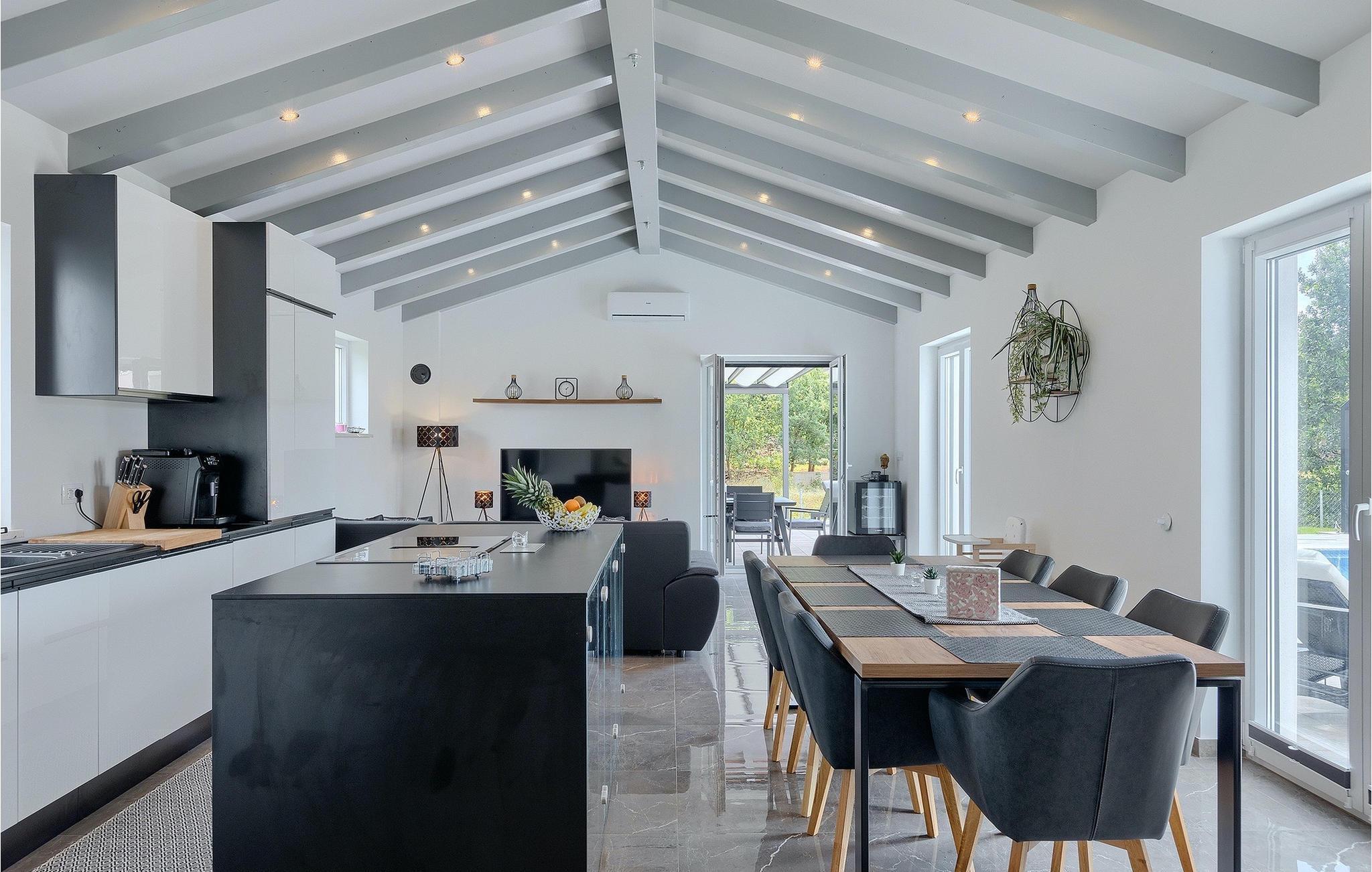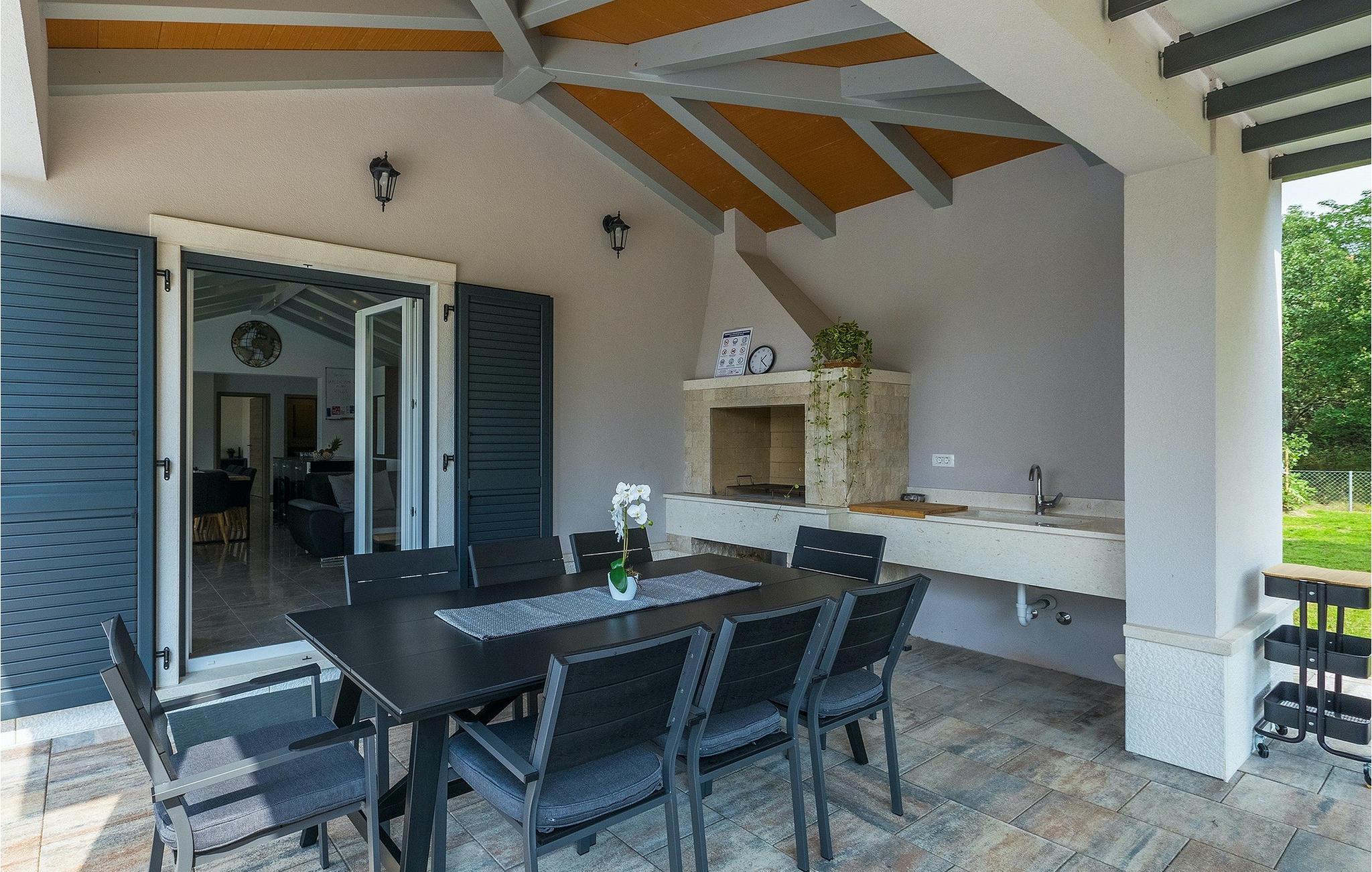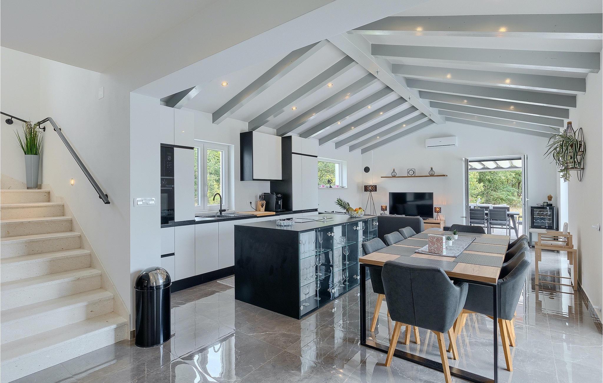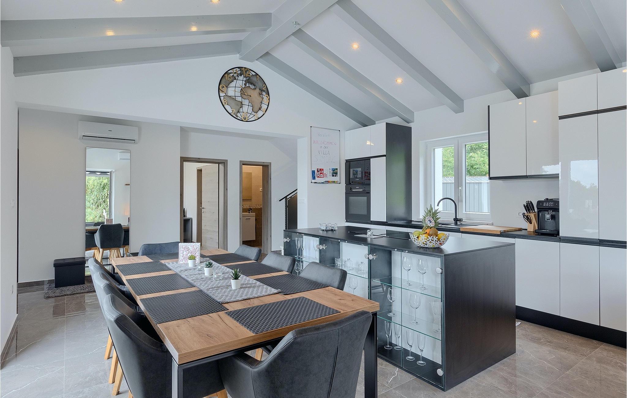 Die Villa Simone Paradiso befindet sich in hervorragender Lage nahe der Küstenstadt Rabac. Der Außenbereich der Villa verfügt über einen einen privaten “zero edge“ Pool sowie eine Außendusche. Nutzen Sie die Sonnenliegen, die sich rund u den Pool befinden, um sich zu entspannen. Ein überdachter Grillplatz steht Ihnen zur Verfügung um köstliche Mahlzeiten vorzubereiten. Ebenso befindet sich auf der Terrasse auch ein Essbereich im Freien. Verschiedene Sportaktivitäten sind auf dem Grundstück vorhanden. Die Villa kann insgesamt 8 Personen beherbergen. Der Innenbereich der Villa wurde stilvoll eingerichtet, wobei viel Aufmerksamkeit den Details geschenkt wurde. Im Erdgeschoss befindet sich eine komplett ausgestattete Küche, die mit dem Wohnzimmer verbunden ist. Aus dem Wohnbereich gelangen Sie zur Terrasse die mit Gartenmöbel ausgestattet ist. Dies ist der perfekte Platz um Ihren Morgenkaffee zu genießen. Hier befindet sich noch ein Schlafzimmer mit eigenem Badezimmer sowie eine Gäste Toilette. Auf der ersten Etage befinden sich zwei weitere komfortable Schlafzimmer jeweils mit eigenem Badezimmer. Das eine Schlafzimmer bietet Zugang zum Balkon. Die Villa ist komplett klimatisiert, bietet Internetzugang sowie einen privaten Parkplatz für bis zu 6 Autos. Die Villa Simone Paradiso bietet alles was man sich für einen erholsamen und entspannten Urlaub wünscht.Die Villa Simone Paradiso befindet sich nur 9 km vom Strand in Rabac entfernt. Die Umgebung bietet eine Vielzahl an traumhaften Kiesstränden und versteckten Buchten mit kristallklarem Wasser. Eine kurze Autofahrt entfernt befindet sich die Küstenstadt Rabac. Hier ist das Angebot an Wasser-Sportaktivitäten groß. Wir empfehlen einen romantischen Spaziergang entlang der Promenade zu machen. Hinsichtlich der Lage ist die Villa Simone Paradiso ein ausgezeichneter Ausgangspunkt für Ausflüge. Besuchen Sie die historische Stadt Pula in welcher sich das bezaubernde römische Amphitheater befindet. Hier werden viele Filmveranstaltungen aber auch kulturelle Veranstaltungen und Konzerte organisiert. Ebenfalls empfehlen wir Ihnen die malerische Stadt Rovinj zu besuchen. Besonders an der Stadt ist, dass die Altstadt sich auf einer kleinen Halbinsel befindet. Erkunden Sie die schmalen Gassen der Stadt und genießen Sie ihre ersten Tasse Kaffee in einem der zahlreichen Cafes. Die Restaurants bieten ein ausgezeichnetes Angebot an Landestypischen Spezialitäten welche Sie unbedingt kosten sollten. Begeben Sie sich nach Istrien und erkunden Sie die Schönheiten dieser Region.