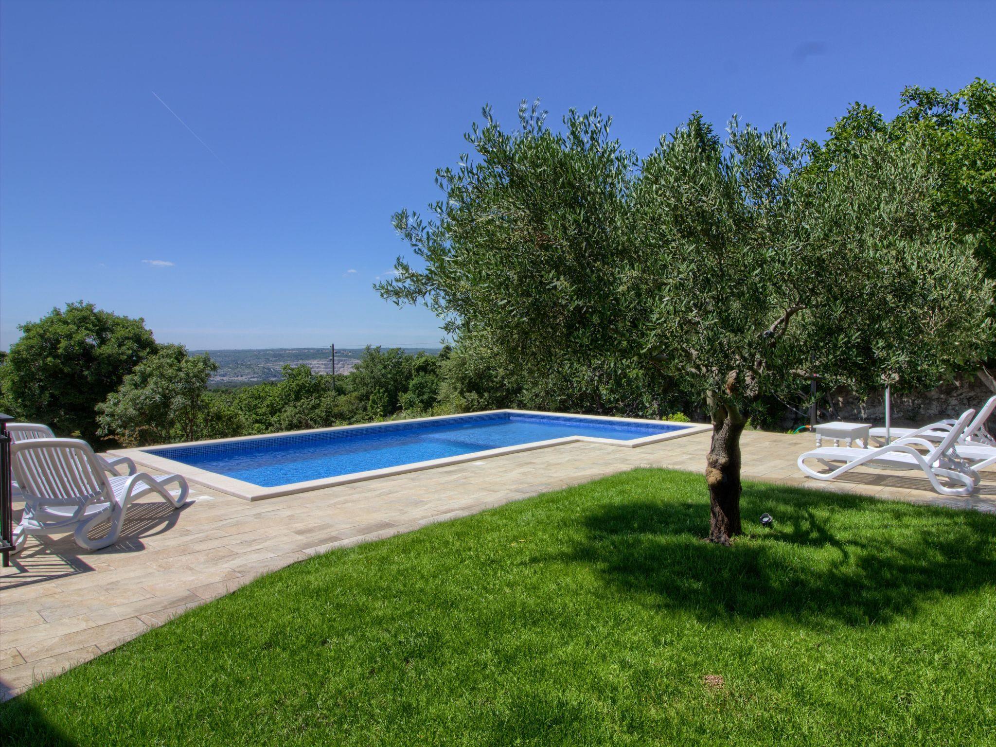 Einfamilienhaus "Marevista". Im Weiler Brovinje, 15 km vom Zentrum von Labin, sonnige, erhöhte Lage, 2 km vom Meer, 2 km vom Strand. Zur Alleinbenutzung: Grundstück 1'000 m2 (eingezäunt), Garten mit Rasen und Pflanzen, Schwimmbad (33 m2, 70 - 140 cm tief, saisonale Verfügbarkeit: 04.Mai. - 26.Okt.) mit Innentreppe. Ungleichmässige Schwimmbadform, Aussendusche, Tischtennis, Grill, Kinderspielplatz (Schaukel). Im Hause: Internetzugang, Billard, Tischfussball, Waschmaschine. Parkplatz beim Haus auf dem Grundstück. Einkaufsgeschäft 2 km, Restaurant 2 km, Bushaltestelle 16.7 km, Kieselstrand 2 km, Felsstrand 2 km. Surfschule 10 km, Tennis 18 km, Wanderwege ab Haus 50 m, Radweg 100 m.