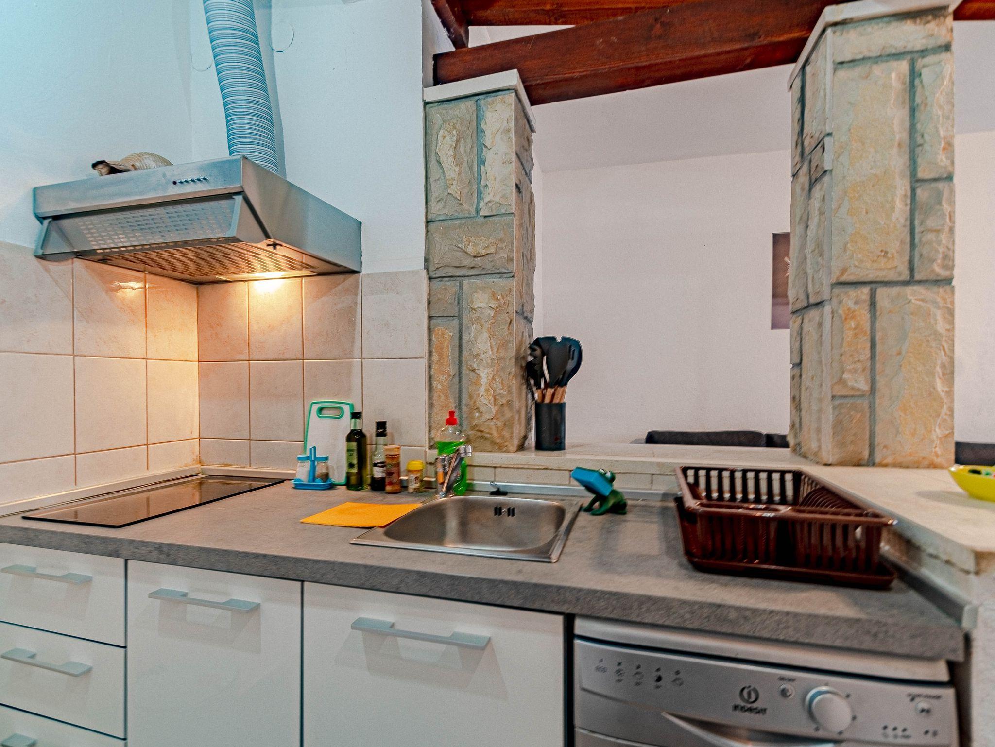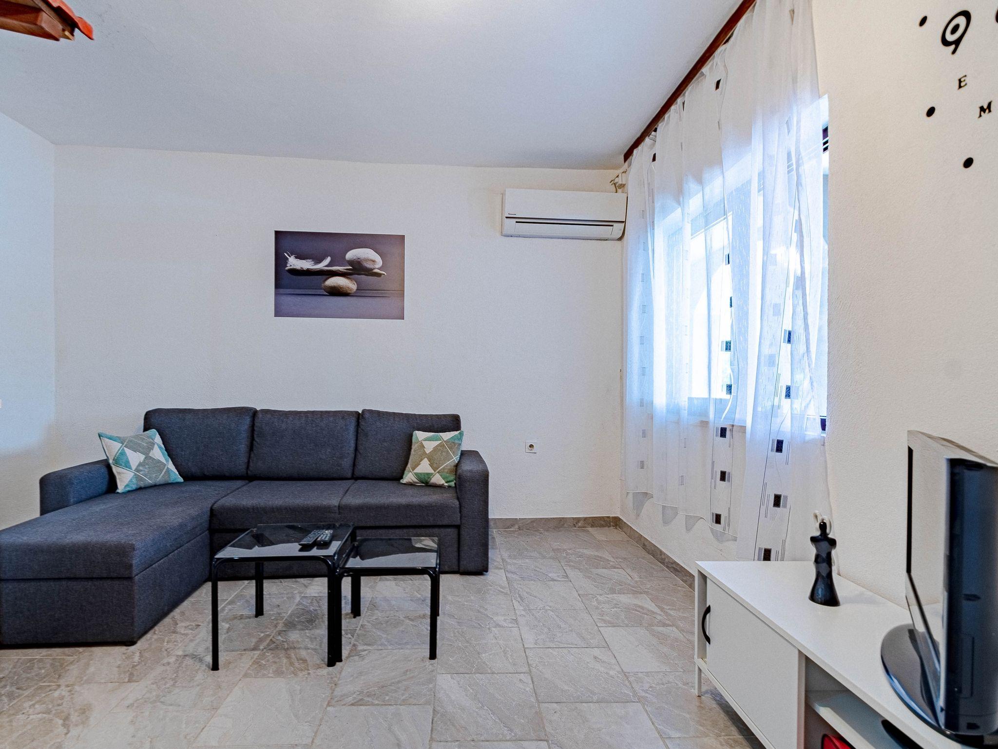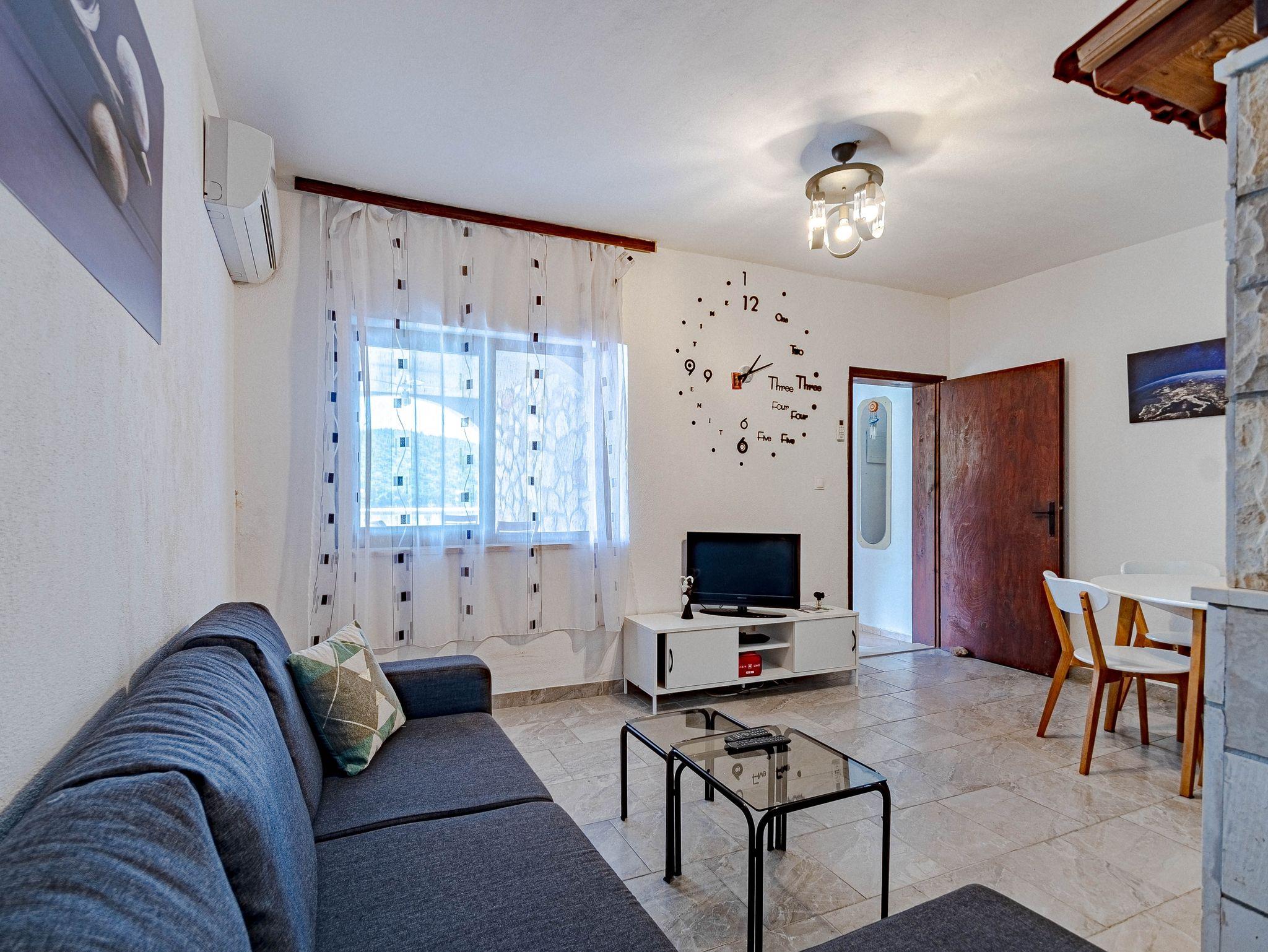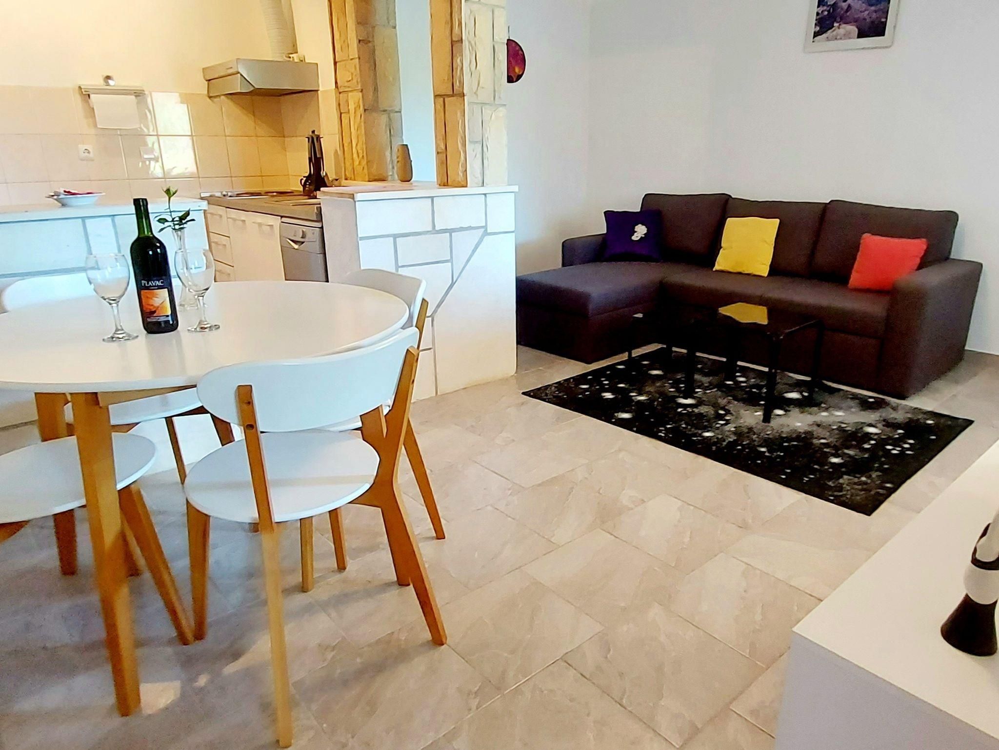 Ferienwohnung bietet Platz für 2 Gäste. Die Betten sind in Schlafzimmern, die es 1 gibt, innerhalb einer Gesamtfläche von 50m2, angeordnet. Die Gäste haben eine eigene Terrasse zur Verfügung, auf der sie in warmen Sommernächten genießen können. Das Apartment bietet Meerblick. Es ist erlaubt, Speisen auf dem Gemeinschafts-Grill vorzubereiten. In der Unterkunftseinheit besteht die Möglichkeit des Mitbringens von Haustieren gegen Aufpreis. Räume der gebuchten Unterkunftseinheit werden nicht in eine Ganze verbunden. IM PREIS INBEGRIFFEN: Kurtaxe, Endreinigung, Klimatisierung, Parkplatz, Internet, Bootsanlegeplatz, Fahrrad, Zusatzbett, Bügeleisen, Bügelbrett, Föhn. VERBINDLICHE ZUSÄTZLICHE KOSTEN: Aufzahlung für Kurzaufenthalte (prozentualer Zuschlag pro Nächtigungsanzahl: 30% - 1, 20% - 2, 10% - 3). UNVERBINDLICHE ZUSÄTZLICHE KOSTEN: Frühstück (5,00 €, 50% Nachlass für Kinder zwischen 4 und 12 Jahren, Kinder bis 4 Jahre sind frei.), Haustiere (5,00 € pro Nacht). Die Verfügbarkeit zusätzlicher Dienstleistungen in Ihrem reservierten Termin und die Preise derselben (falls nicht aufgeführt) müssen im Voraus überprüft werden. Zusätzliche Dienstleistungen die in der Zahlungsaufforderung nicht aufgeführt sind werden direkt beim Vermieter bezahlt, angenommen der Gast nutzt auch diese.