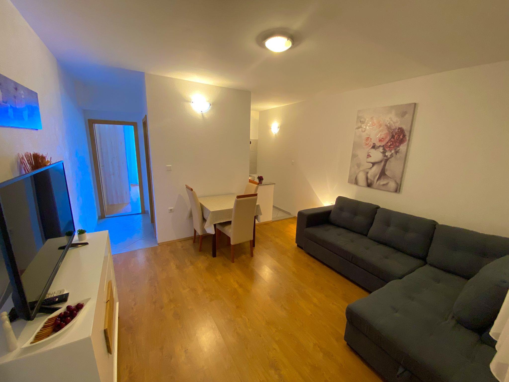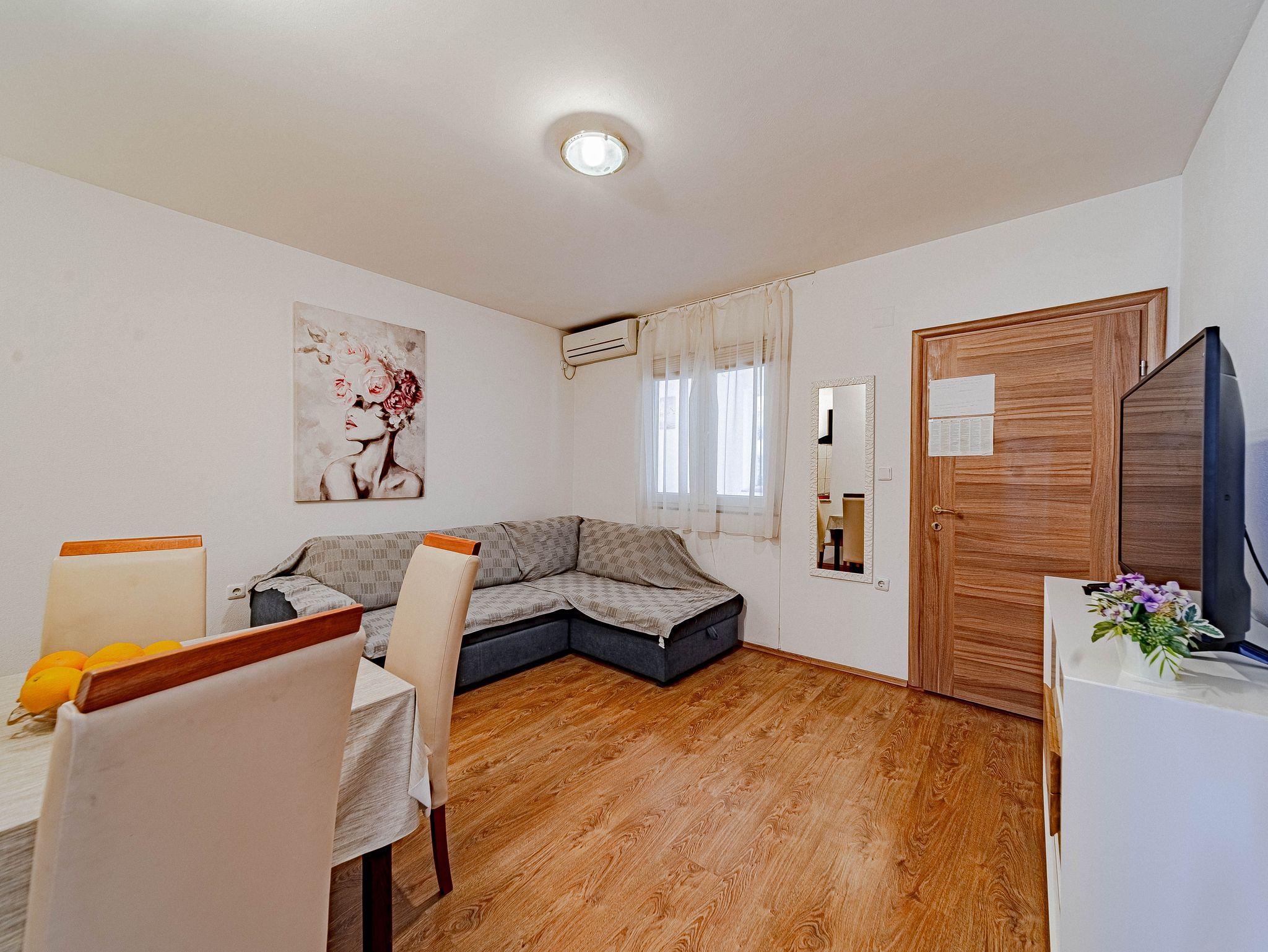 Ferienwohnung bietet Platz für 4 Gäste. Die Betten sind in Schlafzimmern, die es 1 gibt, und in Wohnzimmer, innerhalb einer Gesamtfläche von 35m2, angeordnet. Die Gäste haben eine eigene Terrasse zur Verfügung, auf der sie in warmen Sommernächten genießen können. Das Apartment bietet Meerblick. Es ist erlaubt, Speisen auf dem Gemeinschafts-Grill vorzubereiten. IM PREIS INBEGRIFFEN: Kurtaxe, Endreinigung, Klimatisierung, Parkplatz, Internet, Kinderbett, Bügeleisen, Bügelbrett, Föhn, Sonnenschirm, Liegestühle. VERBINDLICHE ZUSÄTZLICHE KOSTEN: Aufzahlung für Kurzaufenthalte (prozentualer Zuschlag pro Nächtigungsanzahl: 30% - 1, 20% - 2, 10% - 3). UNVERBINDLICHE ZUSÄTZLICHE KOSTEN: Wäschewaschen (8,00 € Waschen), Zusatzbett (10,00 € pro Nacht). Die Verfügbarkeit zusätzlicher Dienstleistungen in Ihrem reservierten Termin und die Preise derselben (falls nicht aufgeführt) müssen im Voraus überprüft werden. Zusätzliche Dienstleistungen die in der Zahlungsaufforderung nicht aufgeführt sind werden direkt beim Vermieter bezahlt, angenommen der Gast nutzt auch diese.