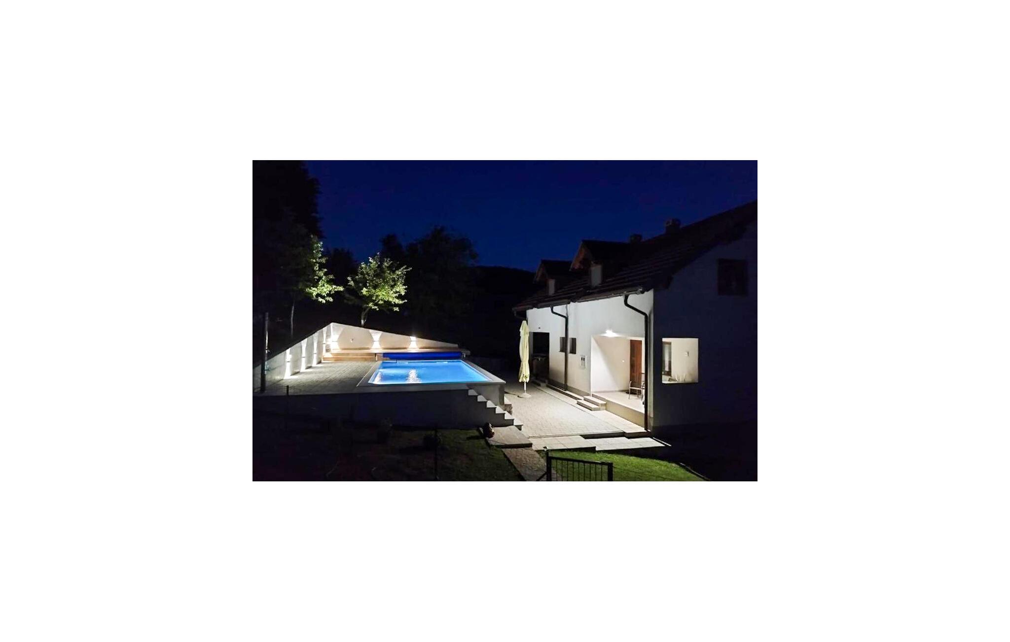 Genießen Sie einen geruhsamen Urlaub in diesem Ferienhaus mit Pool und Whirlpool.