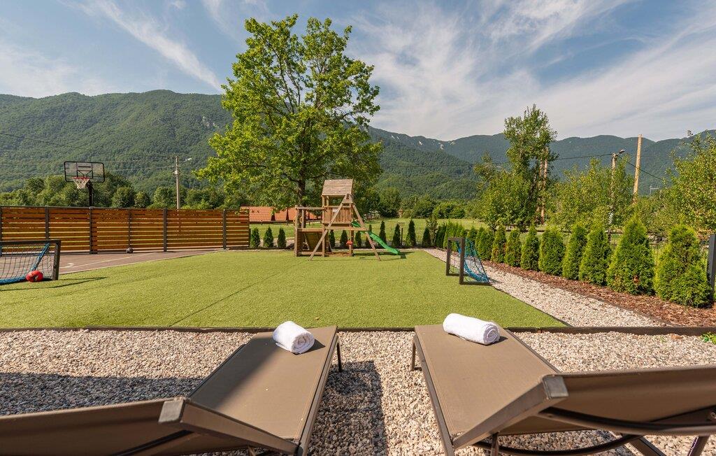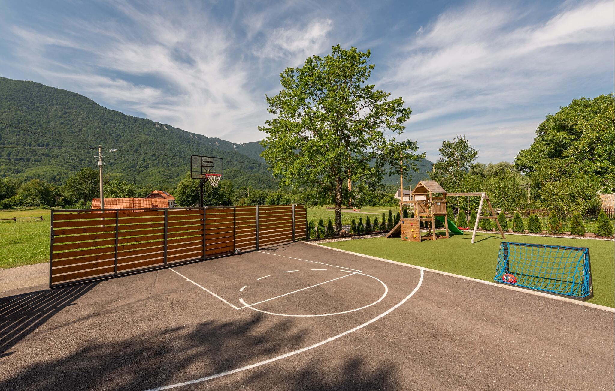 Unterhaltungsmöglichkeiten genießen, oder im Freien mit Wellness- und Sportmöglichkeiten die Seele baumeln lassen. Schauen Sie Ihren Kindern beim Basketballspielen oder auf dem Spielturm zu, während Sie entweder im Whirlpool entspannen oder sich auf der Terrasse sonnen.