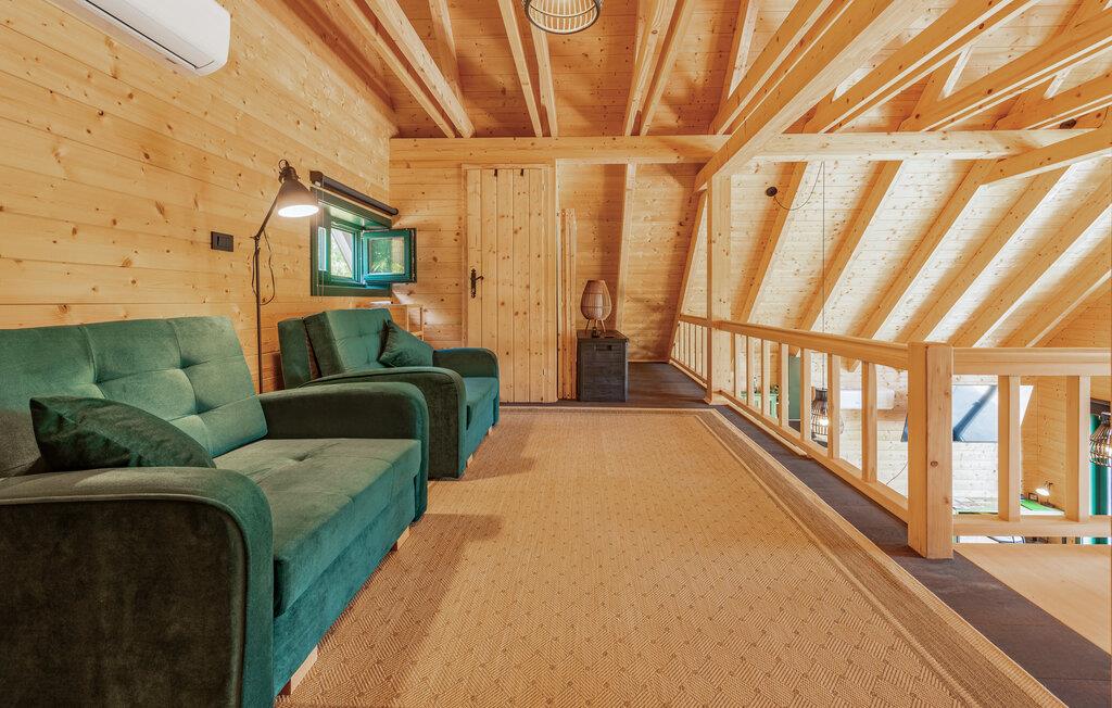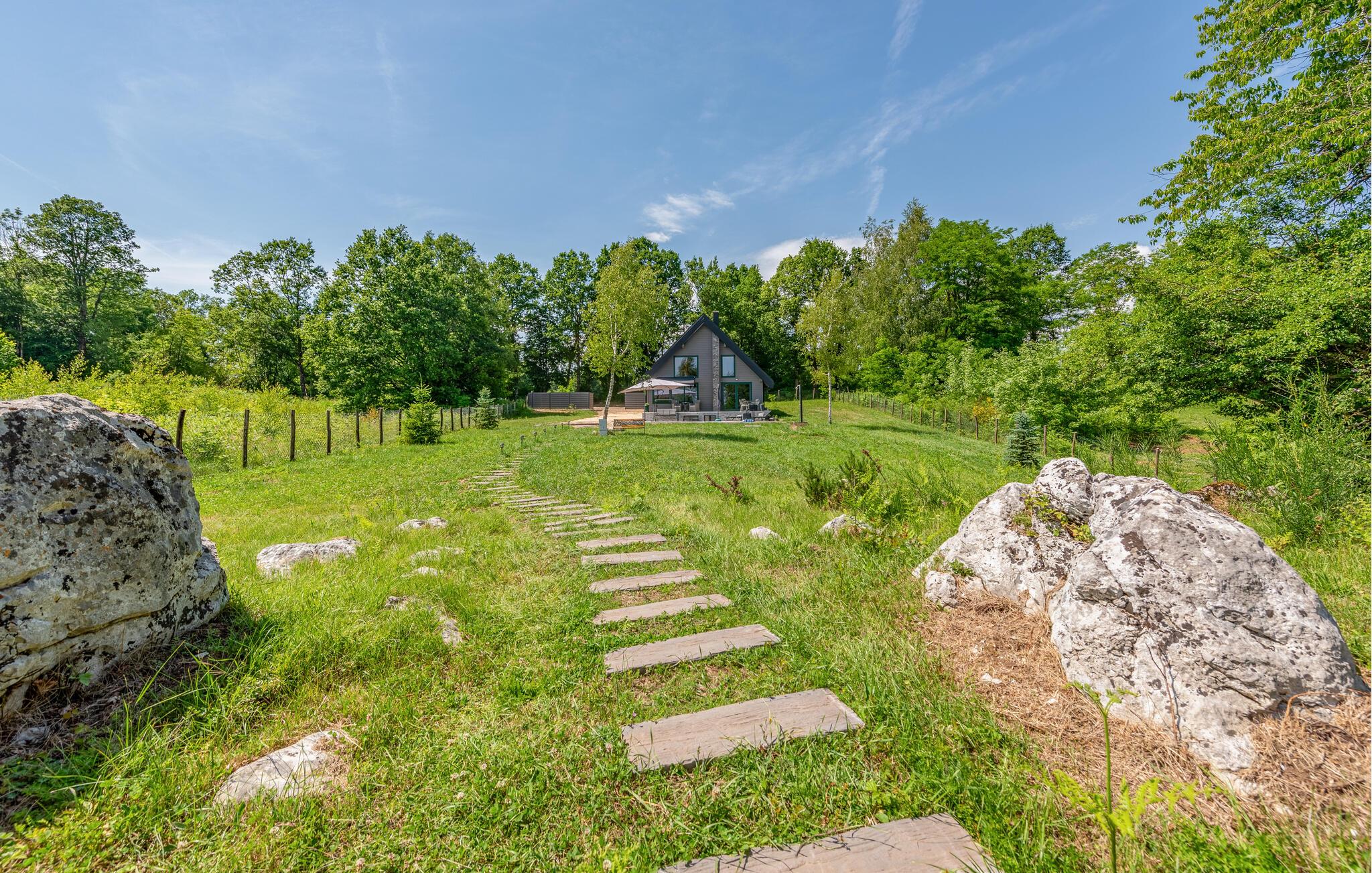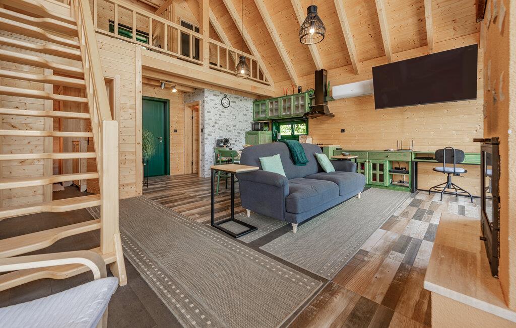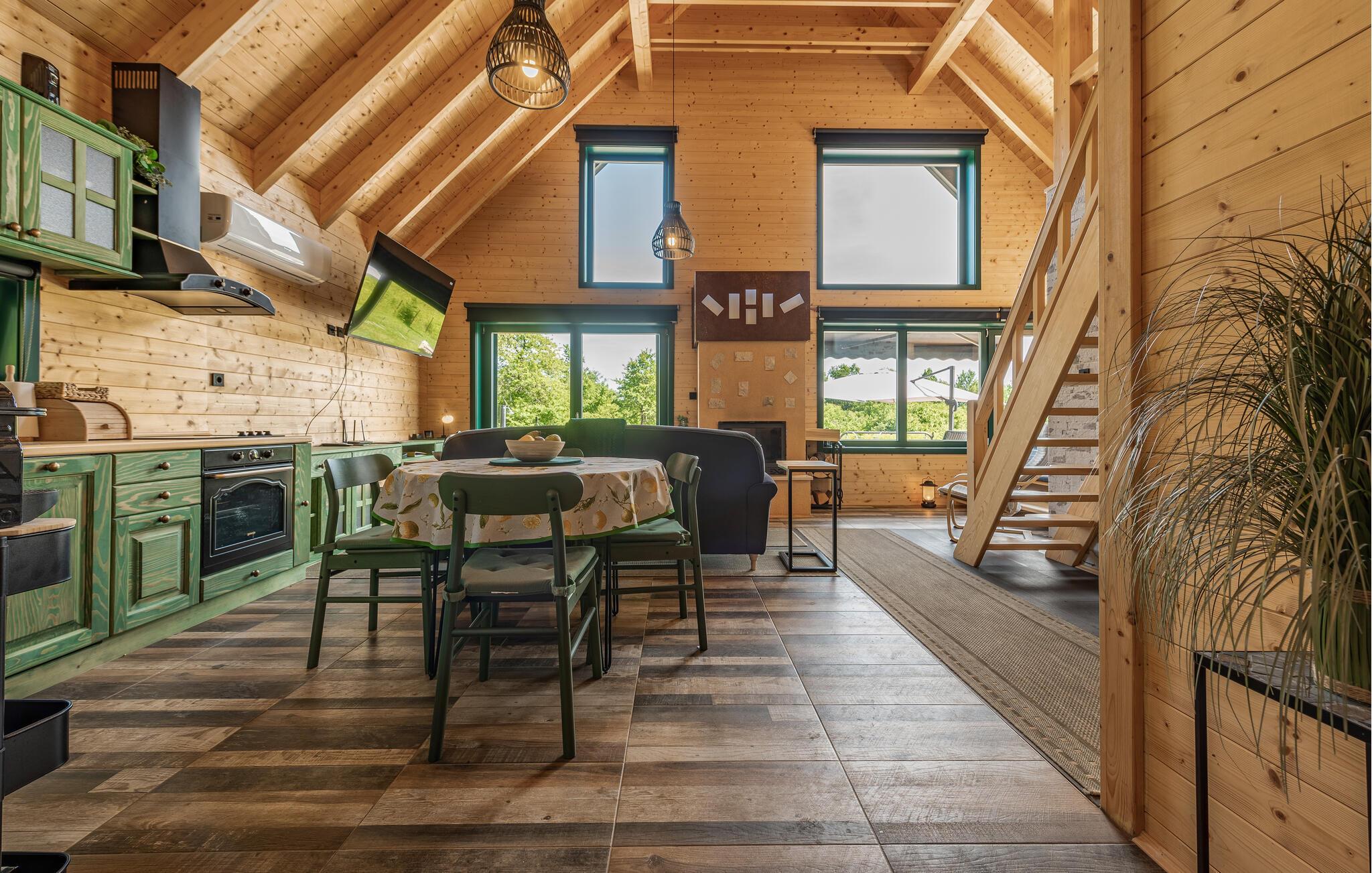 Das moderne Haus empfängt Sie inmitten einer wunderschönen Landschaft, auf die Sie hier eine einzigartige Aussicht genießen, und ist der ideale Ort für eine angenehme Zeit mit Ihren Lieben. Die stilvolle Einrichtung mit schönen Holzelementen macht es Ihnen leicht, hier zu entspannen. Ein absolutes Highlight ist der Whirlpool vor großen Fenstern, durch die Sie den Blick über die Umgebung schweifen lassen können. Machen Sie es sich abends auf den einladenden Sofas am prasselnden Kaminfeuer gemütlich.