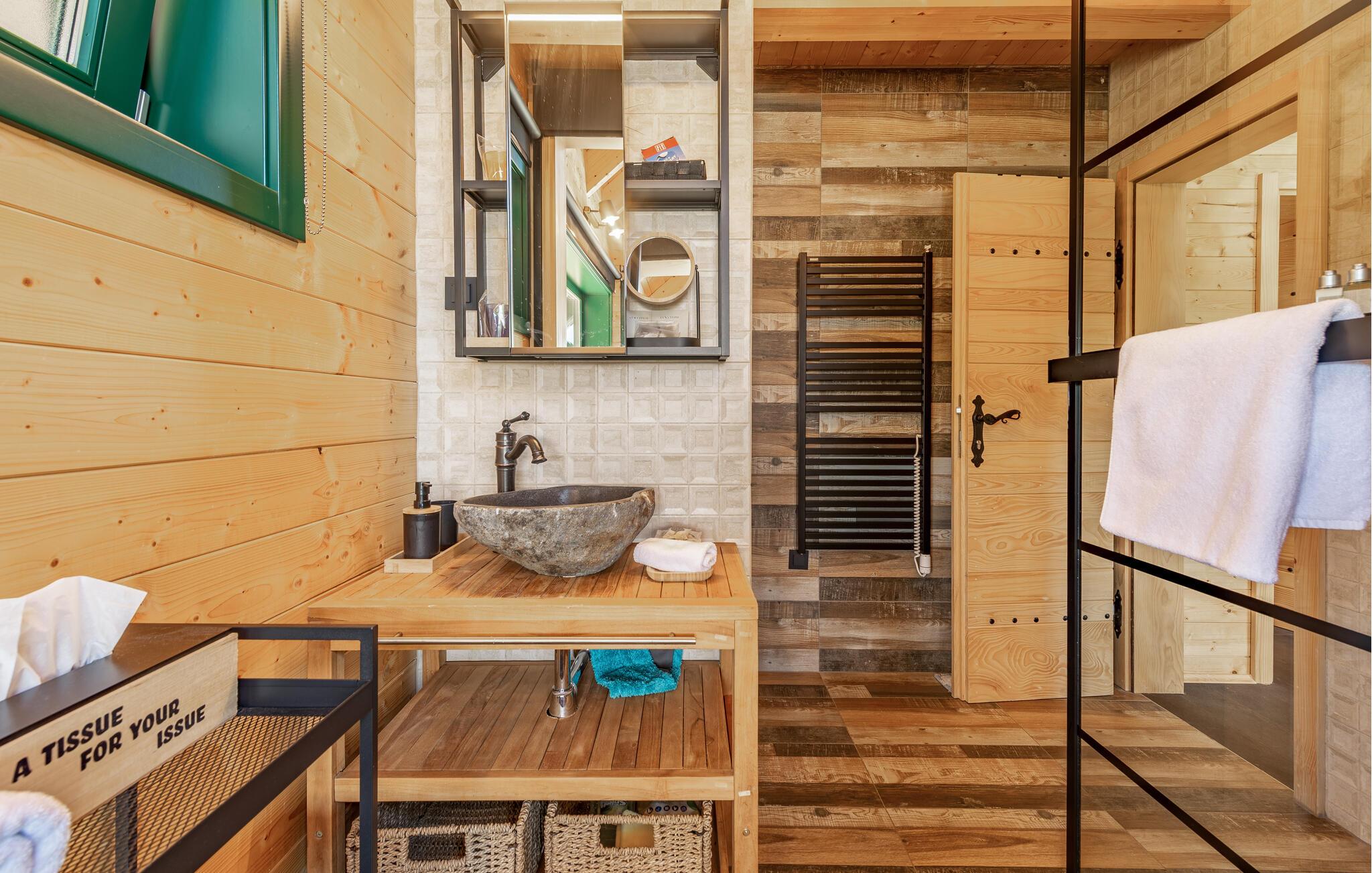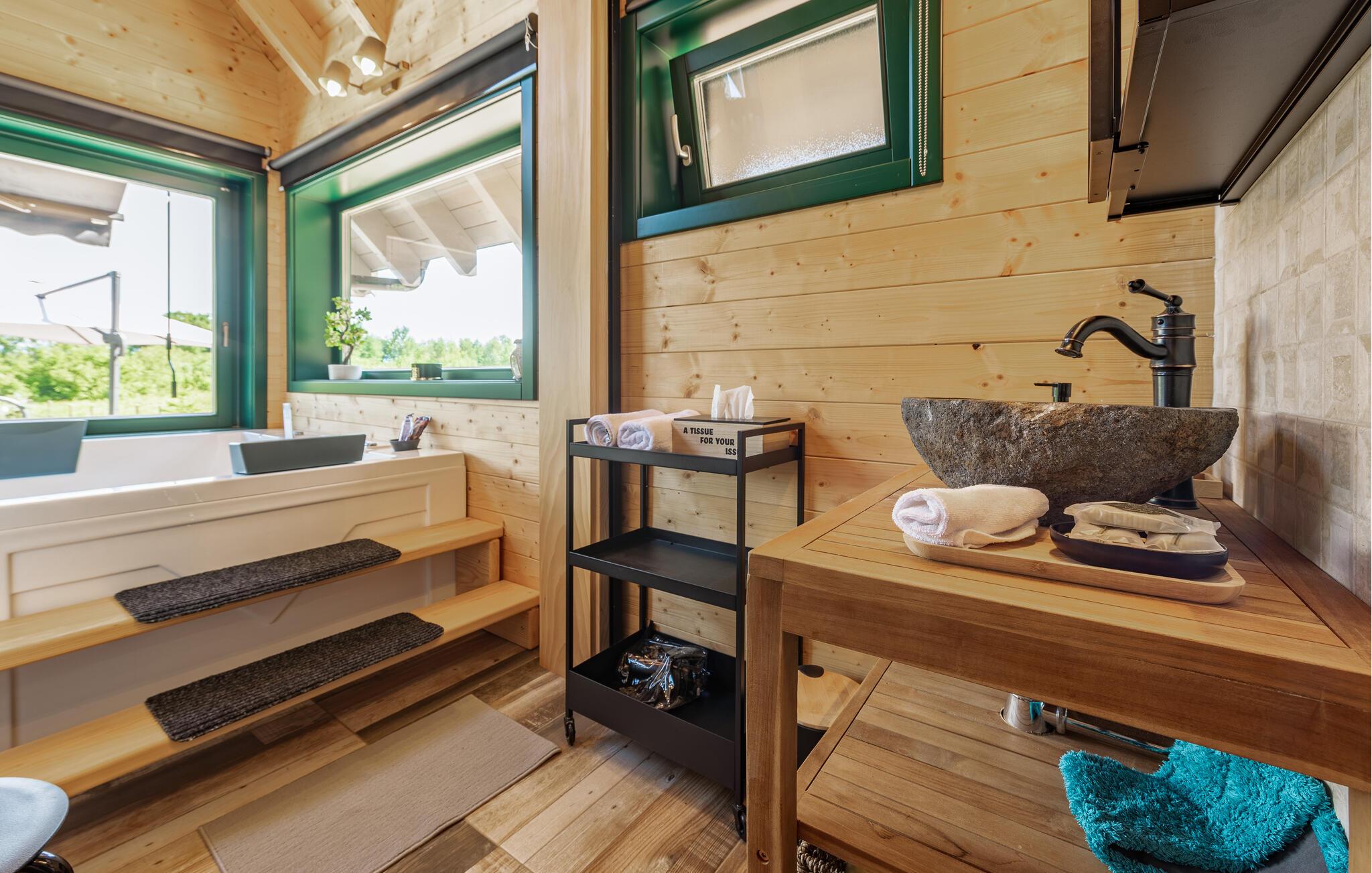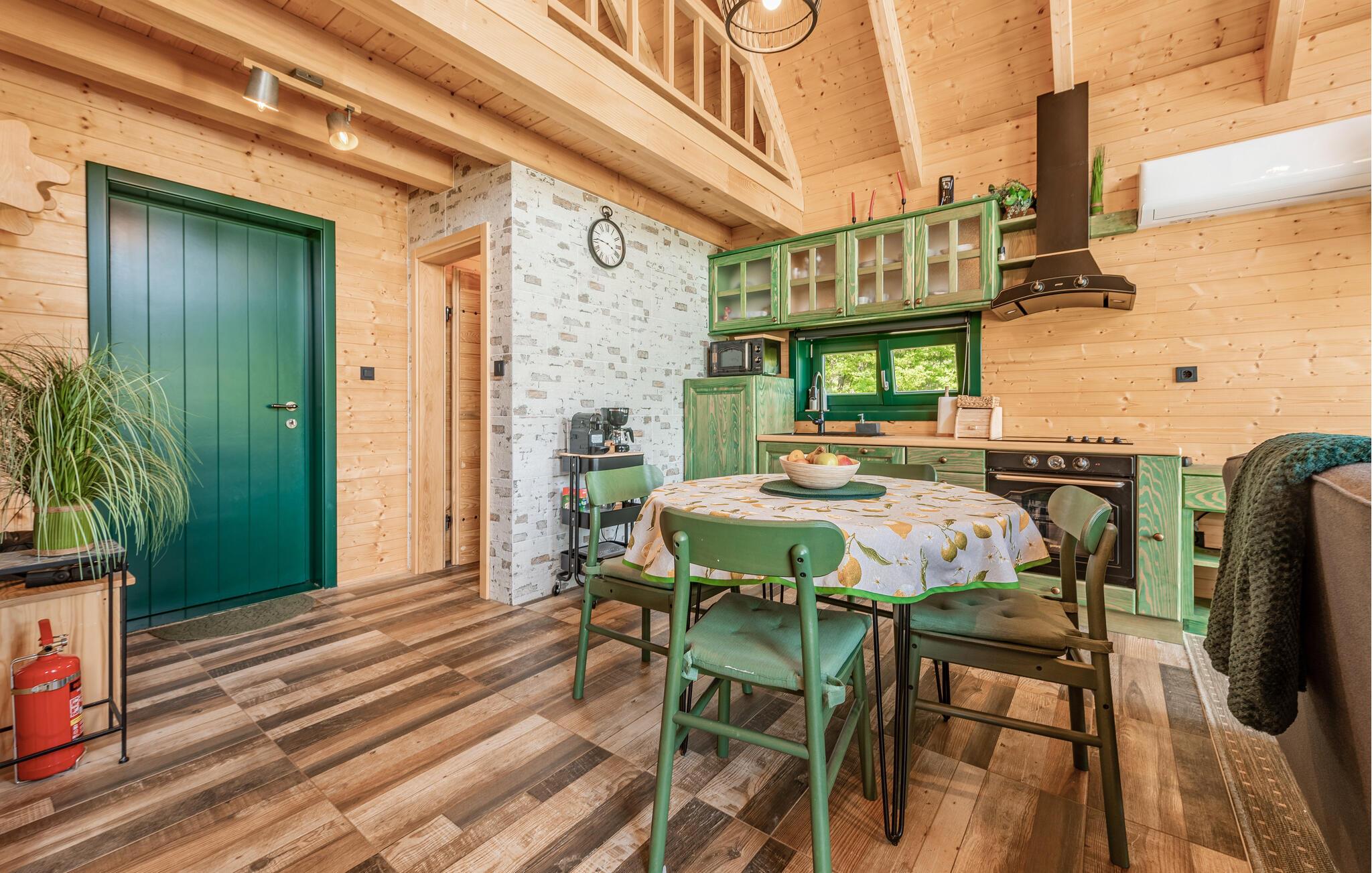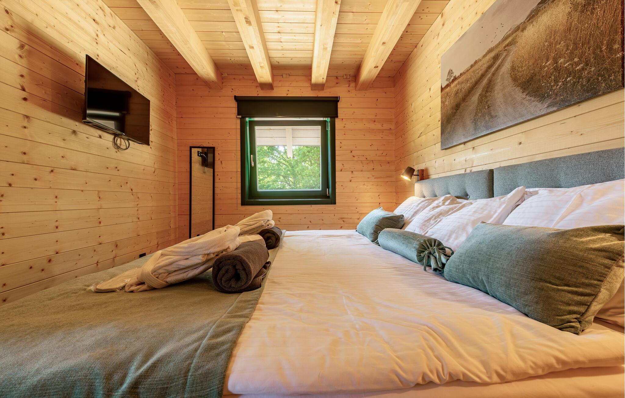 Das moderne Haus empfängt Sie inmitten einer wunderschönen Landschaft, auf die Sie hier eine einzigartige Aussicht genießen, und ist der ideale Ort für eine angenehme Zeit mit Ihren Lieben. Die stilvolle Einrichtung mit schönen Holzelementen macht es Ihnen leicht, hier zu entspannen. Ein absolutes Highlight ist der Whirlpool vor großen Fenstern, durch die Sie den Blick über die Umgebung schweifen lassen können. Machen Sie es sich abends auf den einladenden Sofas am prasselnden Kaminfeuer gemütlich.