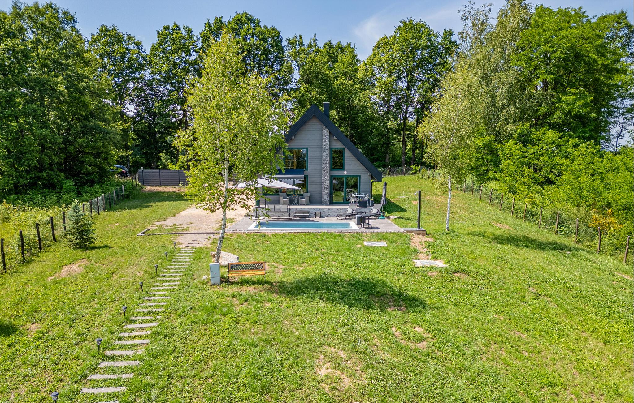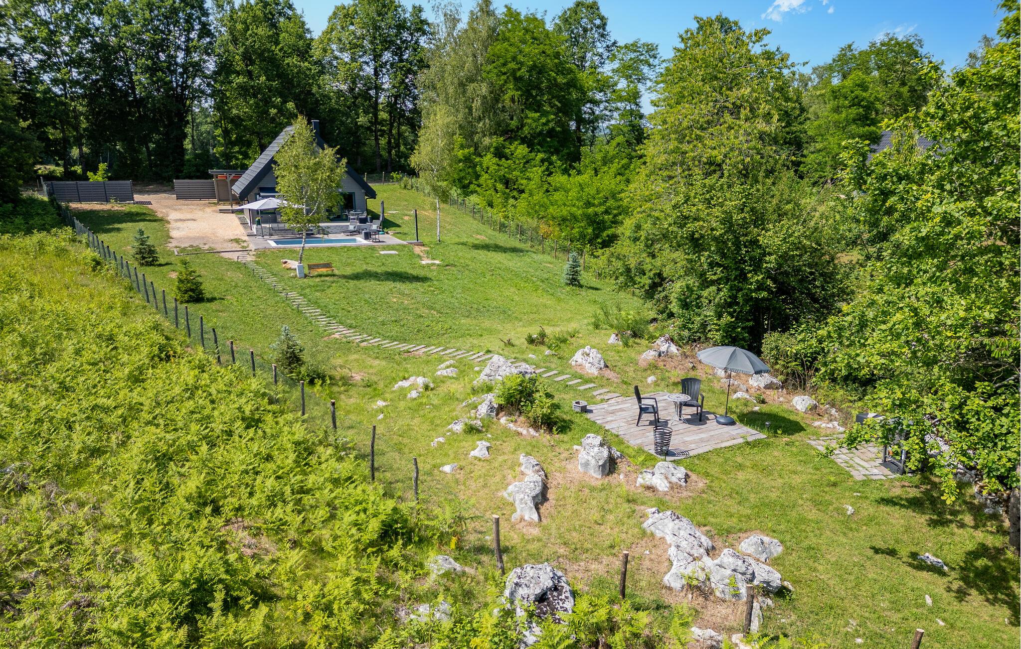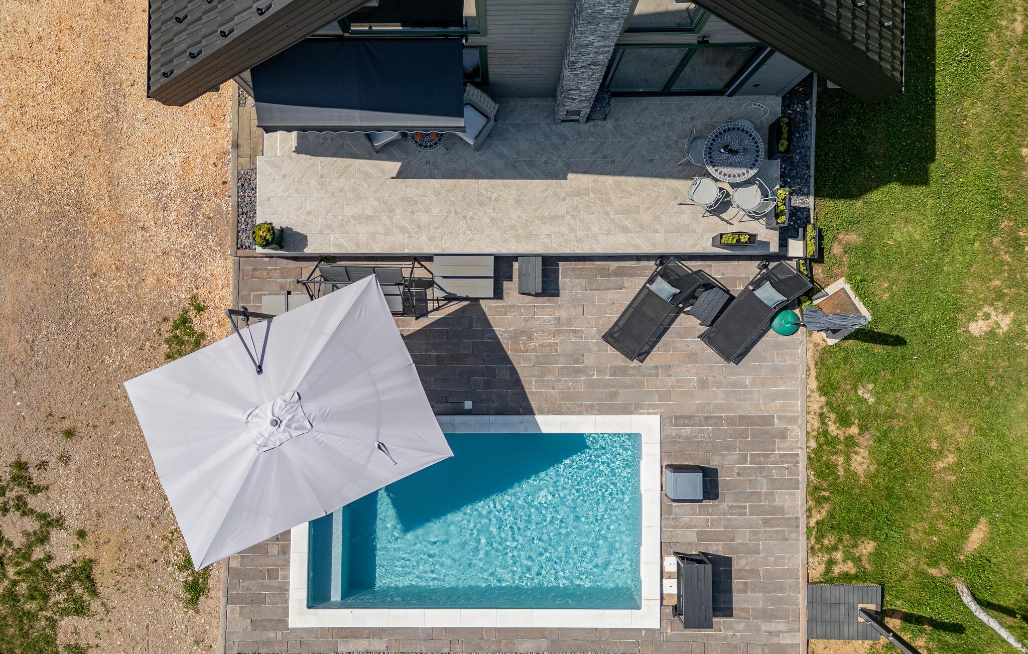 Lassen Sie auch im Freien umgeben von der idyllischen Landschaft die Seele baumeln. Genießen Sie die Mahlzeiten auf der Terrasse, erfrischen Sie sich im Pool, später können Sie Leckereien vom Grill für die ganze Familie servieren oder im Whirlpool unter freiem Himmel entspannen.