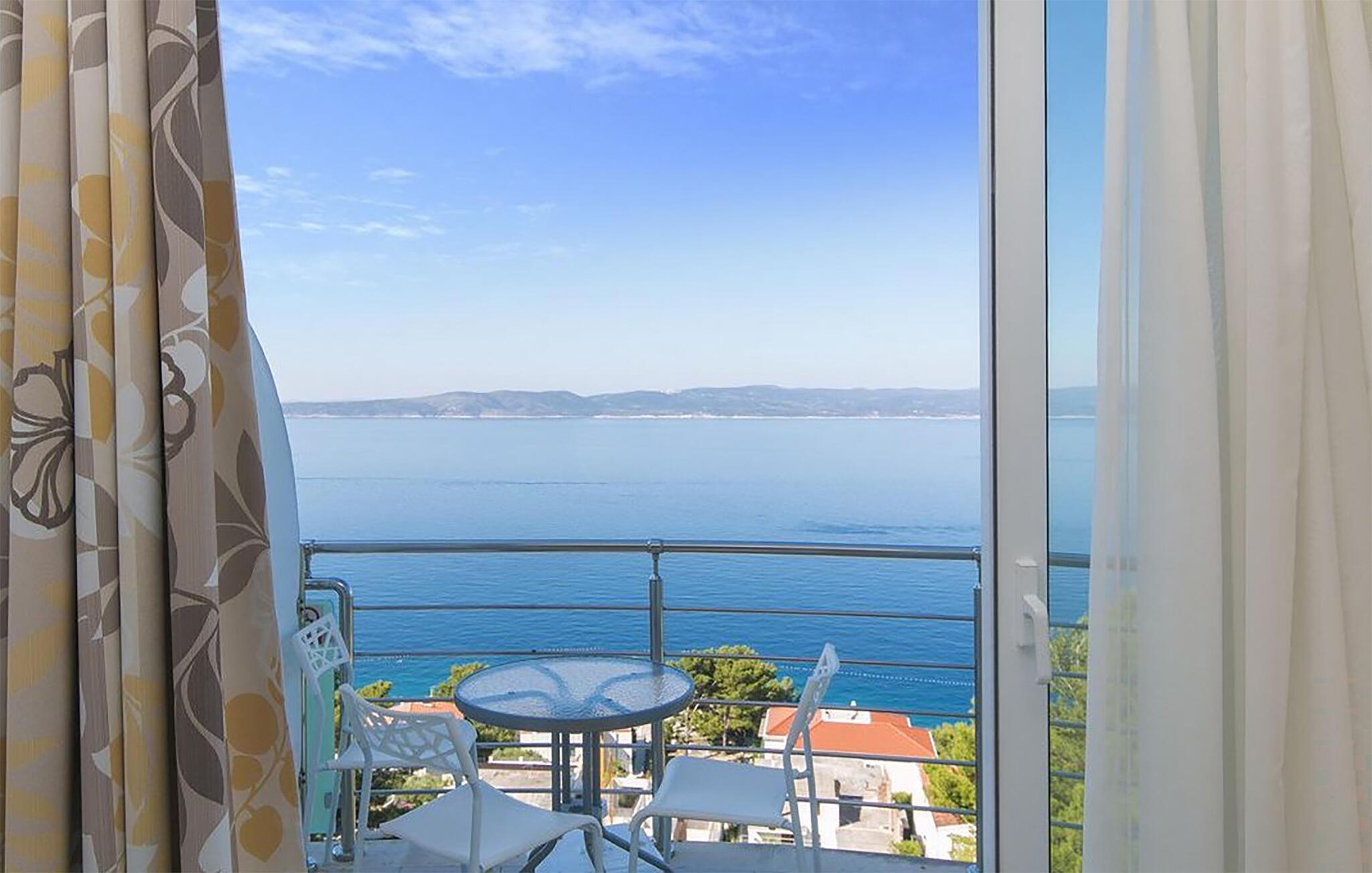 Treten Sie hinaus auf den großzügigen Balkon und lassen Sie Ihren Blick über die Küste, die vorgelagerten Inseln und das tiefblaue Wasser schweifen. Nehmen Sie am Balkontisch Platz und genießen Sie hier Ihren Morgenkaffee. Beobachten Sie die vorbeiziehenden Boote und erleben Sie stimmungsvolle Sonnenuntergänge über der Adria.