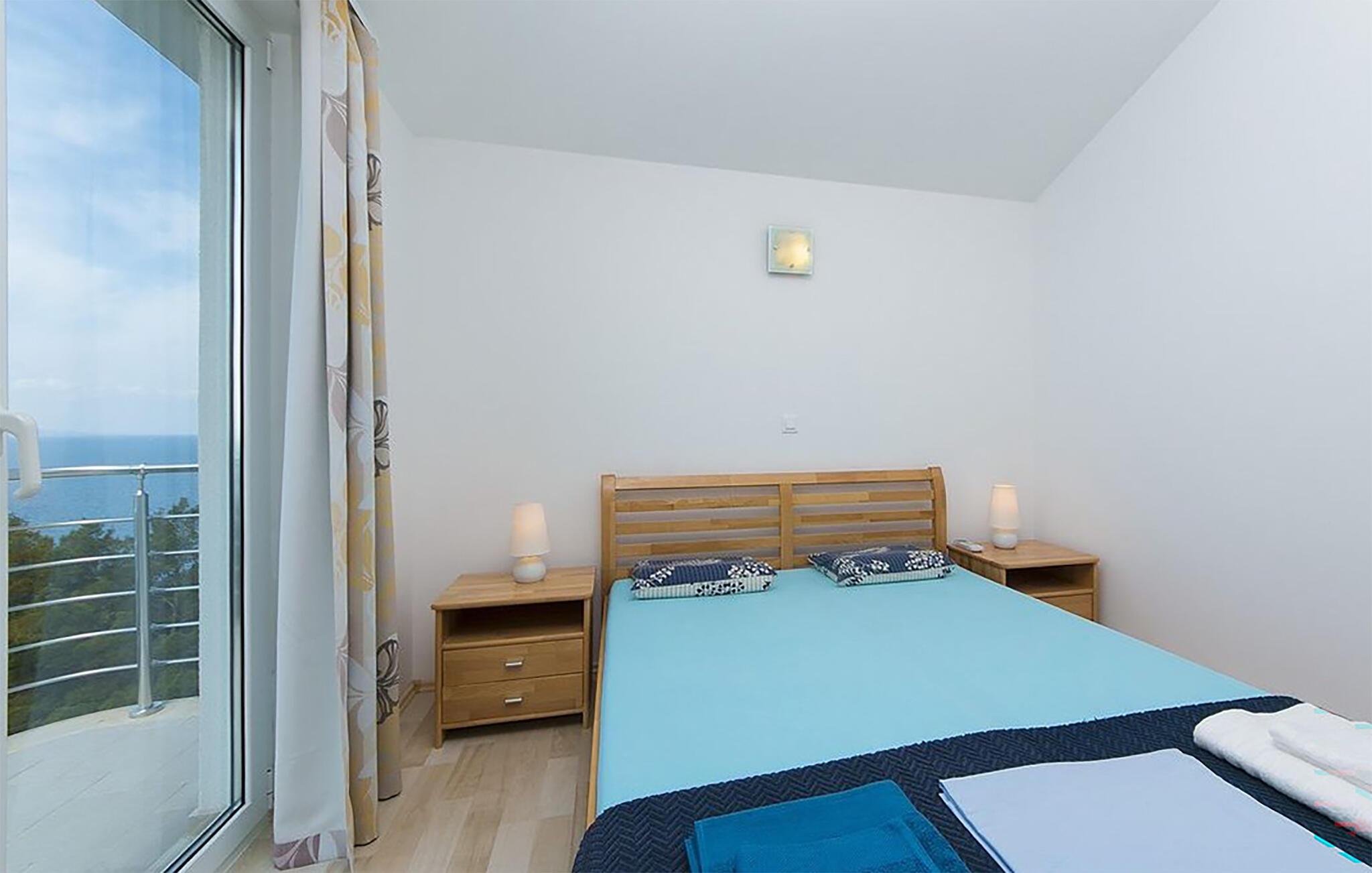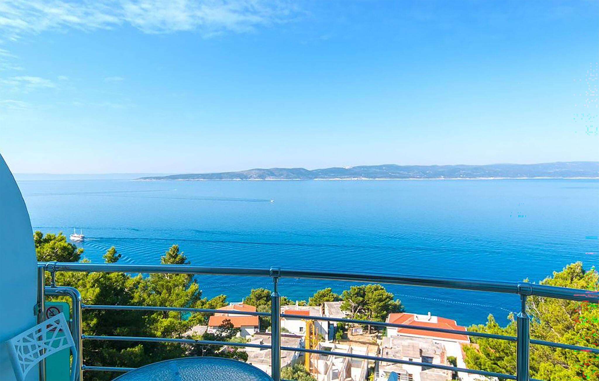 Genießen Sie unvergessliche Urlaubstage in dieser Ferienwohnung mit Panoramablick auf das glitzernde Meer.