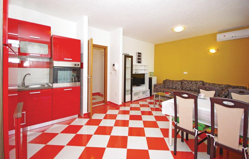 In der beliebten und lebendigen Stadt Makarska erwarten Sie diese schönen Ferienwohnungen. Die Ferienwohnung CDE512 ist sehr komfortabel mit zwei Schlafzimmern, und da sie auf der dritten Etage liegt, haben Sie von der Terrasse einen tollen Panoramablick auf das Meer und die Stadt. Die Ferienwohnungen CDE513 und CDF412 verfügen jeweils über ein Schlafzimmer, während CDF413, CDF414 und CDE728 Studioapartments sind. Die Ferienwohnungen sind gut ausgestattet. In wenigen Minuten zu Fuß erreichen Sie das Stadtzentrum sowie den langen Kiesstrand mit reichen Gastronomie- und Freizeitangeboten.
