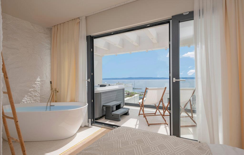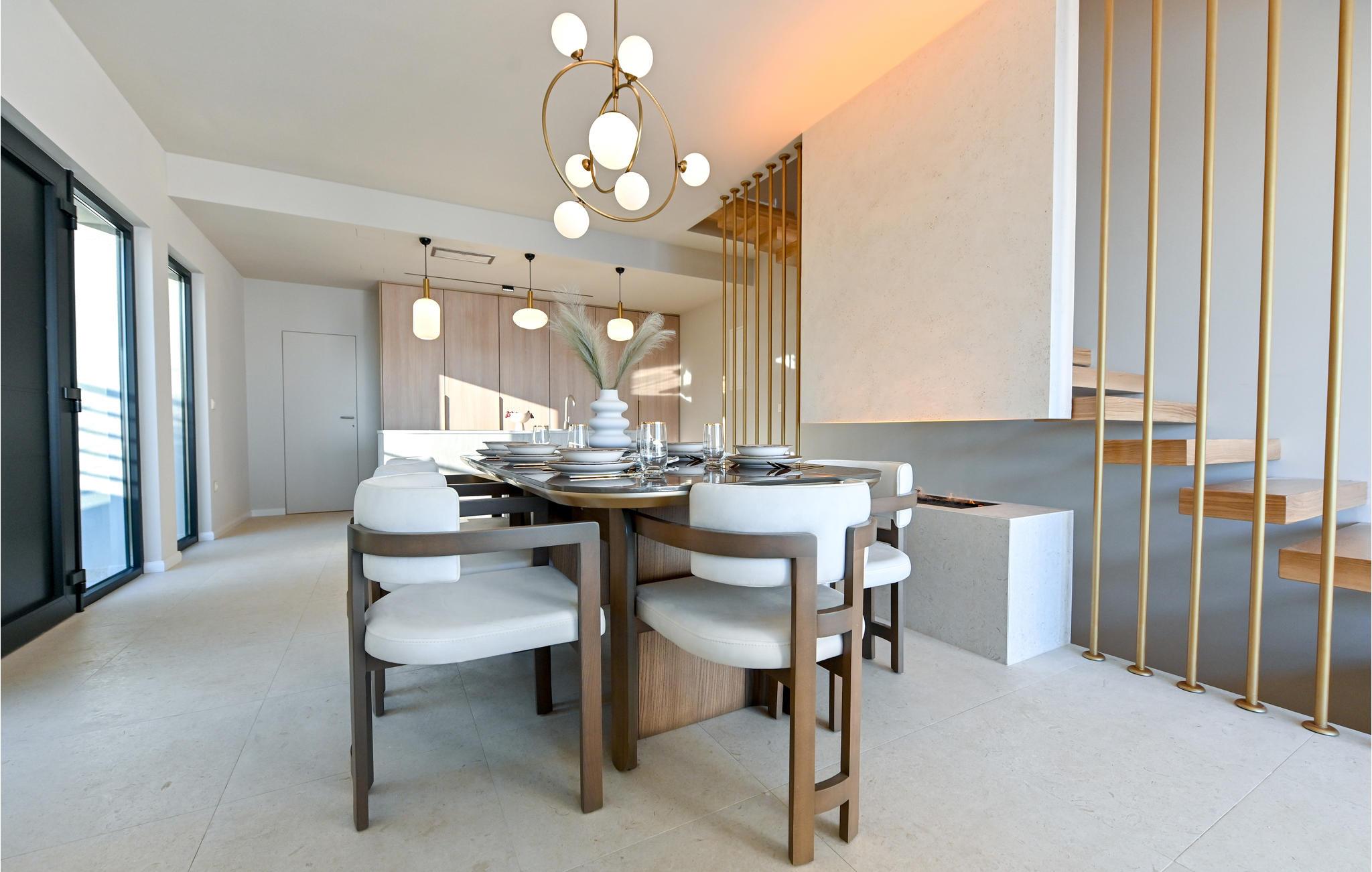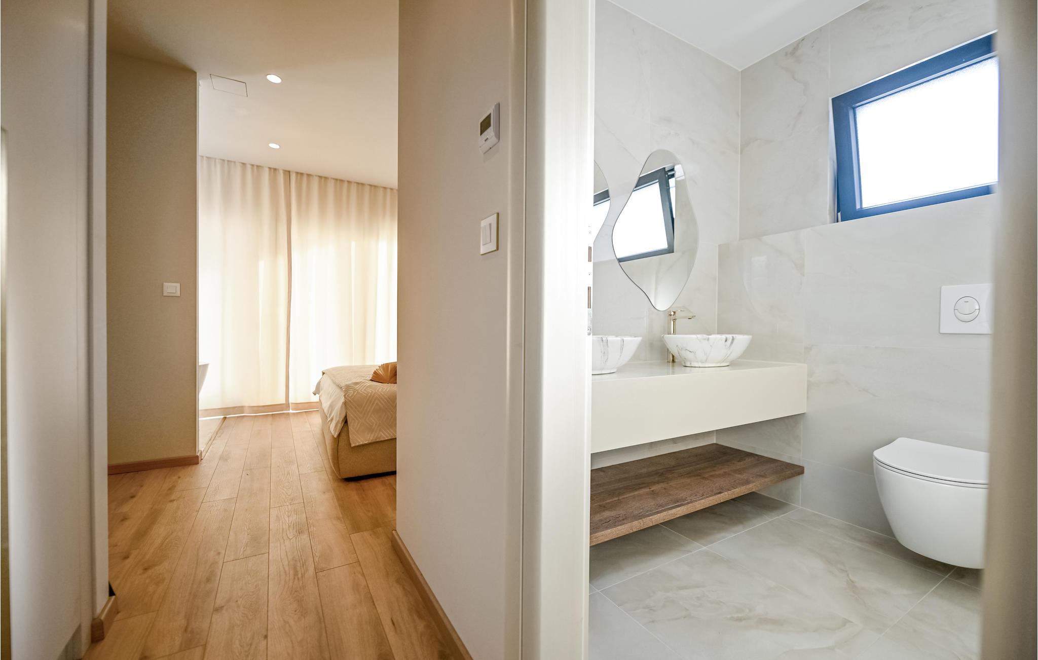 Gönnen Sie sich Luxus, Komfort und schönes Design, das Sie in diesem modernen Doppelhaus empfängt. Dieses Doppelhaus ist ideal für eine Familie oder befreundete Paare, die Ihre Ferientage genießen wollen. Falls Sie eine große Familie sind, kann auch die zweite Doppelhaushälfte buchen und somit doppelten Komfort genießen. Die hohe Qualität der Einrichtung und Möbel lassen Sie wie auf einer Wolke schweben und lassen das Kochen in der voll ausgestatteten Küche zu Erlebnis werden. Genießen Sie die Aussicht auf das Meer vom Balkon oder der Terrasse, ziehen Bahnen im Pool, relaxen im Whirlpool und genießen dieses fantastische Haus.