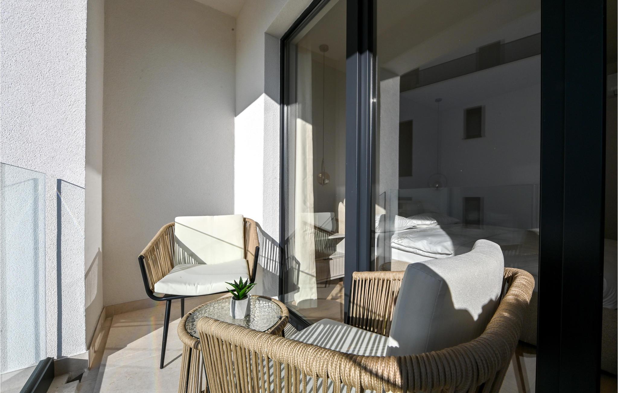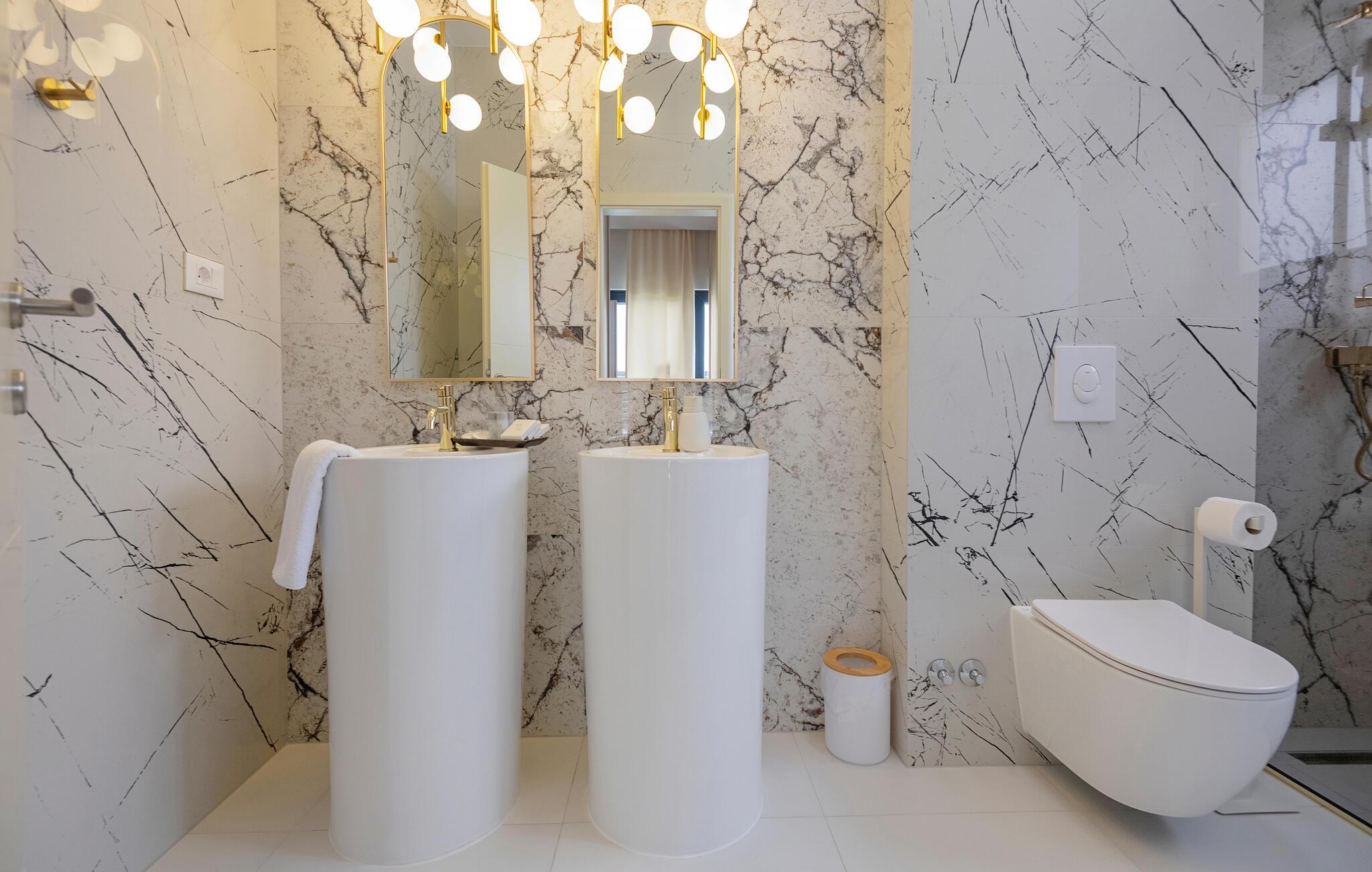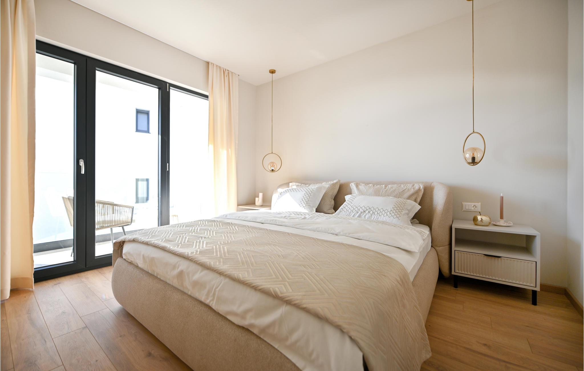 Gönnen Sie sich Luxus, Komfort und schönes Design, das Sie in diesem modernen Doppelhaus empfängt. Dieses Doppelhaus ist ideal für eine Familie oder befreundete Paare, die Ihre Ferientage genießen wollen. Falls Sie eine große Familie sind, kann auch die zweite Doppelhaushälfte buchen und somit doppelten Komfort genießen. Die hohe Qualität der Einrichtung und Möbel lassen Sie wie auf einer Wolke schweben und lassen das Kochen in der voll ausgestatteten Küche zu Erlebnis werden. Genießen Sie die Aussicht auf das Meer vom Balkon oder der Terrasse, ziehen Bahnen im Pool, relaxen im Whirlpool und genießen dieses fantastische Haus.