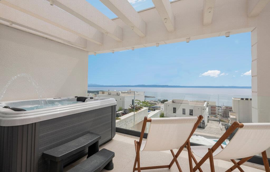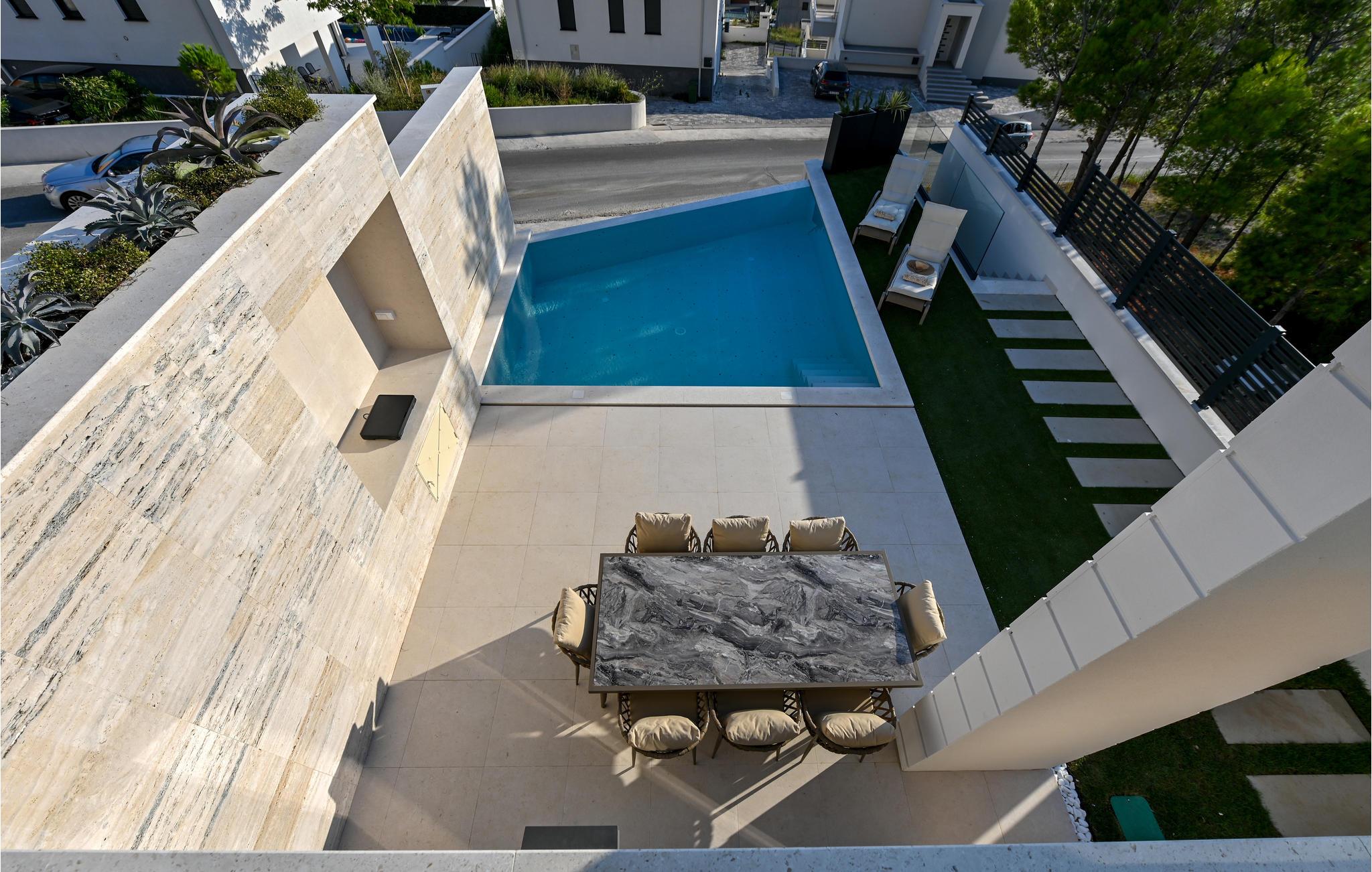 Mit dem Sveti Jure Gebirge im Rücken und dem Meer vor der Nase empfängt Sie dieses moderne und großartige Ferienhaus mit Pool.