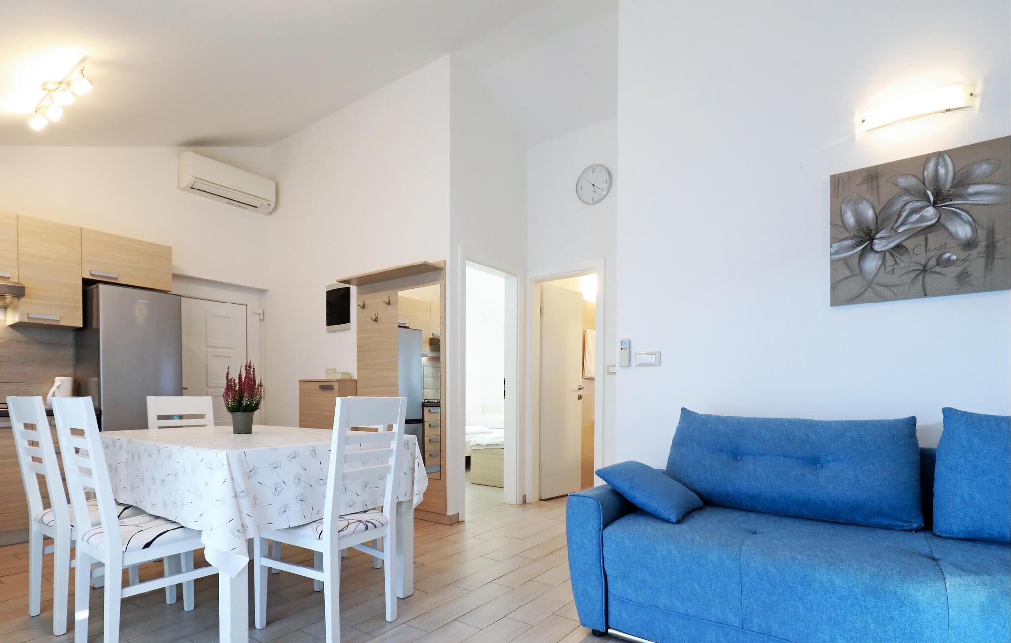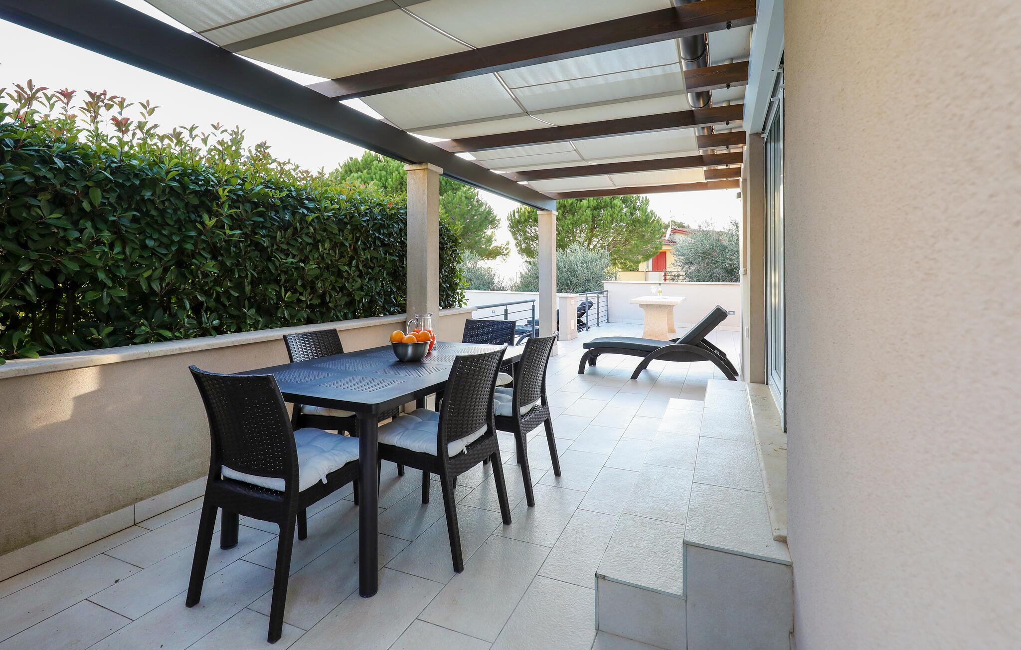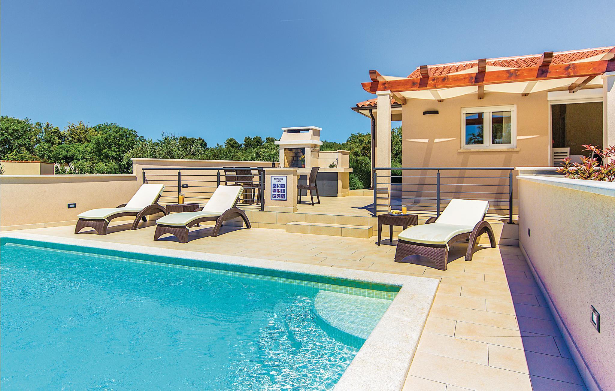 Dieses schöne Ferienhaus auf einem kleinen Hügel in Pomer ist ideal für Familien mit Kindern und Naturliebhaber, die ihren Urlaub weg von Stadtgetümmel und nur wenige Minuten vom Strand entfernt verbringen wollen. Die Innenräume sind sehr komfortabel und gut ausgestattet. Verbringen Sie den Abend bei einem Glas Wein auf der Terrasse. Erfrischung finden Sie im Pool, der den Hof dominiert. Besuchen Sie das Zentrum dieses Fischerdorfes oder Medulin, das mit vielen Annehmlichkeiten lockt. Das naheliegende Pula wird Sie mit seinem Amphitheater, vielen historischen Stätten, Veranstaltungen und Attraktionen verzaubern.
