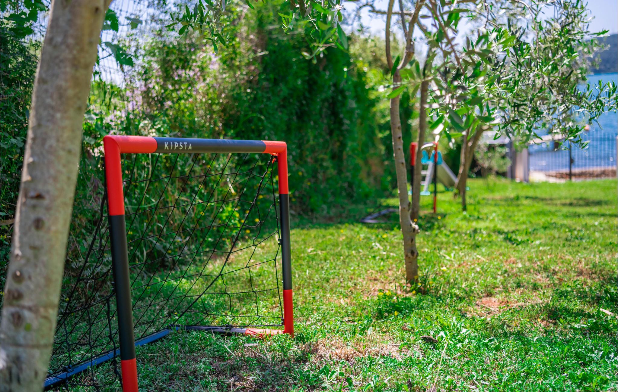 Entspannen Sie am privaten Pool, der an heißen Tagen willkommene Erfrischung bietet. Auf dem großen Grundstück am Wasser ist viel Platz zum Spielen, Sie finden hier Fußballtore und Badmintonschläger vor.