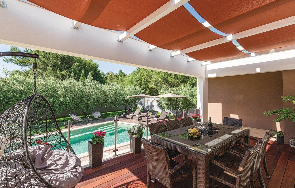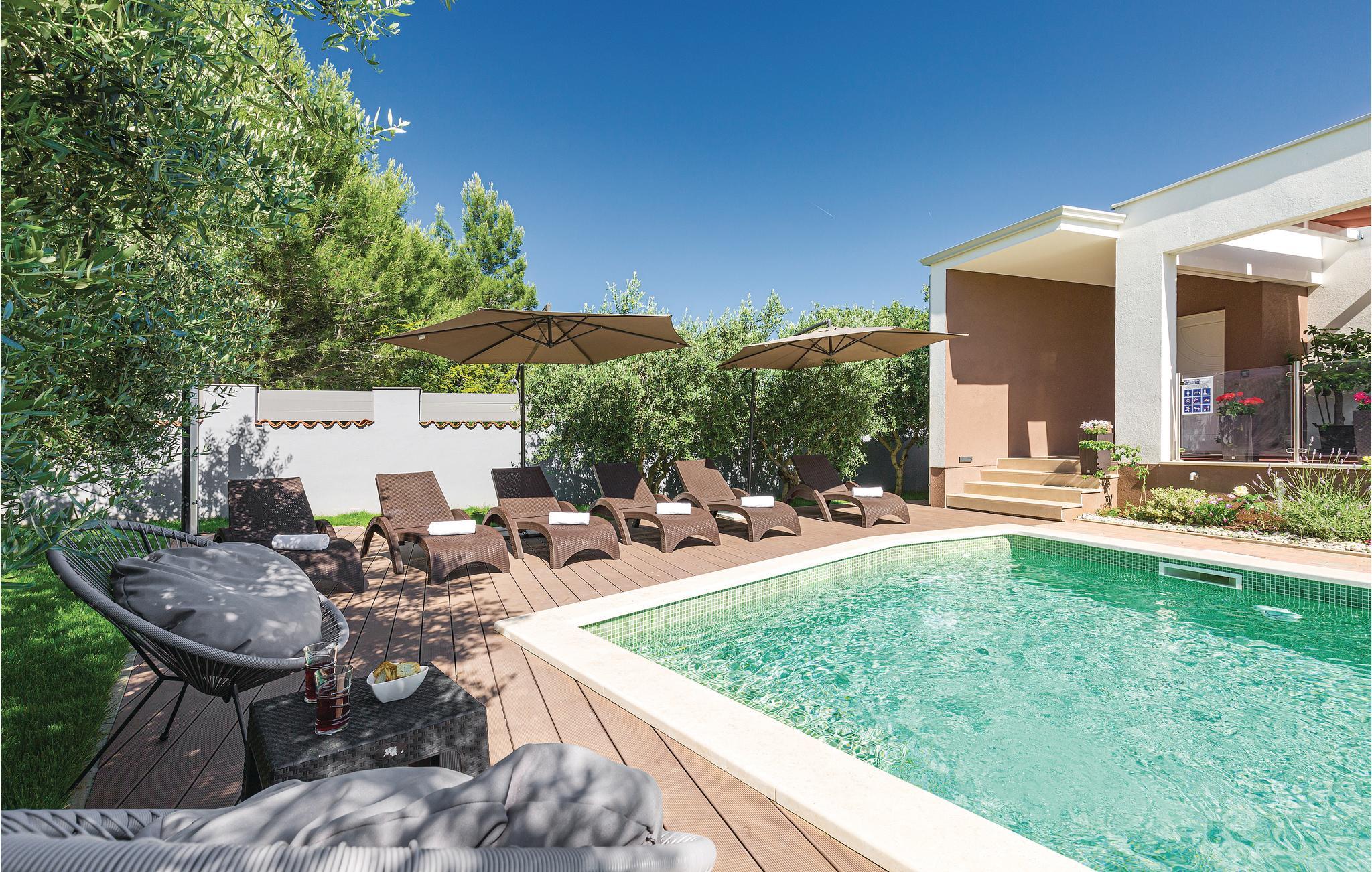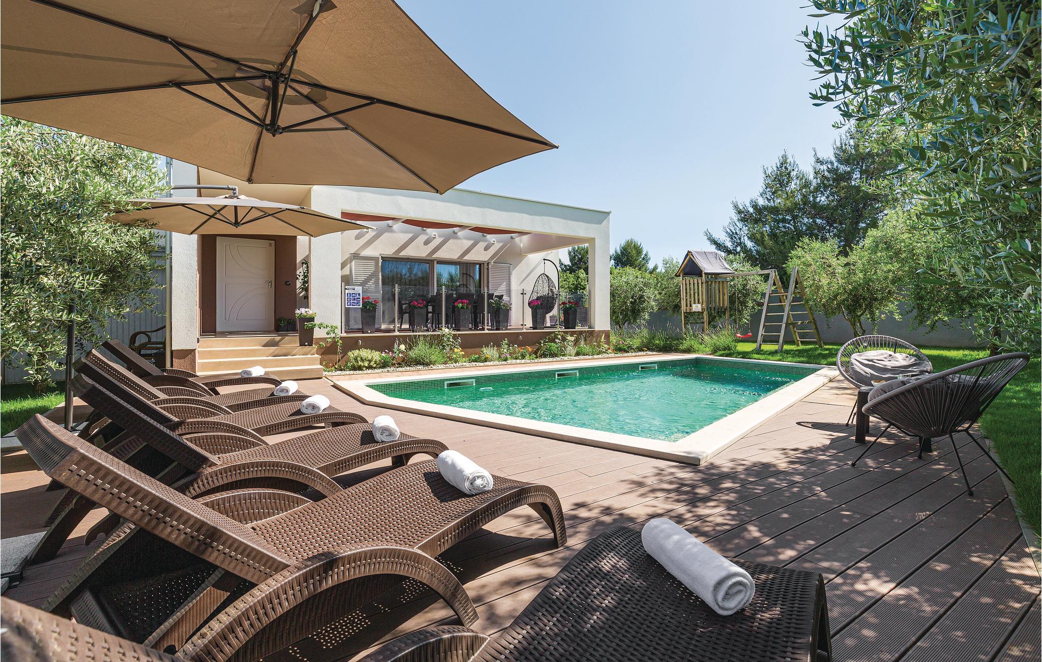 Wunderbares Ferienhaus mit Pool in natürlicher Umgebung, nahe der beliebten Urlaubsstadt Medulin. Abgesehen von den stilvoll und komfortabel eingerichteten Innenräumen wird Entspannung auch auf dem gepflegten Außenbereich mit Pool geboten. Im Untergeschoss steht Ihnen eine geräumige Taverne mit Küche und Kamin zur Verfügung. Medulin selbst und seine Umgebung bieten viele Möglichkeiten zur Erholung und Unterhaltung. Deshalb ist die Stadt oft Reiseziel von Profisportlern, die hier ihre Fähigkeiten und Stärke beim Fußball, Beachvolleyball, Reiten, Tennis und zahlreichen Wassersportarten trainieren. Die lange Küste und der Archipel von kleinen Inseln sind ideal, um Ihren Lieblingsstrand zu erkunden. Abends haben Sie eine große Auswahl an Bars, Restaurants und Tavernen, aber auch Clubs und interessante Veranstaltungen.