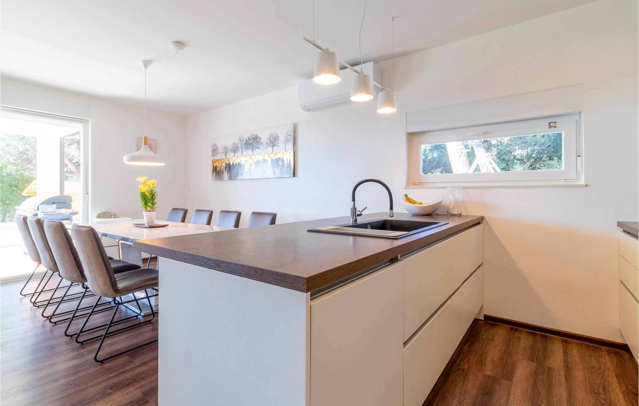 Dieses hübsche Ferienhaus eignet sich perfekt auch für größere Gruppen. Hier wird jeder Gast ruhige Ecken zur Entspannung, aber auch Platz für ein nettes Beisammensein finden. Es ist hell und freundlich eingerichtet aber besticht besonders durch seinen schönen Außenbereich. In und an Ihrem Pool werden Sie viele wunderbare Stunden verbringen. Entspannen Sie auf einer der Sonnenliegen, während die Kinder im Pool planschen oder in dem großen Garten spielen. Auf der tollen Terrasse können Sie viele gemeinsame Mahlzeiten zu sich nehmen oder den Sonnenuntergang bei einem Glas Wein genießen. Vom Meer sind Sie nur wenige hundert Meter entfernt. Verbringen Sie hier wudervolle Urlaubstage im wundervollen Wetter Istriens.