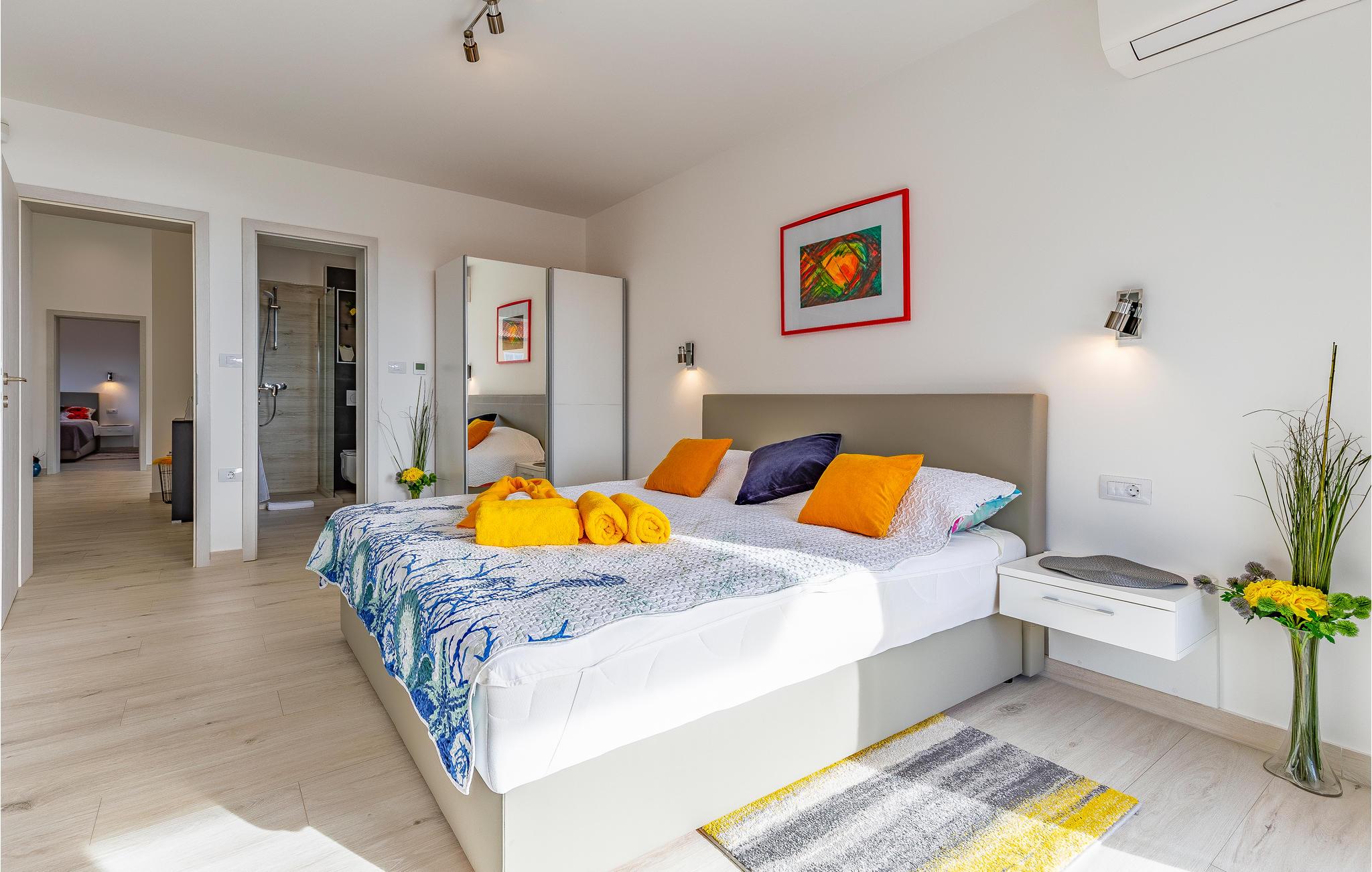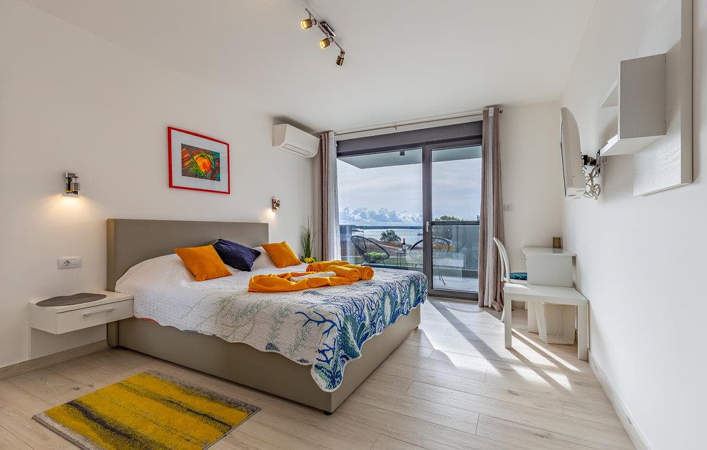 Dieses geräumige Ferienhaus mit Swimmingpool und Meerblick empfängt Sie an der Bucht von Pomer.