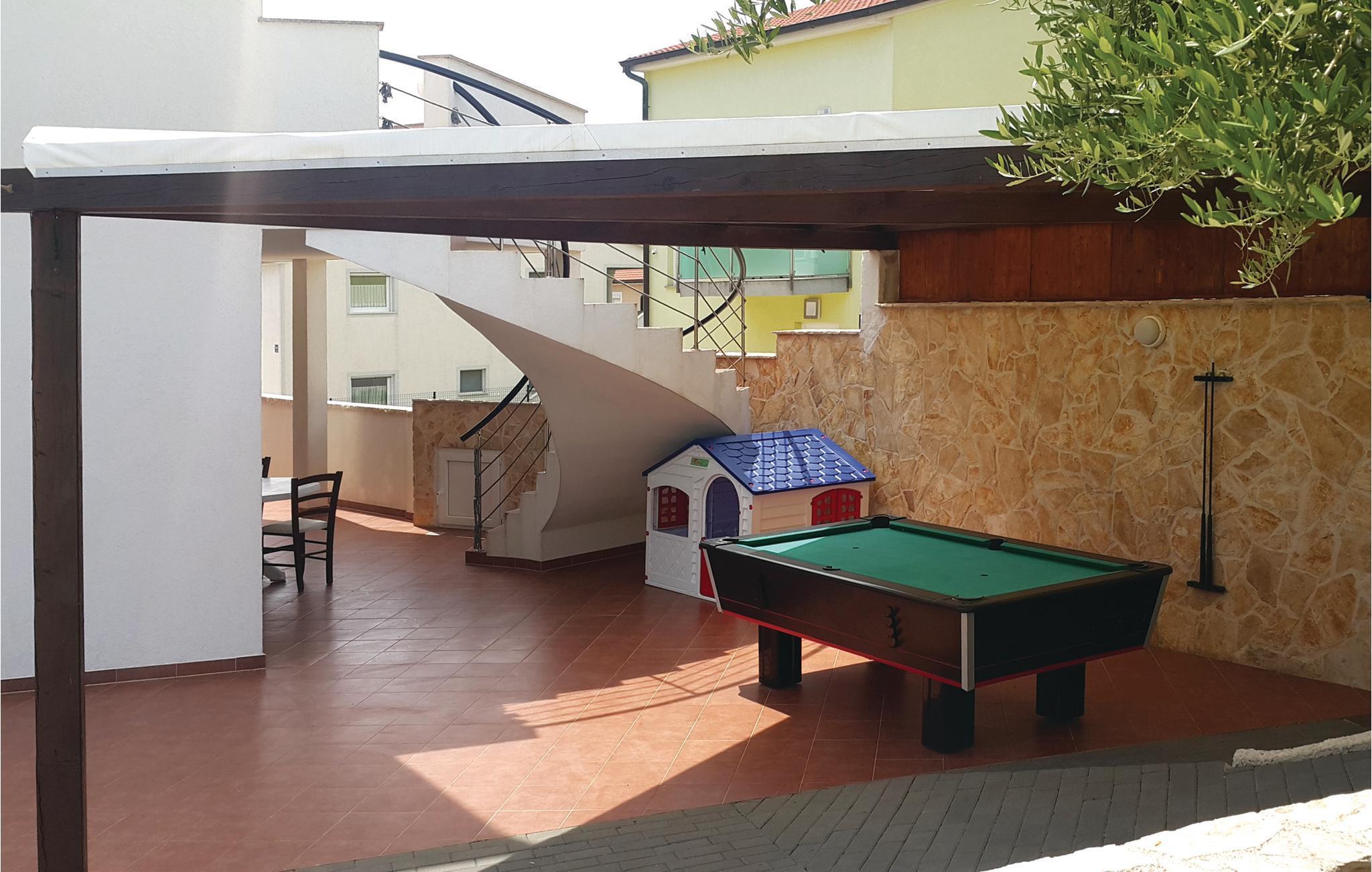 Verbringen Sie Ihren Urlaub in diesem schönen Ferienhaus mit herrlichem Swimmingpool. Es besteht aus drei komfortablen Wohneinheiten. Im Erdgeschoß sind zwei Apartments mit getrenntem Eingang und großer überdachter Terrasse davor. Die obere Wohneinheit, die Sie über eine Außentreppe erreichen, besteht aus zwei Etagen mit Innentreppen und Ausgang zu drei offenen Terrassen bzw. Balkonen, wobei sich eine davon auf dem Dach befindet und Ihnen einen grandiosen Ausblick auf das Meer beschert. Genießen Sie das komplett umzäunte Grundstück mit Parkplatz und Außengrill, sowie zwei WCs am Pool. Für die „Kleinsten“ gibt es auch eine Schaukel. Diese Unterkunft liegt in Meeres- und Strandnähe und wird Ihren Anforderungen sicherlich entsprechen.