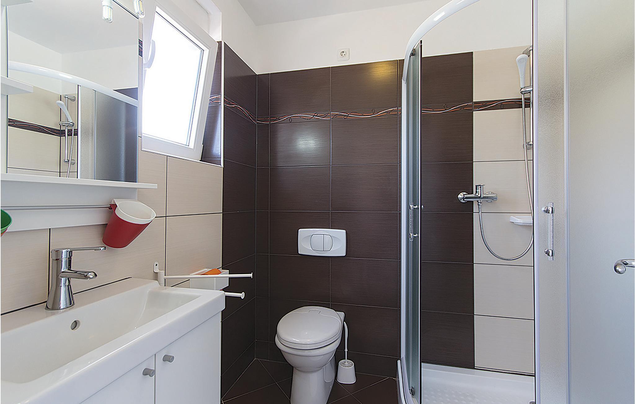Badezimmer (nr. 2) - WC. Warmes und kaltes Wasser. Dusche