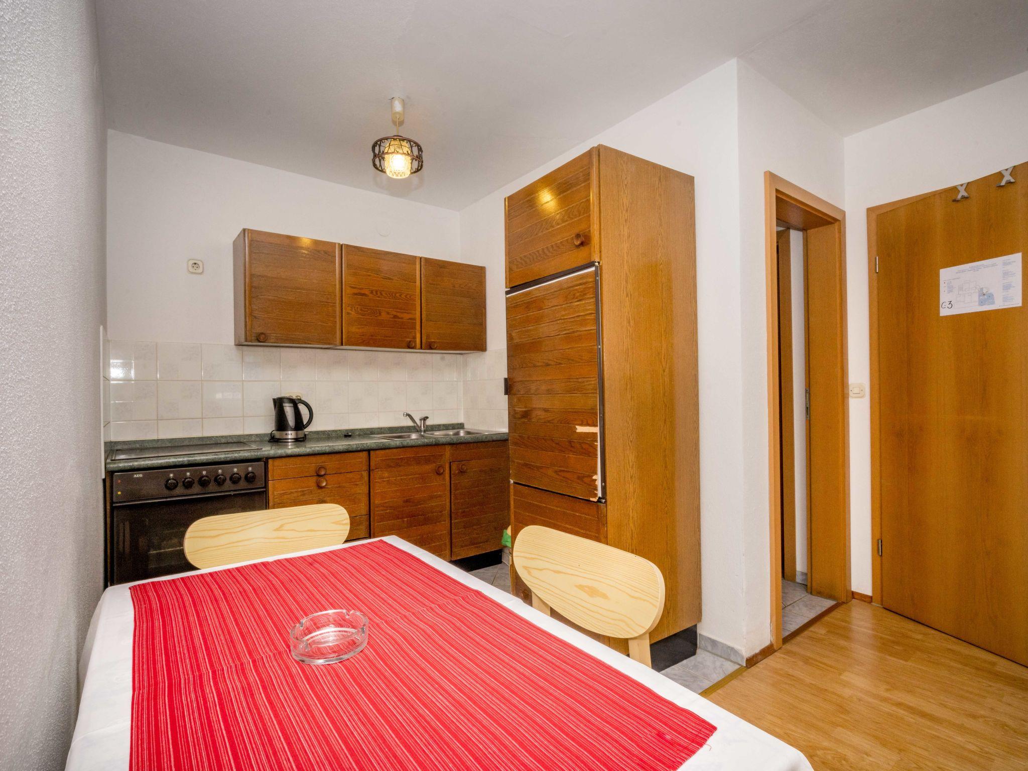 2-Zimmer-Wohnung 40 m2 im 1. Stock, Südlage. Objekt geeignet für 2 Erwachsene + 2 Kinder. Wohn-/Esszimmer 27 m2 mit 1 Doppeldiwanbett, Sat-TV und Klimaanlage. Ausgang zur Terrasse. 1 Zimmer mit 1 franz. Bett (160 cm, Länge 200 cm). Offene Küche (Backofen, 4 Glaskeramikplatten). Dusche/WC. Warmluftheizung. Terrasse 5 m2, überdacht. Terrassenmöbel.