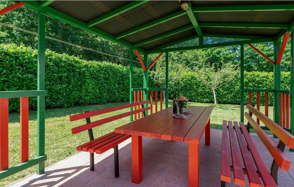 Das Haus liegt auf umzäuntem Grundstück von 2000 qm wo den Gästen ein Pool von 24 qm, überdachte Terrasse mit Esstisch, Grillkamin, Kinderspielplatz mit Schaukel und Rutsche, Tischtennistafel, Badminton-/Volleyballnetz und mehrere Parkplätze zur Verfügung stehen.