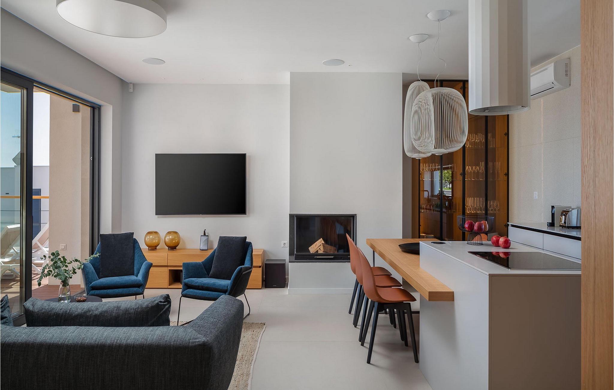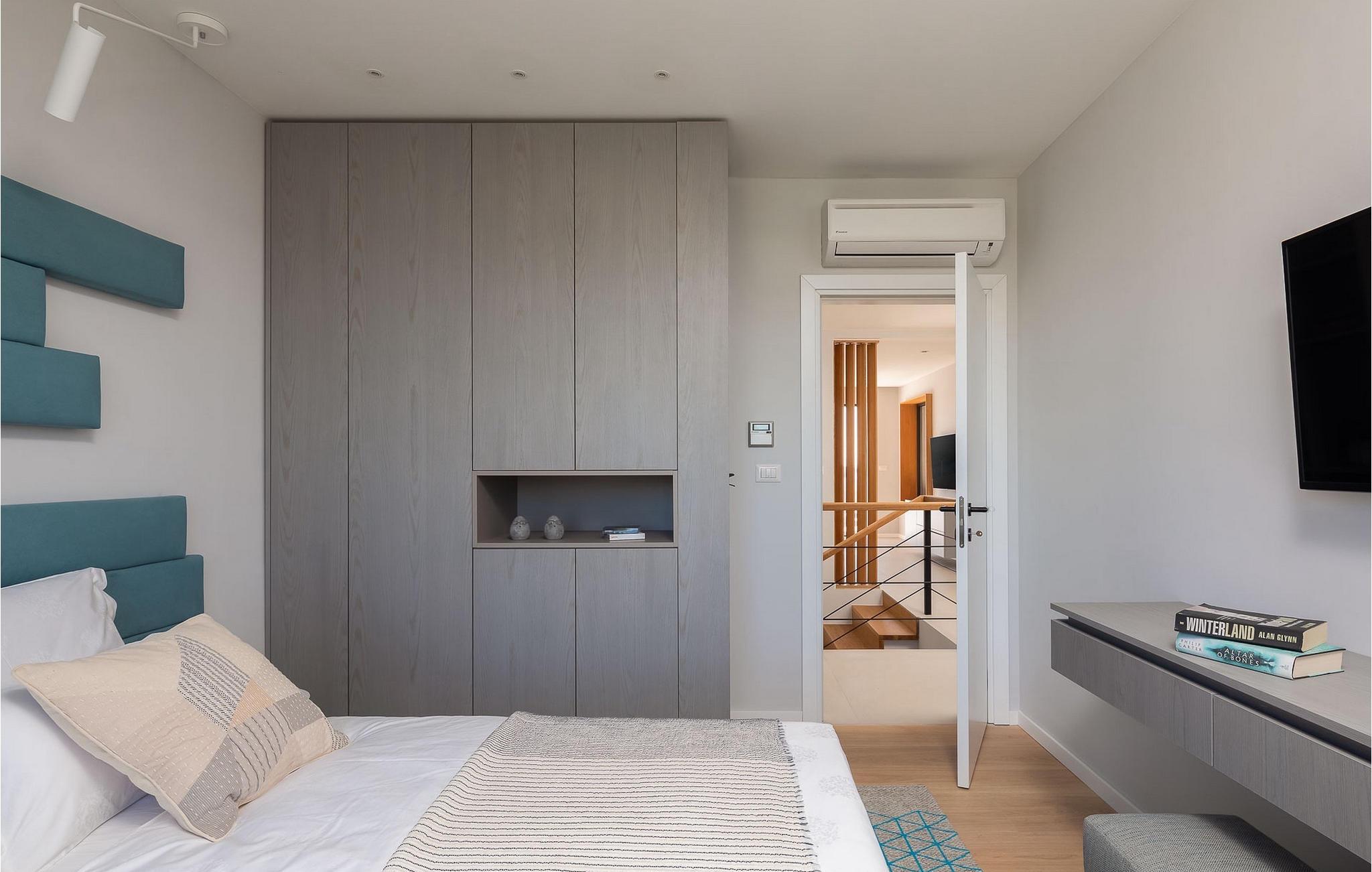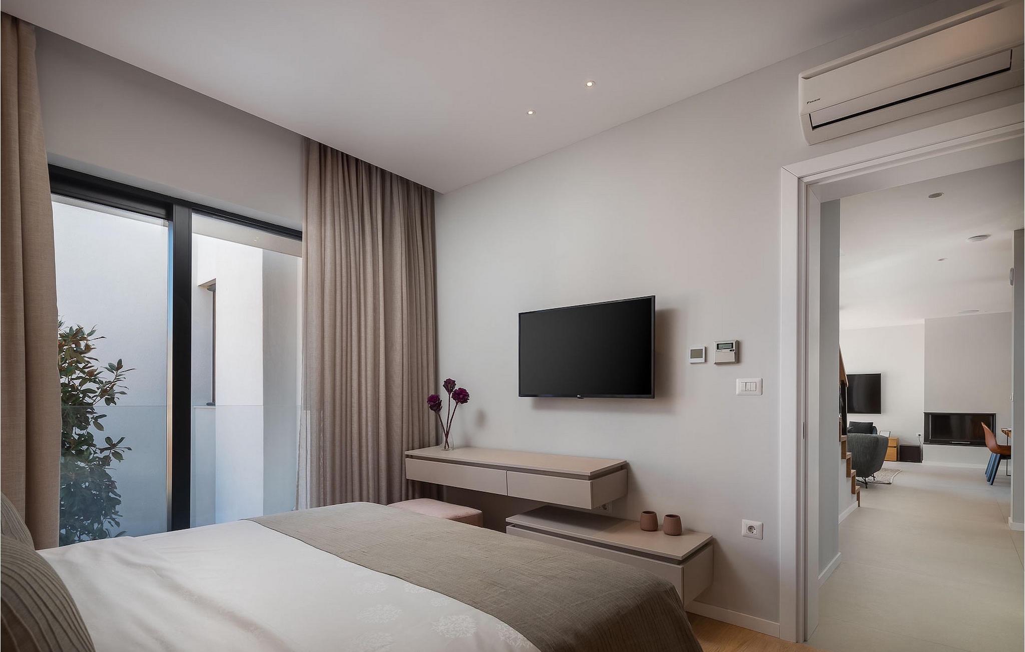 Holzdetails und Farbakzente begleiten die Dekoration dieser Villa, insbesondere den offenen Grundriss des Erdgeschosses mit Wohnzimmer, Küche und Esszimmer. Vom Wohnzimmer aus gibt es auch einen direkten Ausgang zur Außenterrasse. Familien mit Kindern werden sich auch über die Option eines Schlafzimmers im Erdgeschoss freuen, die noch mehr Komfor bietet. Es ist wichtig zu beachten, dass in dieser Villa sogar drei Schlafzimmer über ein eigenes Bad verfügen, für maximalen Komfort während Ihres Aufenthalts, wobei ein separates Badezimmer und 2 weitere Toiletten ebenfalls vorhanden sind.