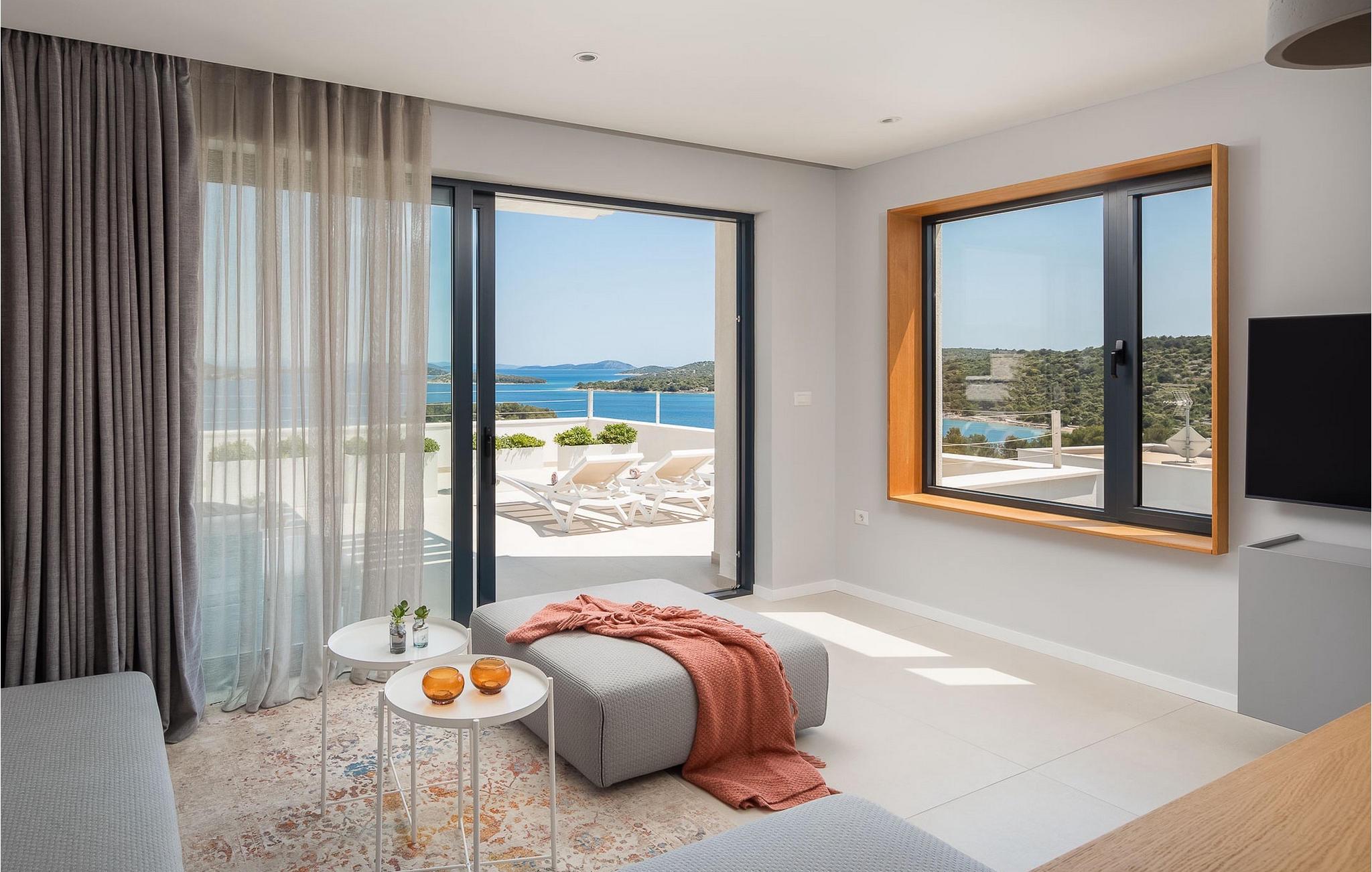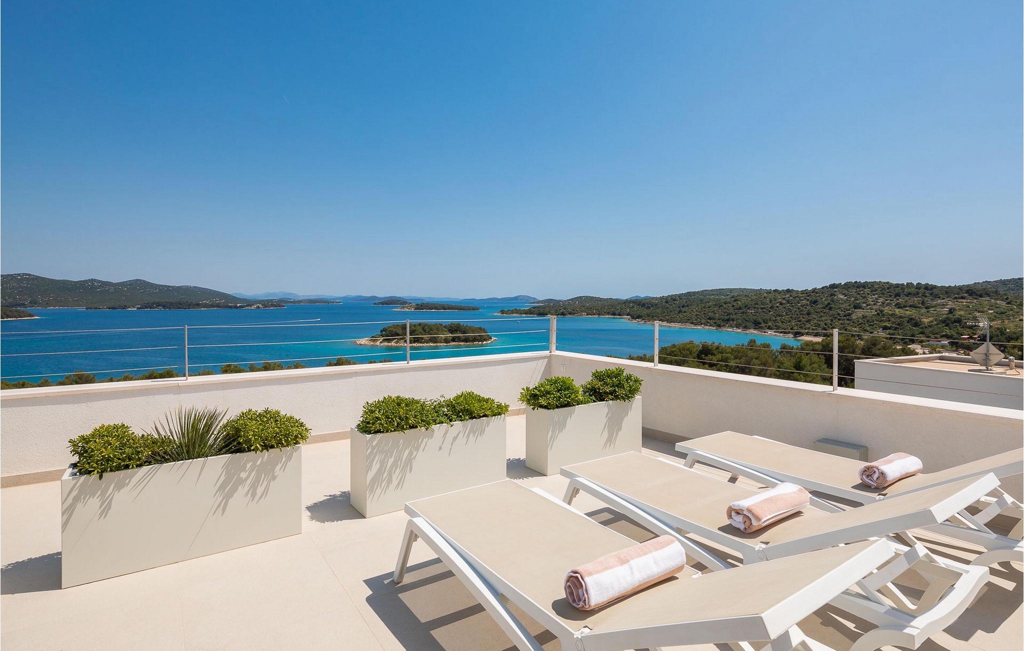 Beide Villen sind komplett eingezäunt, so dass die Privatsphäre der Gäste gesichert ist. Für den Fall, dass Sie mit Ihrer Familie oder mit Freunden als große Gruppe kommen, besteht die Möglichkeit, Villa Sara und Konstanca zusammen zu buchen.Die luxuriöse Villa Sara Murter befindet sich in Jezera auf der wunderschönen Insel Murter, die zum Archipel von Sibenik gehört. Die Villa liegt in der Nähe einer Promenade, die entlang der Küste von Jezera nach Tisno führt. Die 2 Kilometer lange Promenade ist ideal für morgendliche Joggingrunden oder abendliche Spaziergänge zu zweit. Entlang der Promenade gibt es zahlreiche Kies- und Felsenstrände, die von Kiefernwäldern umgeben sind. In der Nähe gibt es öffentliche Tennis-, Basketball- und Fußballplätze für alle, die einen aktiven Urlaub verbringen möchten. Es stehen auch Fahrräder zur Verfügung, mit denen Sie die Umgebung erkunden können. Wir empfehlen Ihnen, im nahe gelegenen Yachthafen ein Boot zu mieten und sich auf ein unvergessliches Familienabenteuer zu begeben, um die anderen Inseln des Archipels von Sibenik sowie die zahlreichen versteckten Buchten und Strände zu erkunden. Besuchen Sie den Nationalpark Kornati, der aus einer Gruppe von Inseln besteht, die von unberührter Natur und kristallklarem Meer umgeben sind, sowie den Nationalpark Krka, in dem es zahlreiche Wasserfälle gibt. Ein Ausflug nach Sibenik, bekannt für seine Kathedrale und zahlreiche Festungen, die einen einzigartigen Blick auf die Stadt bieten, ist zweifellos unvergesslich.