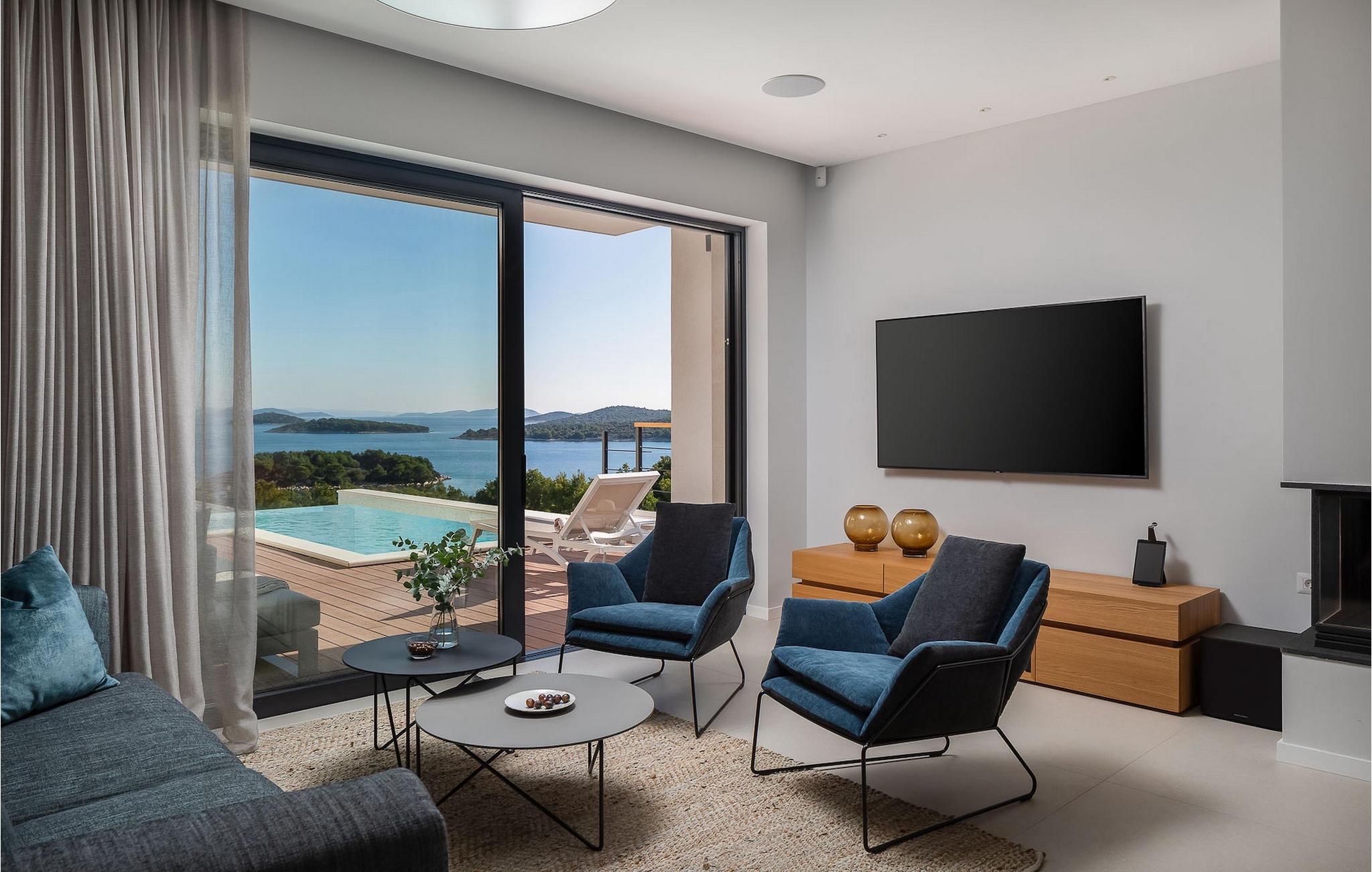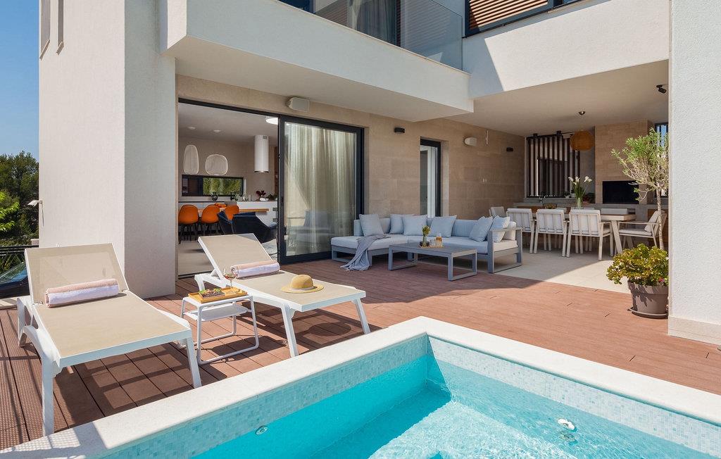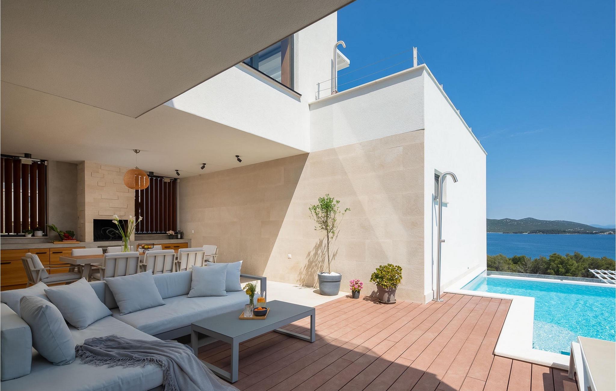 Villa Sara Murter ist eine luxuriöse und moderne Villa für 8 Personen, die den Charme einer Privatunterkunft mit den Annehmlichkeiten eines Hotelaufenthalts verbindet.