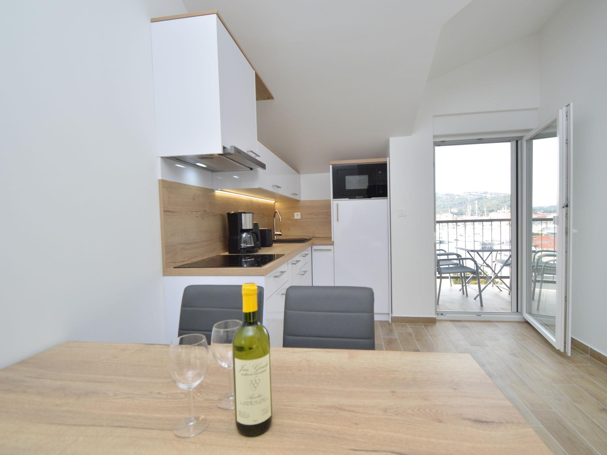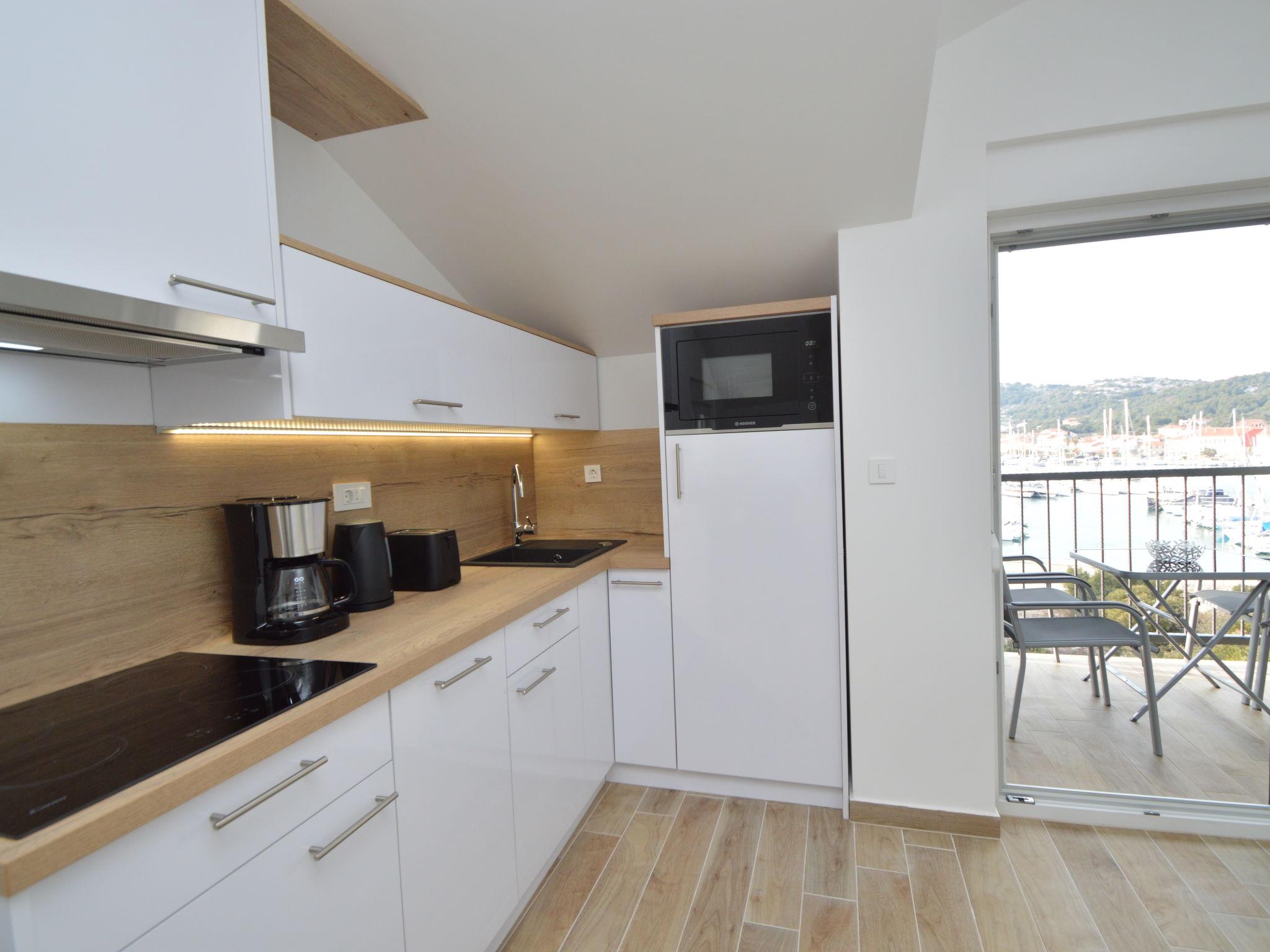 Mehrfamilienhaus "Anna", Baujahr 2021. 250 m vom Zentrum von Jezera, 2.5 km vom Zentrum von Tisno, ruhige, sonnige Lage, 80 m vom Meer, 280 m vom Strand. Im Hause: Internetzugang. Parkplatz beim Haus. Einkaufsgeschäft 800 m, Restaurant 300 m, Bushaltestelle 9.4 km, Kieselstrand 280 m, Tauchzentrum 400 m. Jacht-Hafen 80 m, Reitstall 2 km.