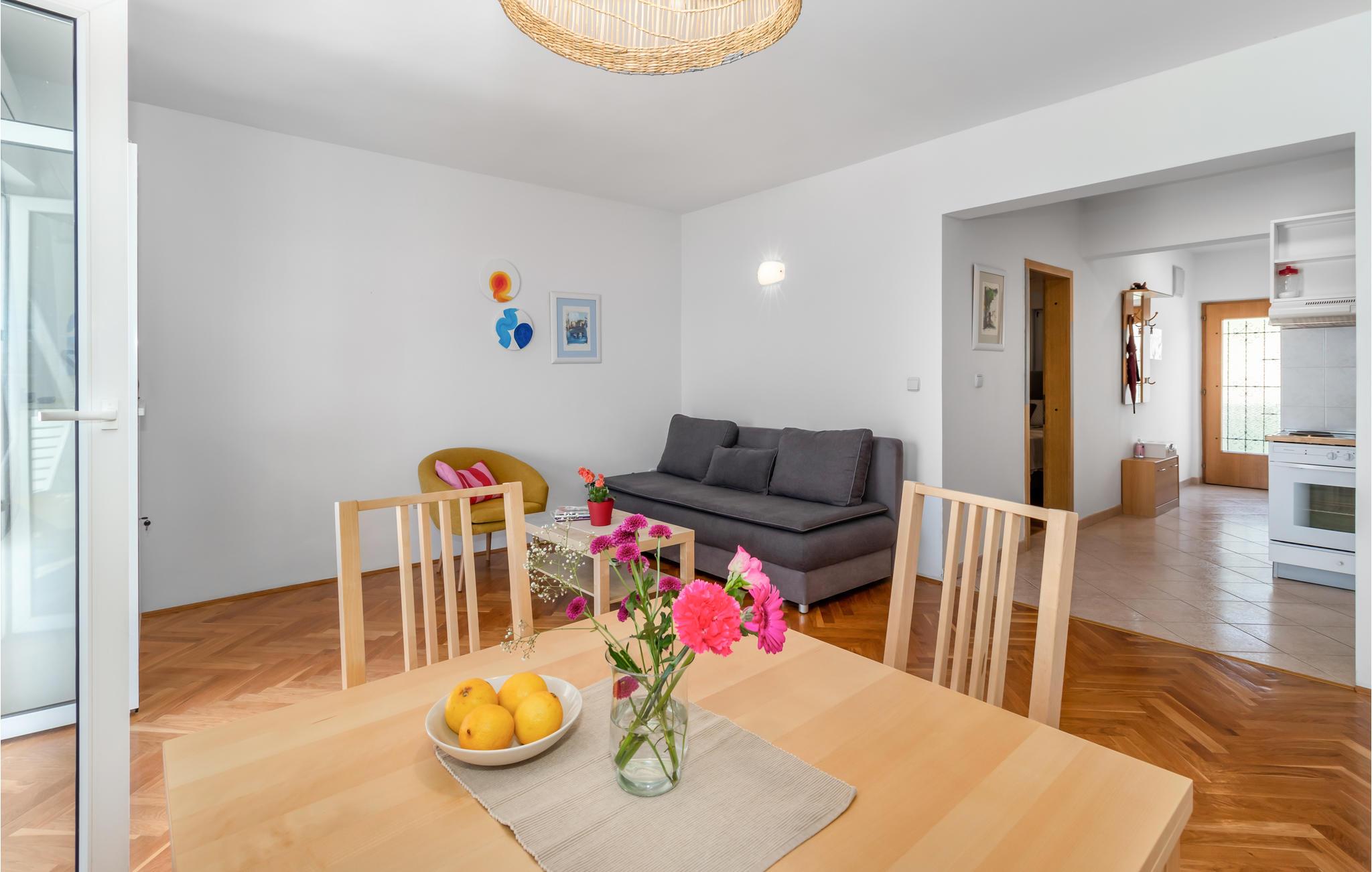 Entspannen Sie sich auf der Terrasse mit herrlichem Ausblick aufs Meer in dieser geschmackvoll eingerichteten Ferienwohnung im ersten Stock in Novi Vinodolski. Sie ist komplett ausgestattet und bietet Ihnen den nötigen Komfort für einen angenehmen Aufenthalt. Mit dem Auto erreichen Sie schnell die Strände. Unterhaltungsangebote finden Sie im Ortszentrum, sowie im nahe liegenden Crikvenica und der Insel Krk. Genießen Sie die gute traditionelle Küche in einem der Restaurants. Verbringen Sie einen interessanten und aktiven Urlaub.