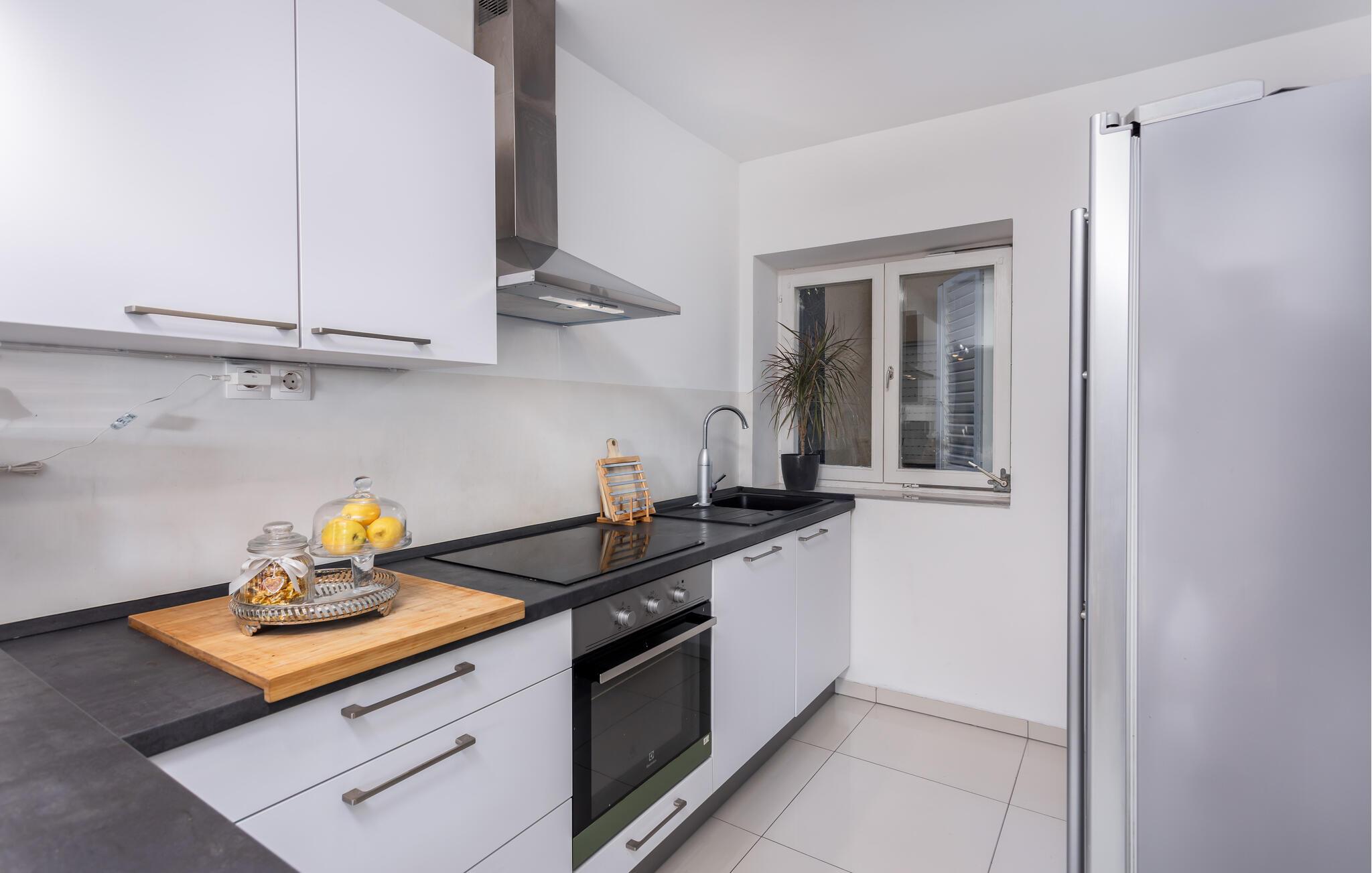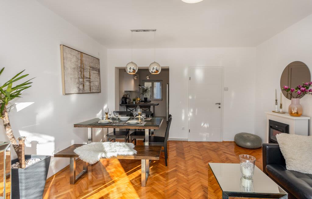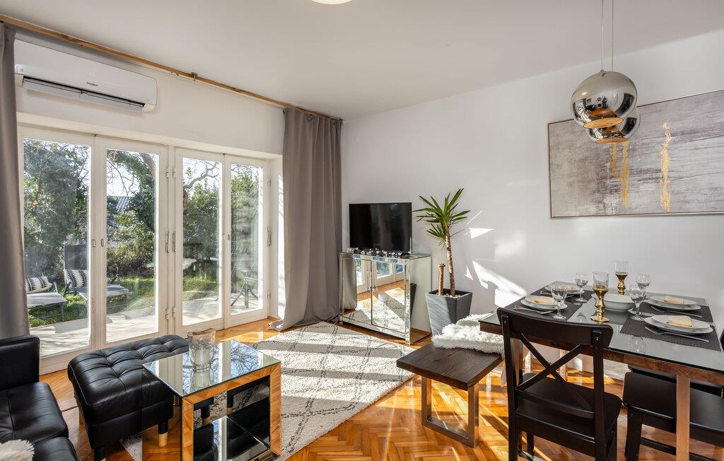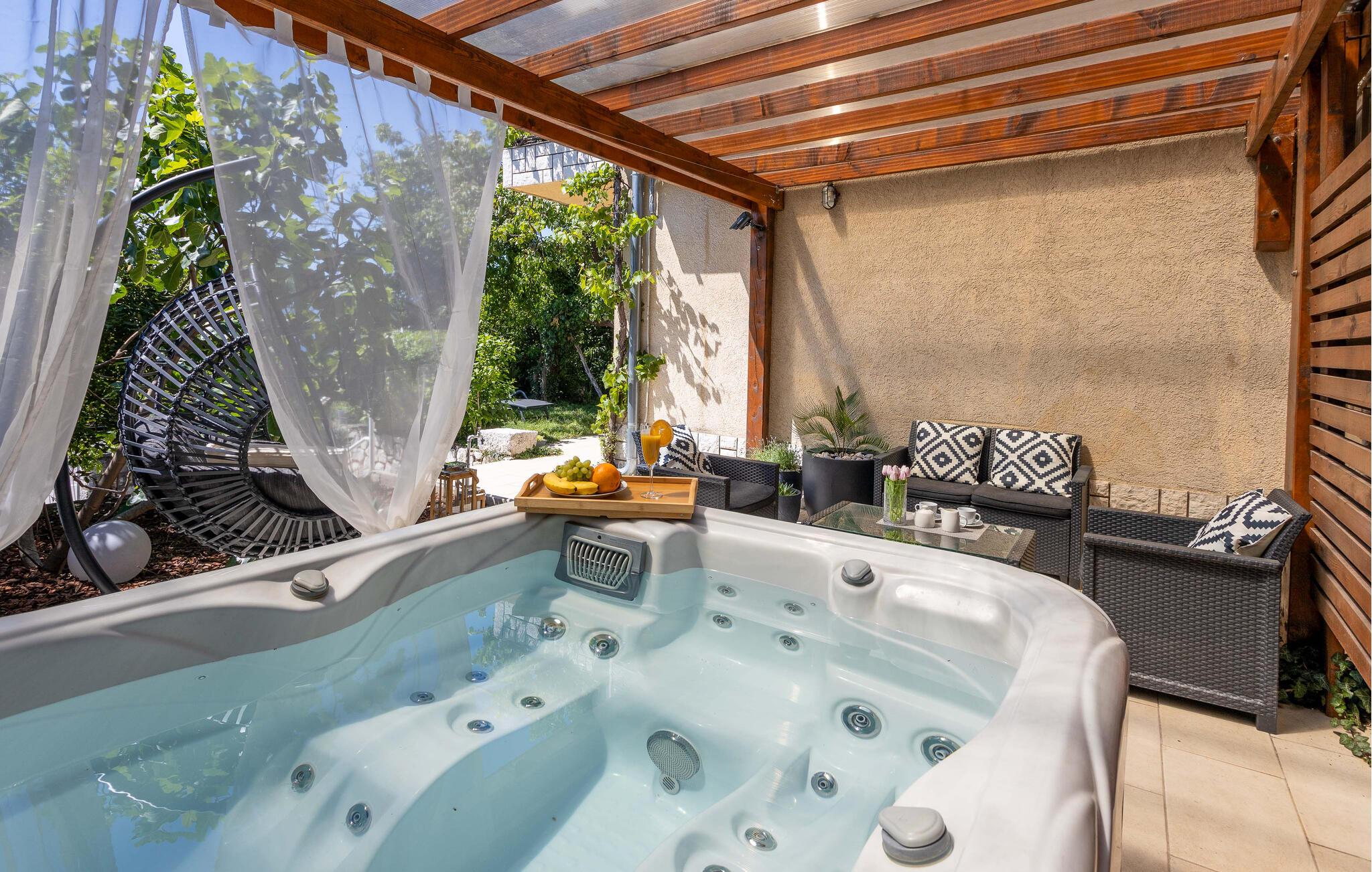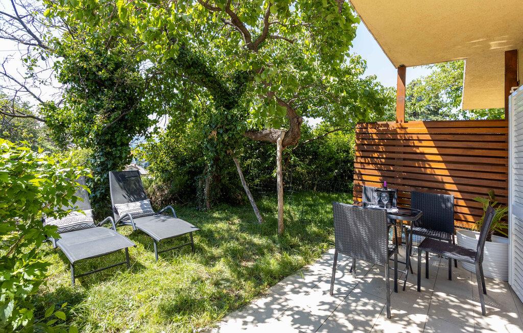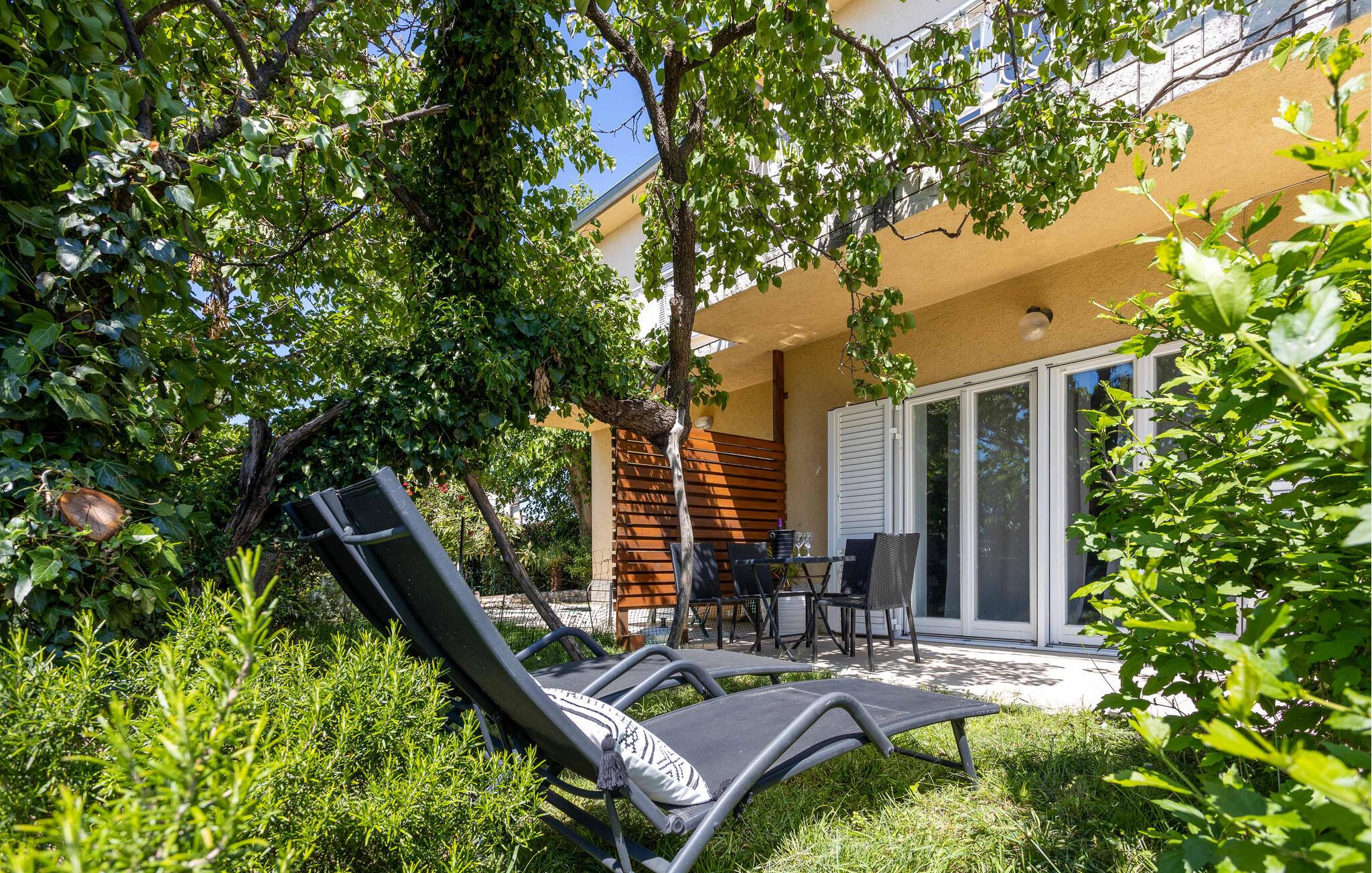 In der Nähe des Stadtzentrums von Novi Vinodolski befindet sich diese geschmackvoll eingerichtete Doppelhaushälfte, die aus zwei Etagen besteht. Im Erdgeschoss sind die Küche mit Wohnzimmer und eine zusätzliche Toilette, während im Obergeschoss die Schlafzimmer und ein Badezimmer liegen. Im Erdgeschoss vor dem Wohnbereich ist eine kleine Terrasse und seitlich davon können Sie auf der größeren Terrasse im Whirlpool entspannen. In wenigen Gehminuten erreichen Sie die Strände sowie Cafés, Restaurants und weitere touristische Angebote. Nutzen Sie auch die Gelegenheit und besuchen Sie die Touristenstadt Crikvenica oder die Insel Krk.