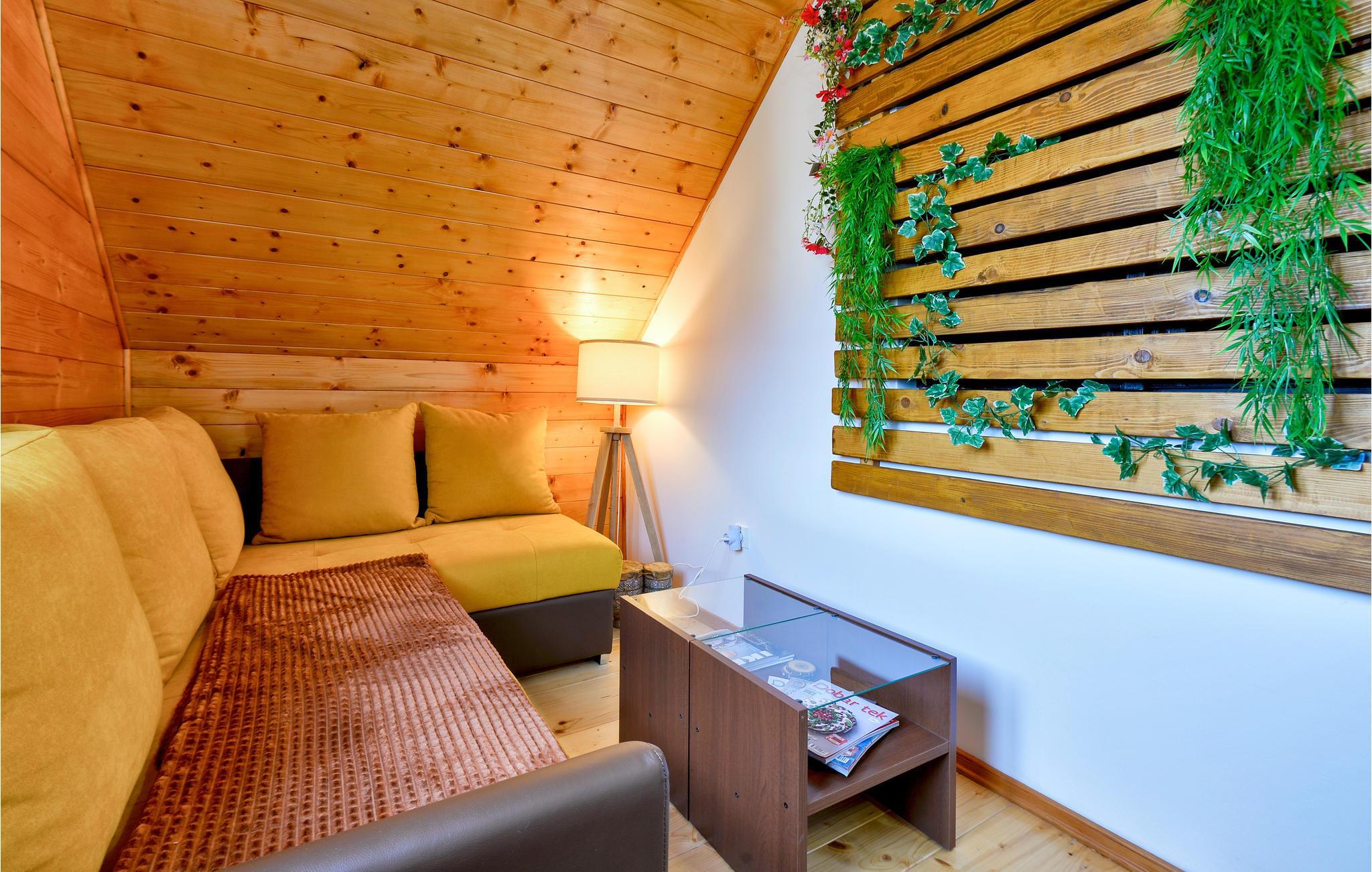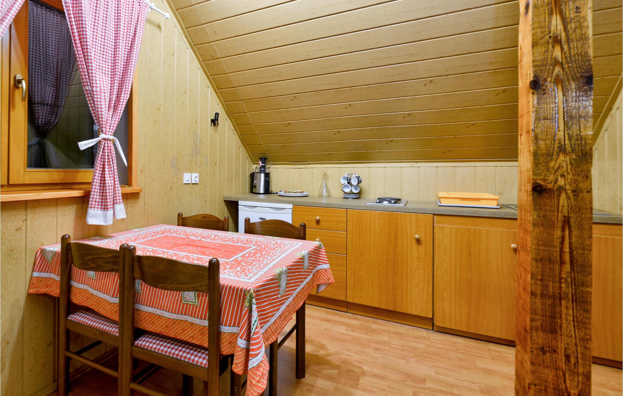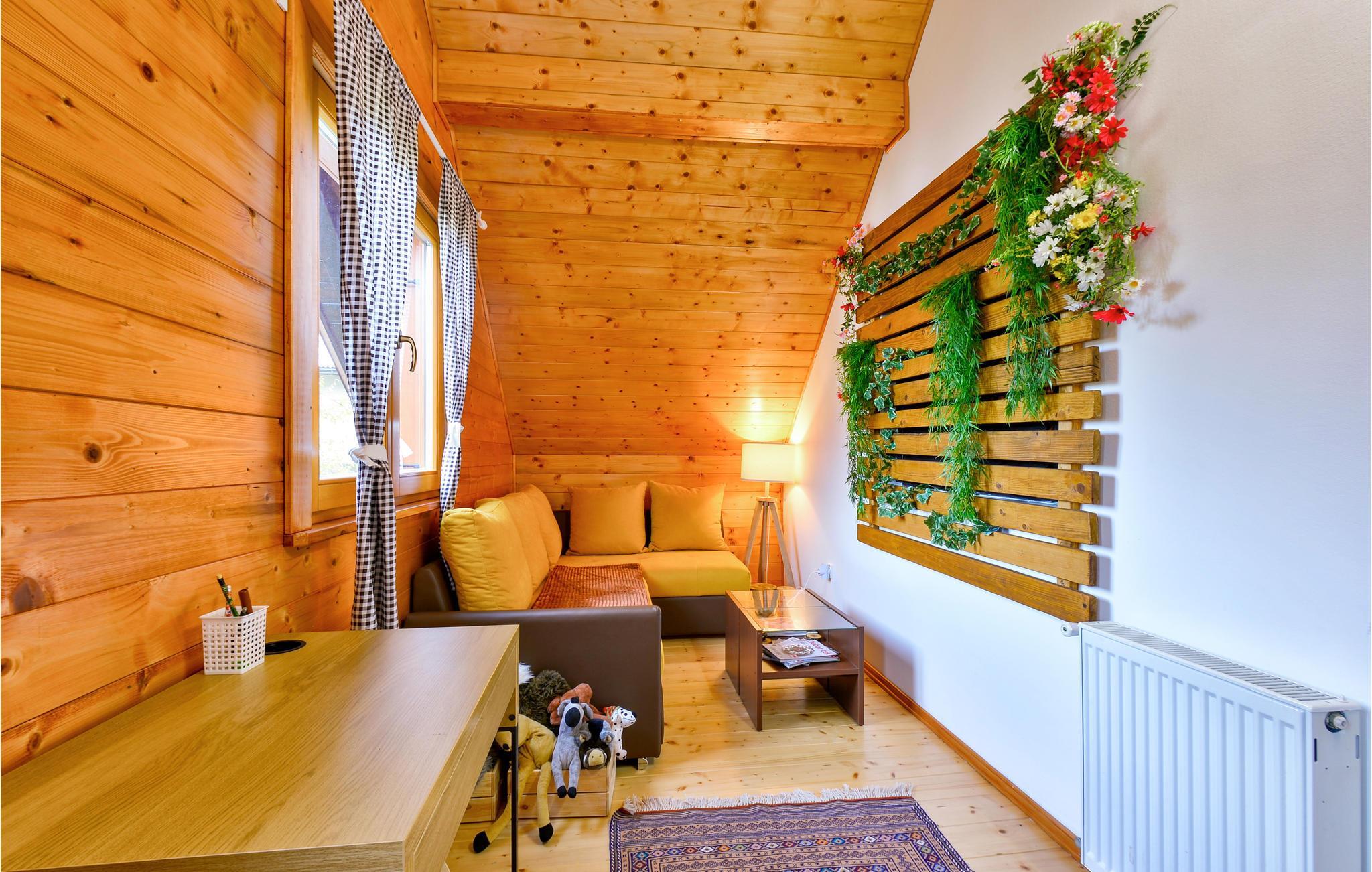 Die schlichte, aber praktische Einrichrung hält alles parat, was Sie brauchen. Viel Holz wurde im Inneren verbaut, was ein wohliges Raumklima erzeugt. Fast schon kommt eine richtige Hüttenatmosphäre auf. Für die Entspannung nach einem aktiven Urlaubstag steht eine Sauna bereit.