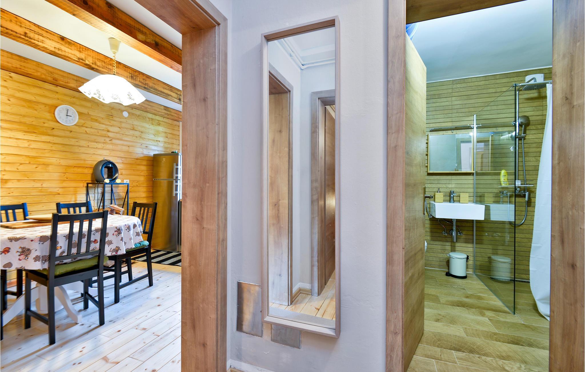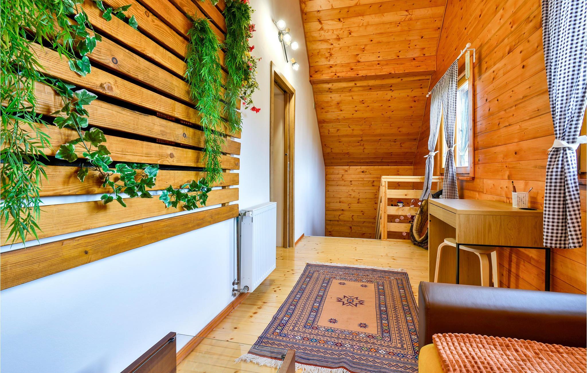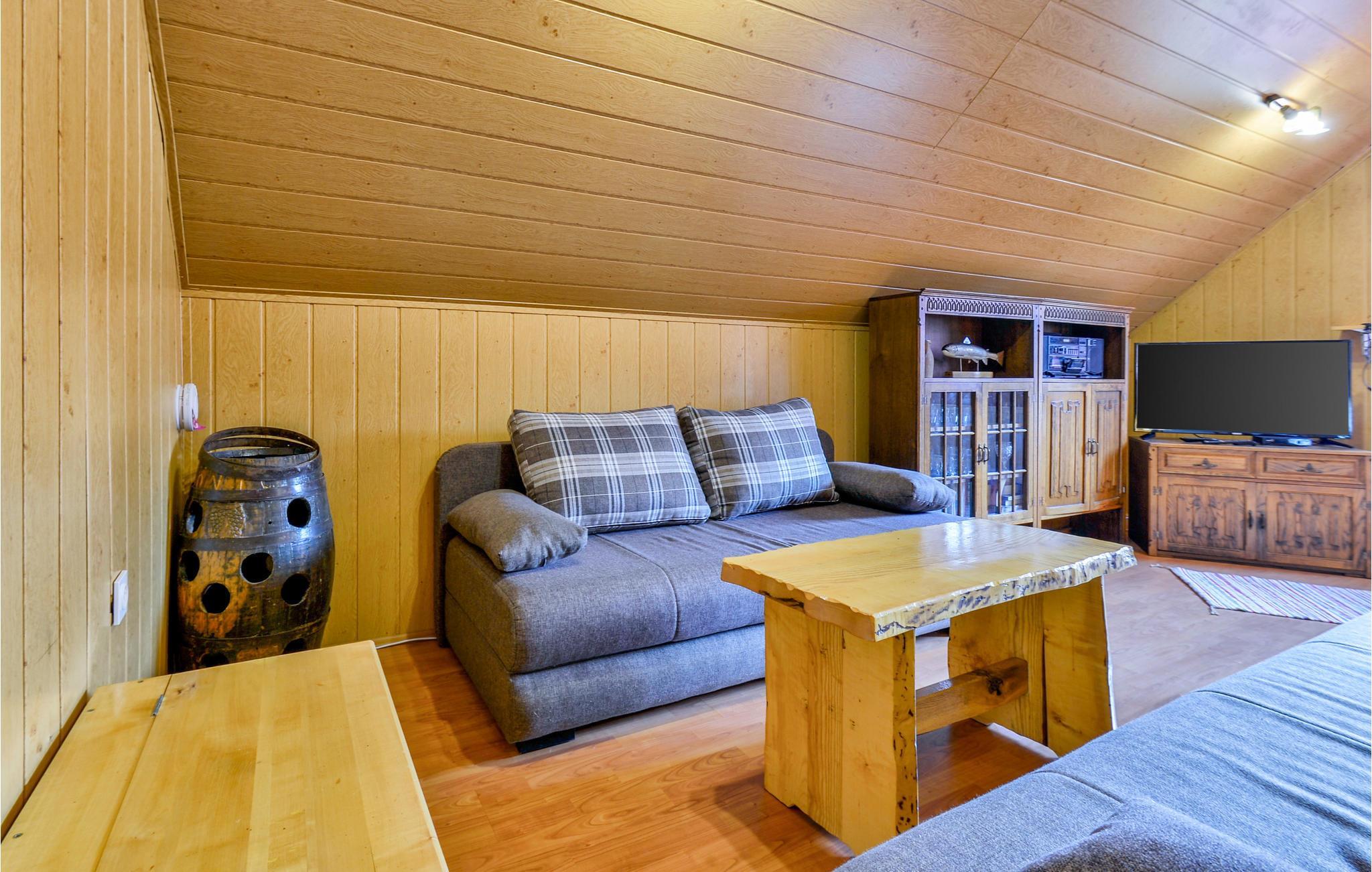Die schlichte, aber praktische Einrichrung hält alles parat, was Sie brauchen. Viel Holz wurde im Inneren verbaut, was ein wohliges Raumklima erzeugt. Fast schon kommt eine richtige Hüttenatmosphäre auf. Für die Entspannung nach einem aktiven Urlaubstag steht eine Sauna bereit.